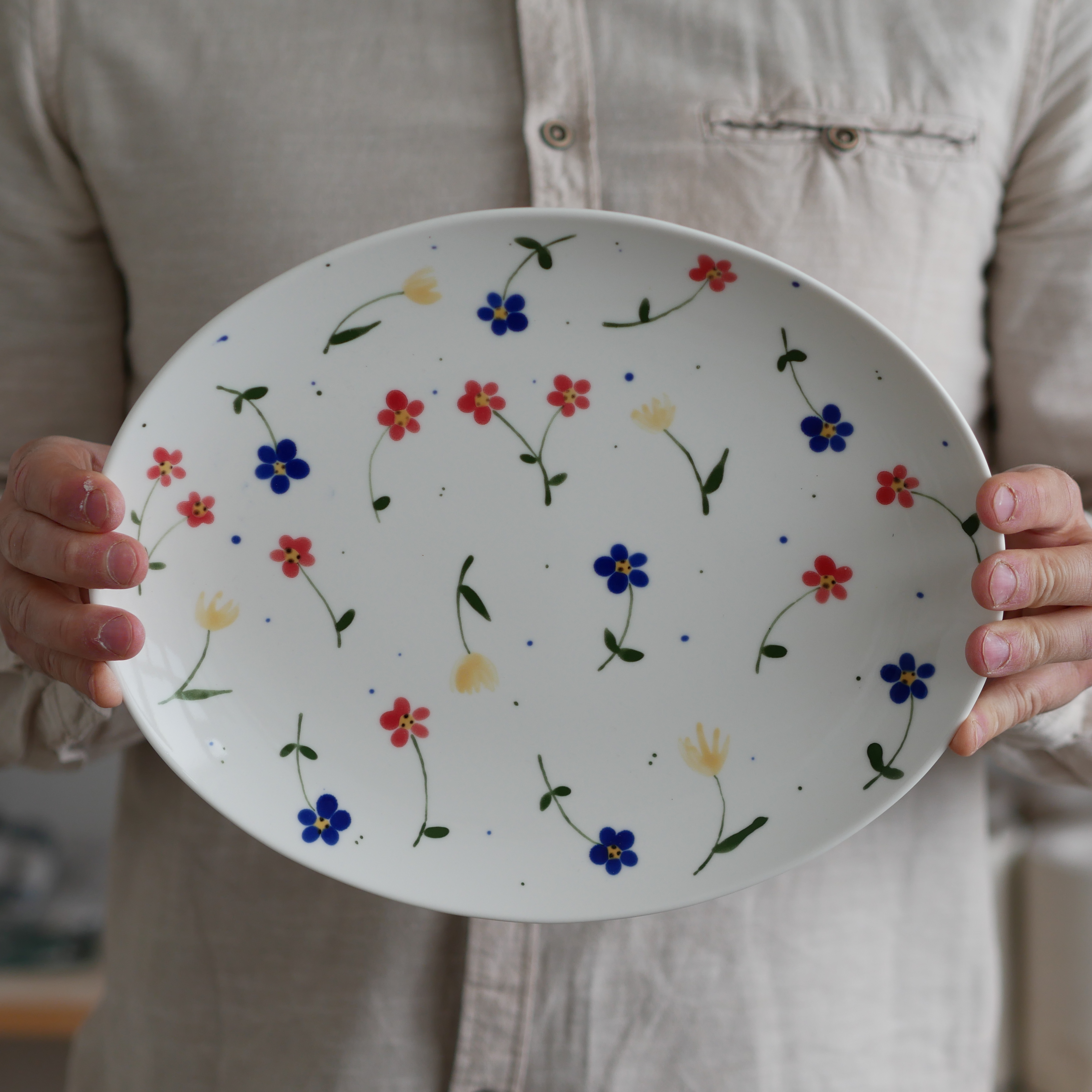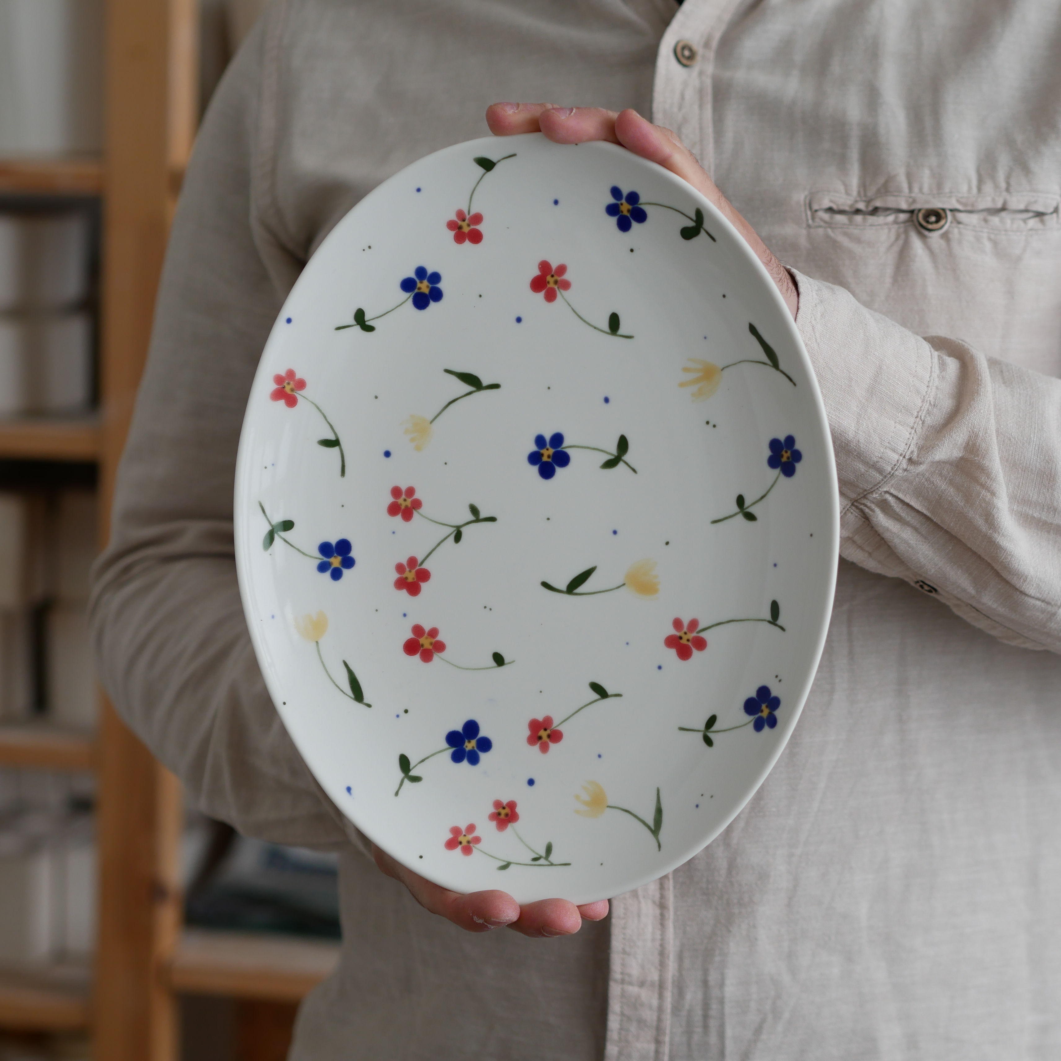 Zdjęcie poglądowe - kwiaty maluję ręcznie, dlatego na każdym talerzu wzór będzie wyglądać nieco inaczej.