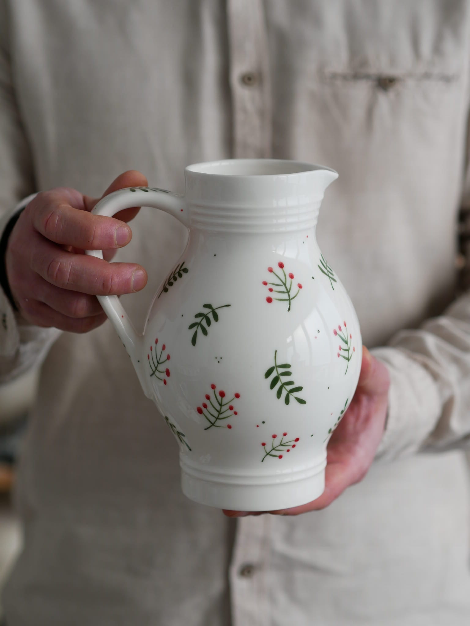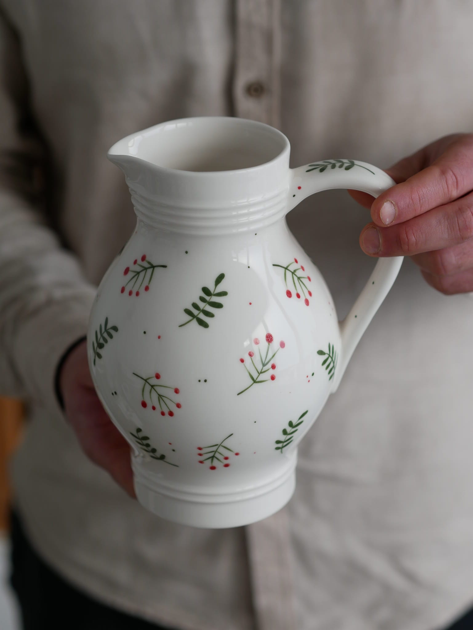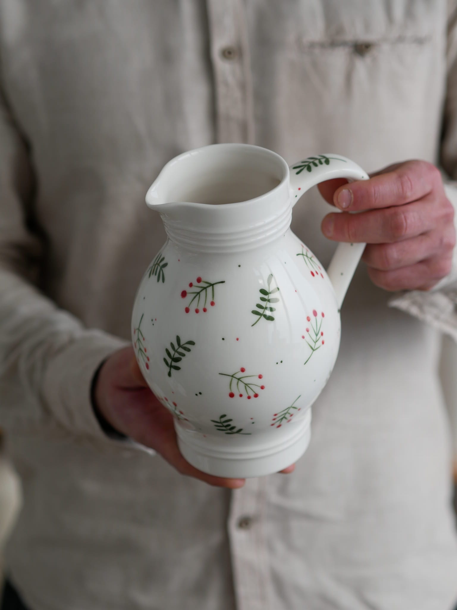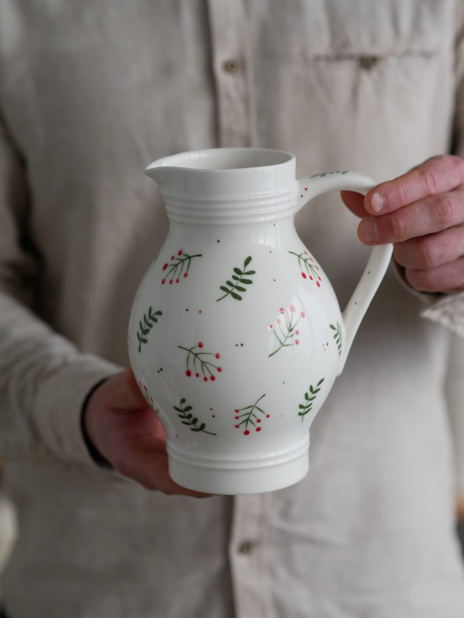 Kwiaty maluję ręcznie, dlatego na każdym dzbanku wzór będzie wyglądać inaczej - zdjęcie poglądowe.