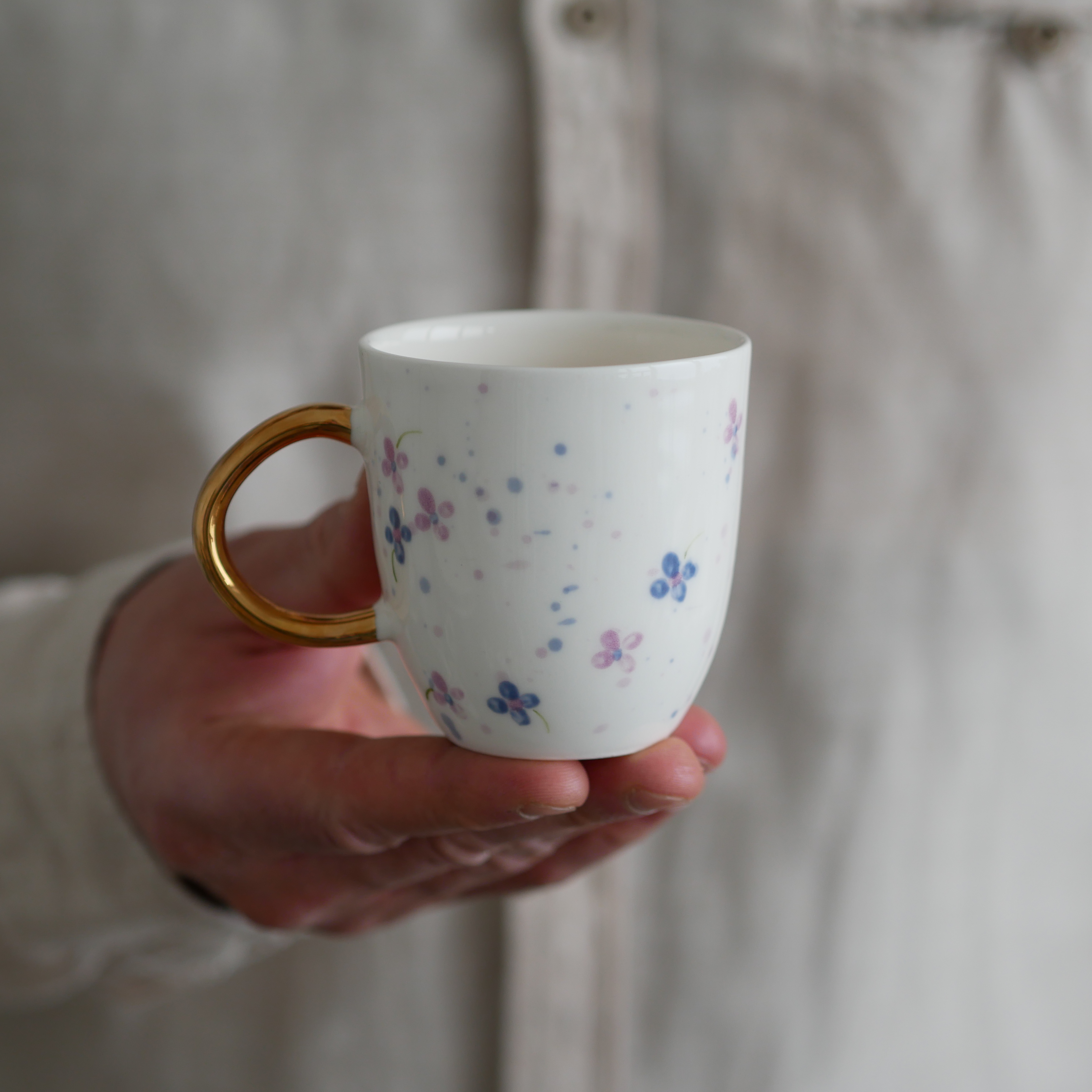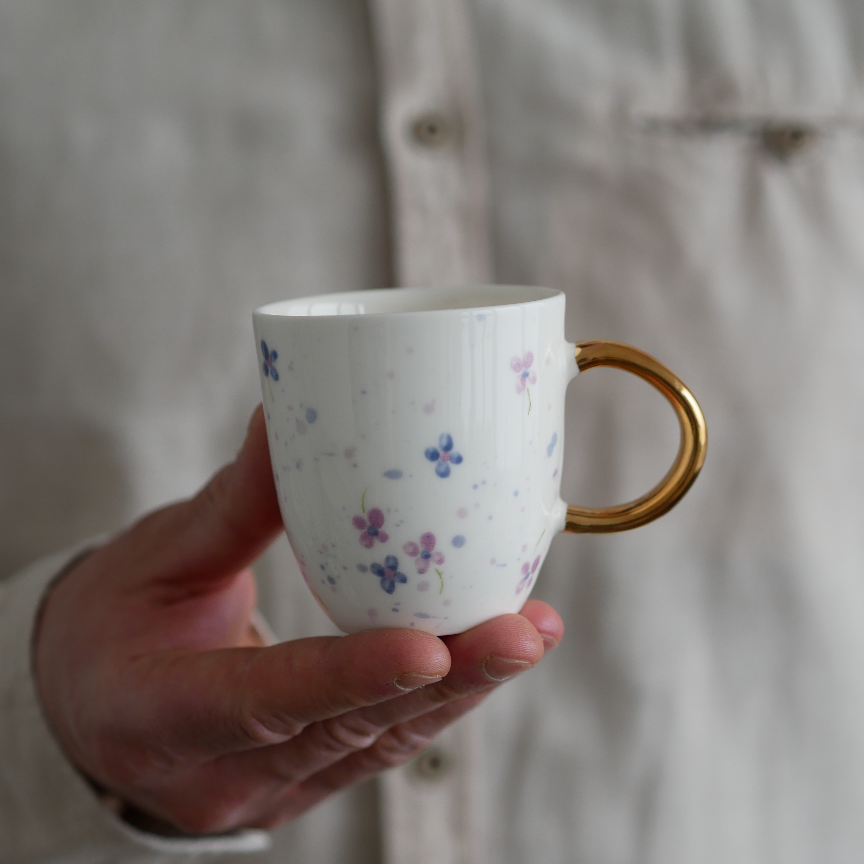 Kwiaty maluję ręcznie, dlatego na każdej filiżance wzór będzie wyglądać inaczej - zdjęcie poglądowe.