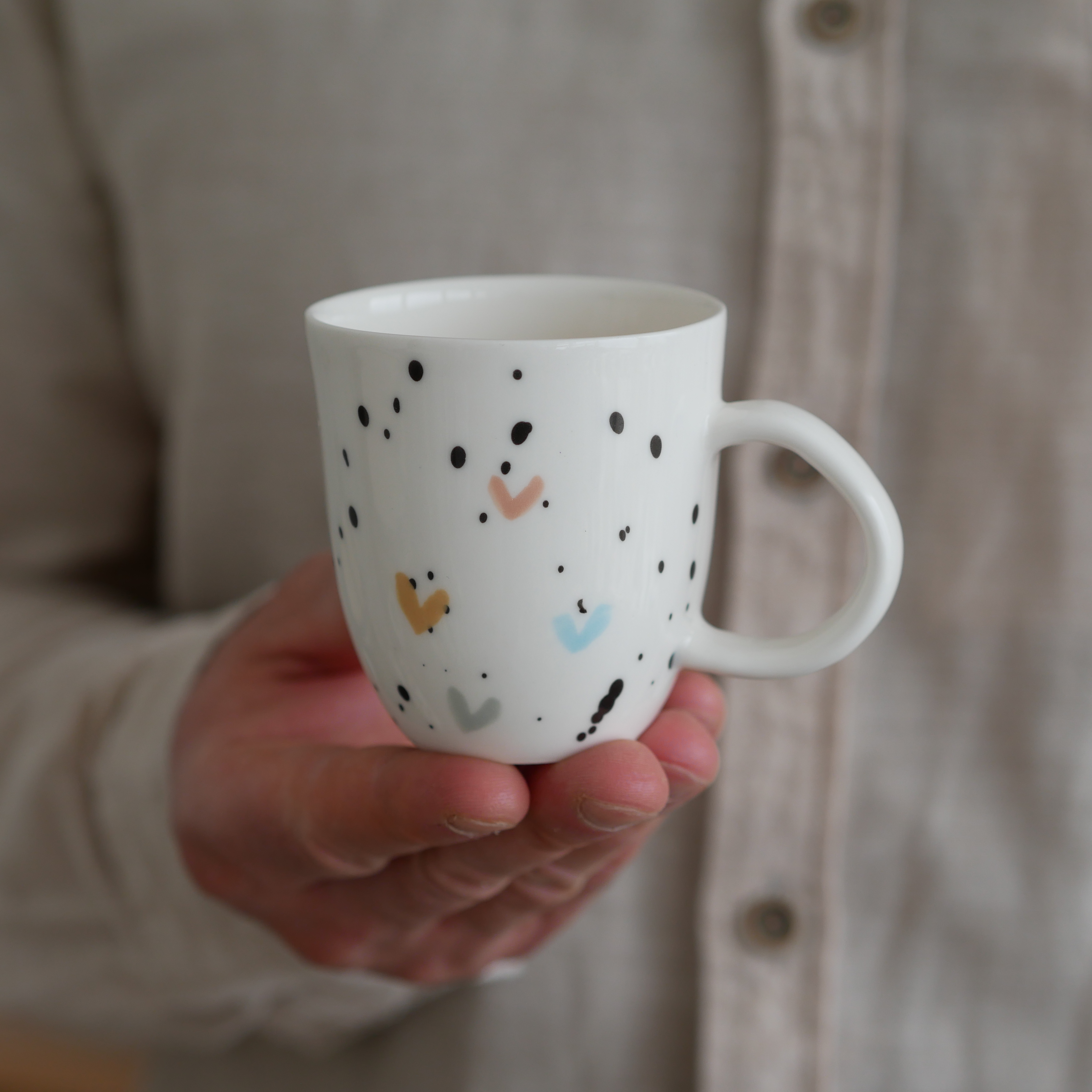 Każda filiżanka ma inne ręcznie malowane serduszko.