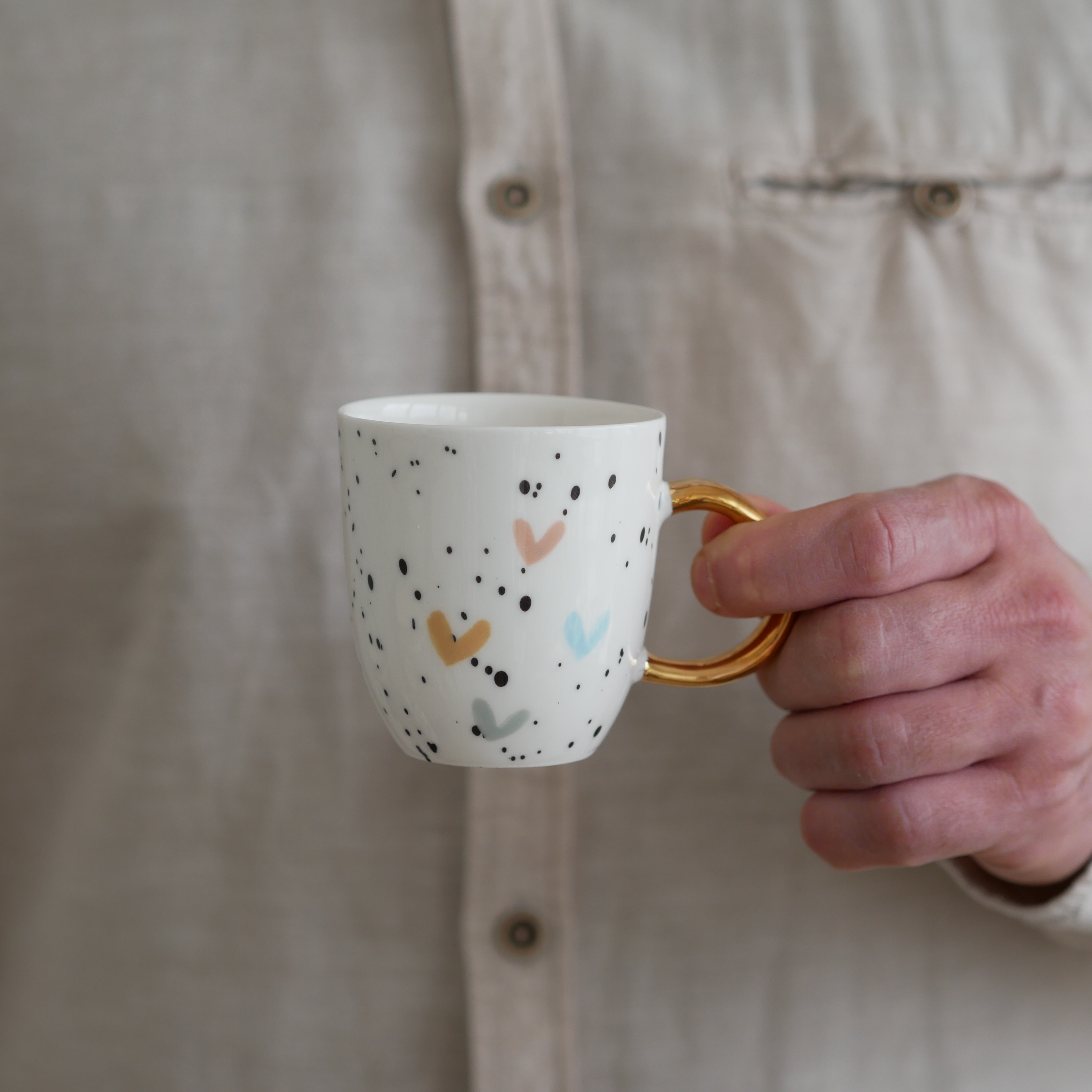 Każda filiżanka ma inne ręcznie malowane serduszko.