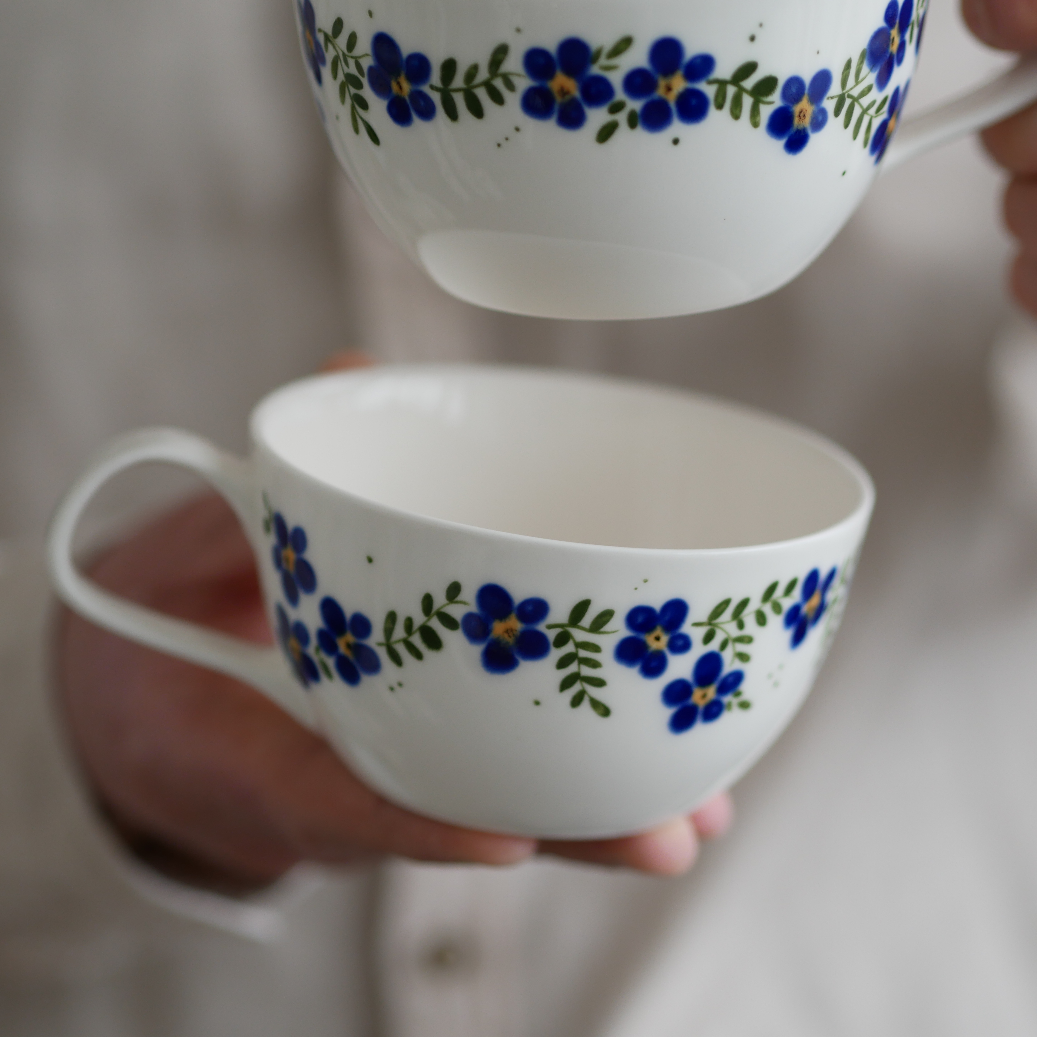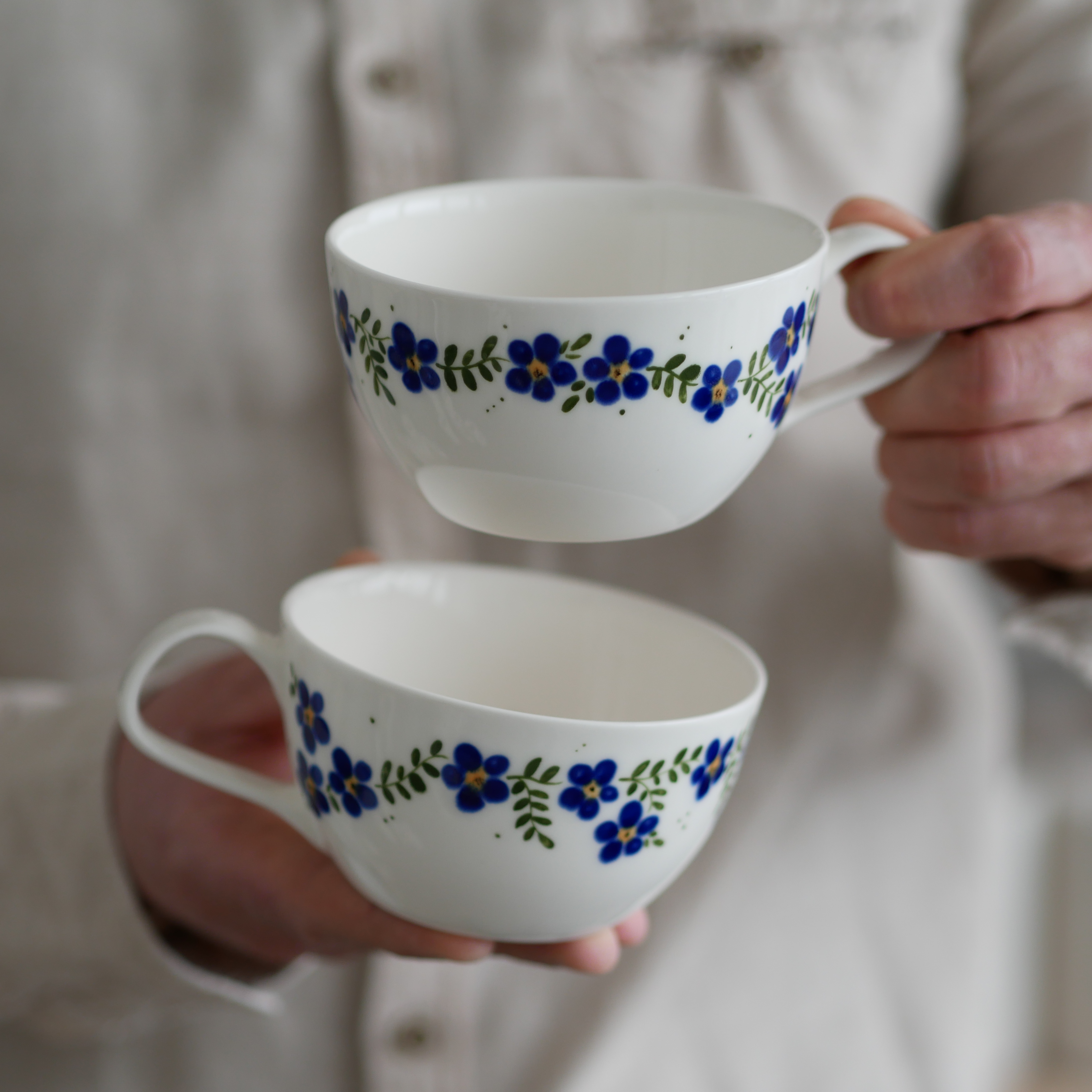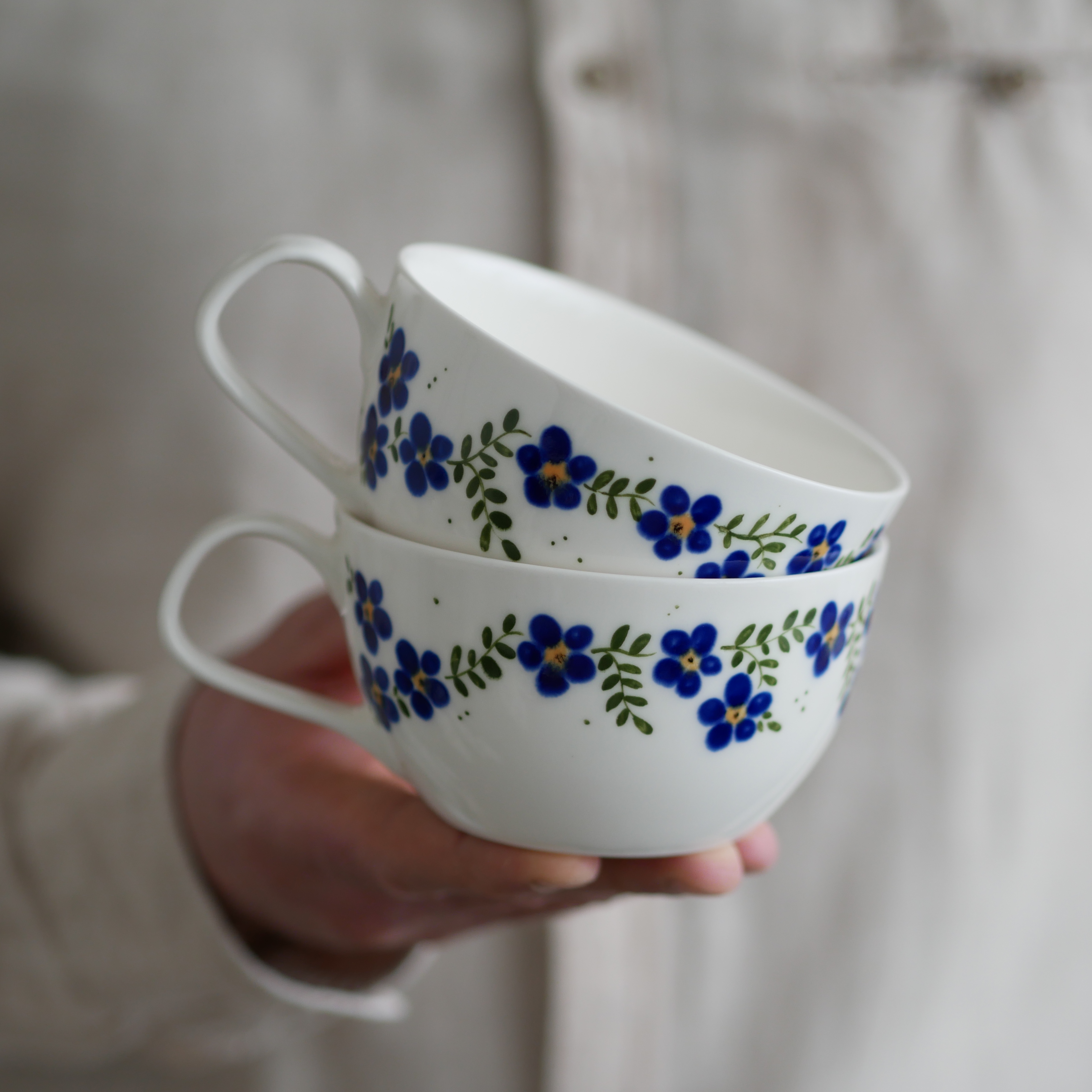 Kwiaty maluję ręcznie, dlatego na każdej filiżance wzór będzie wyglądać inaczej - zdjęcie poglądowe.