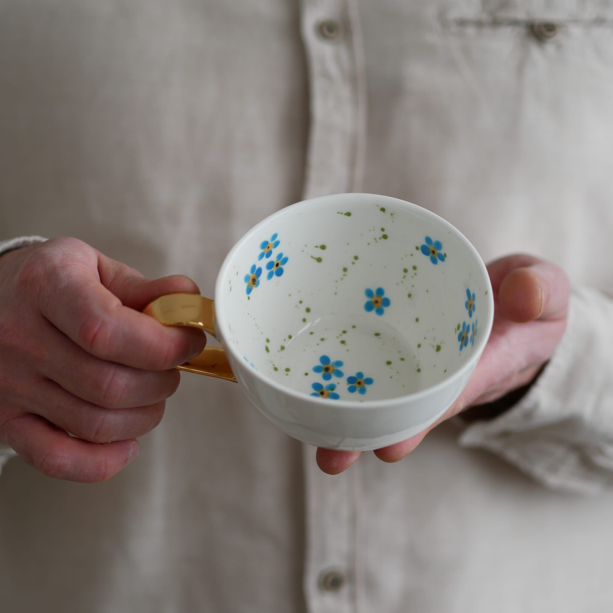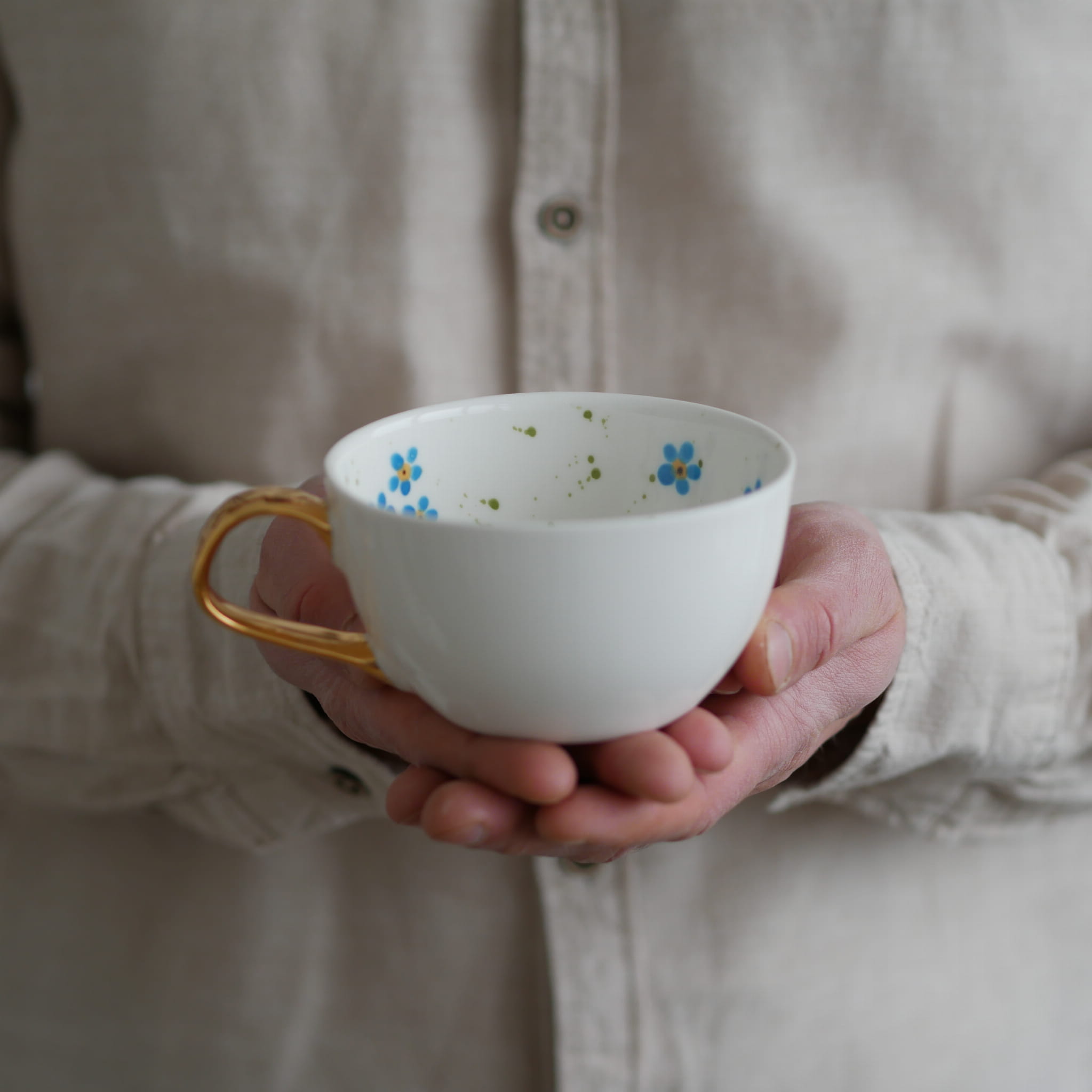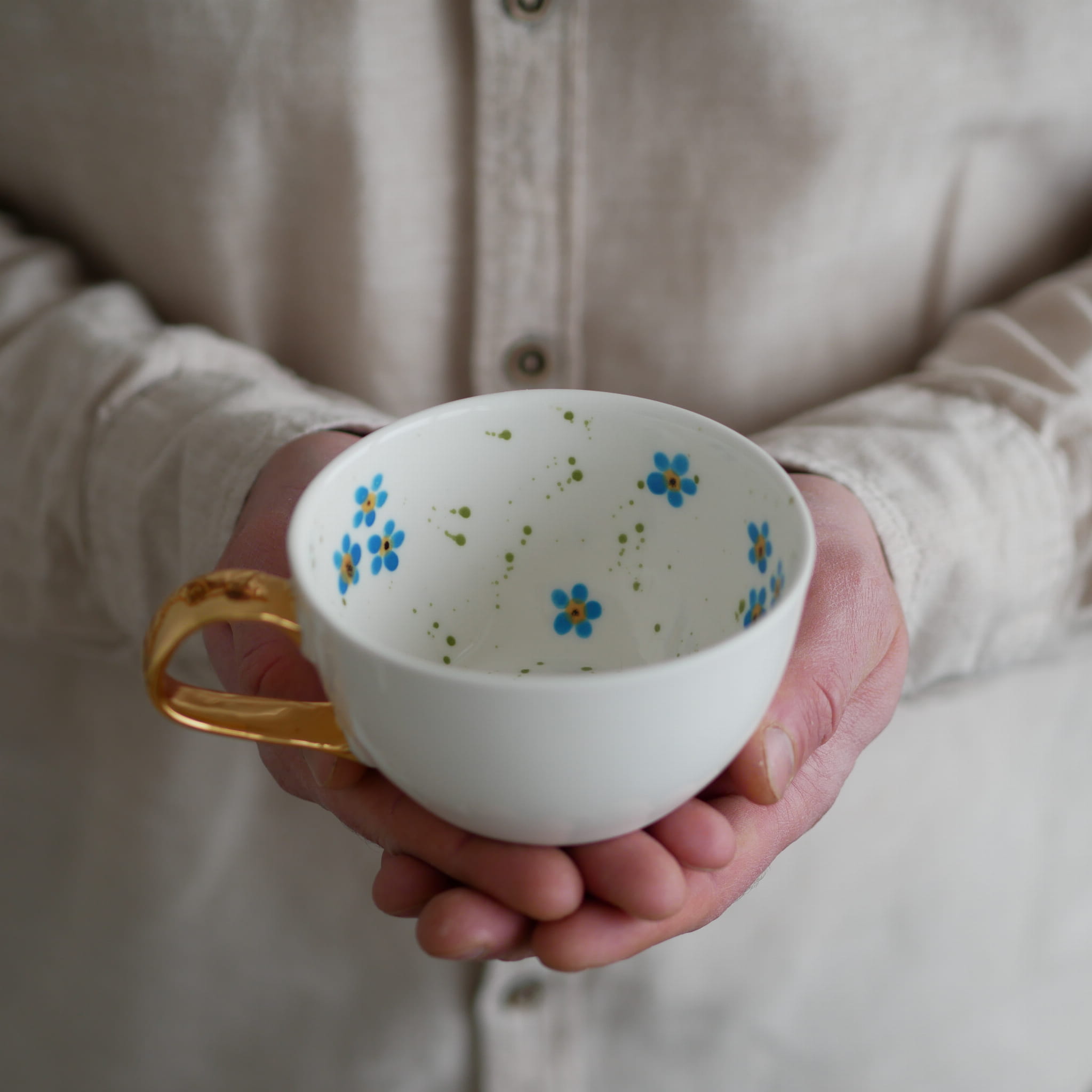 Filiżanka 300ml niezapominajki (wewnątrz) ze złotym uszkiem