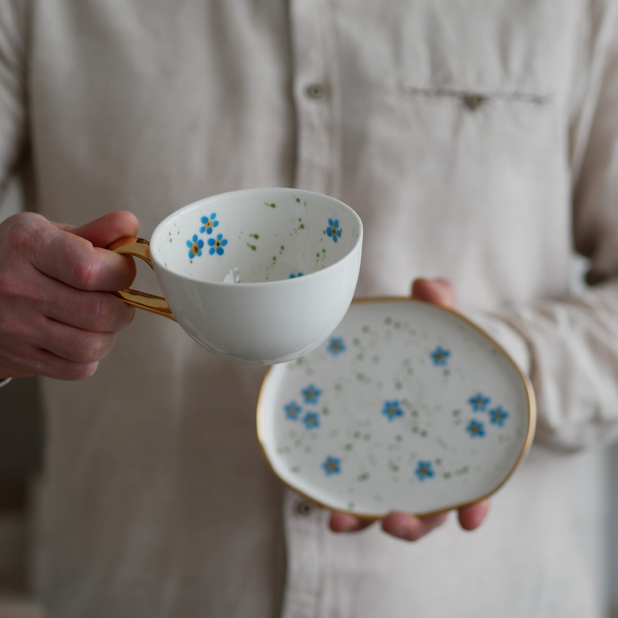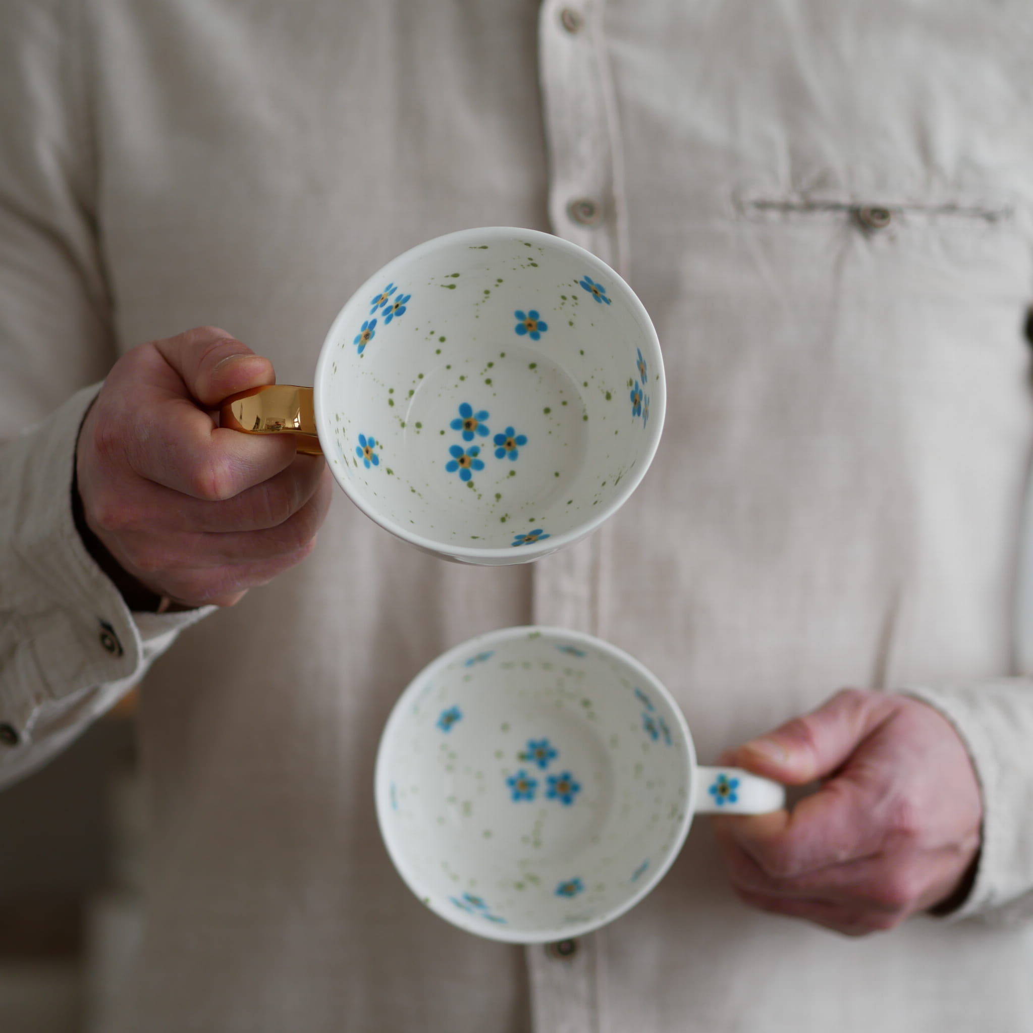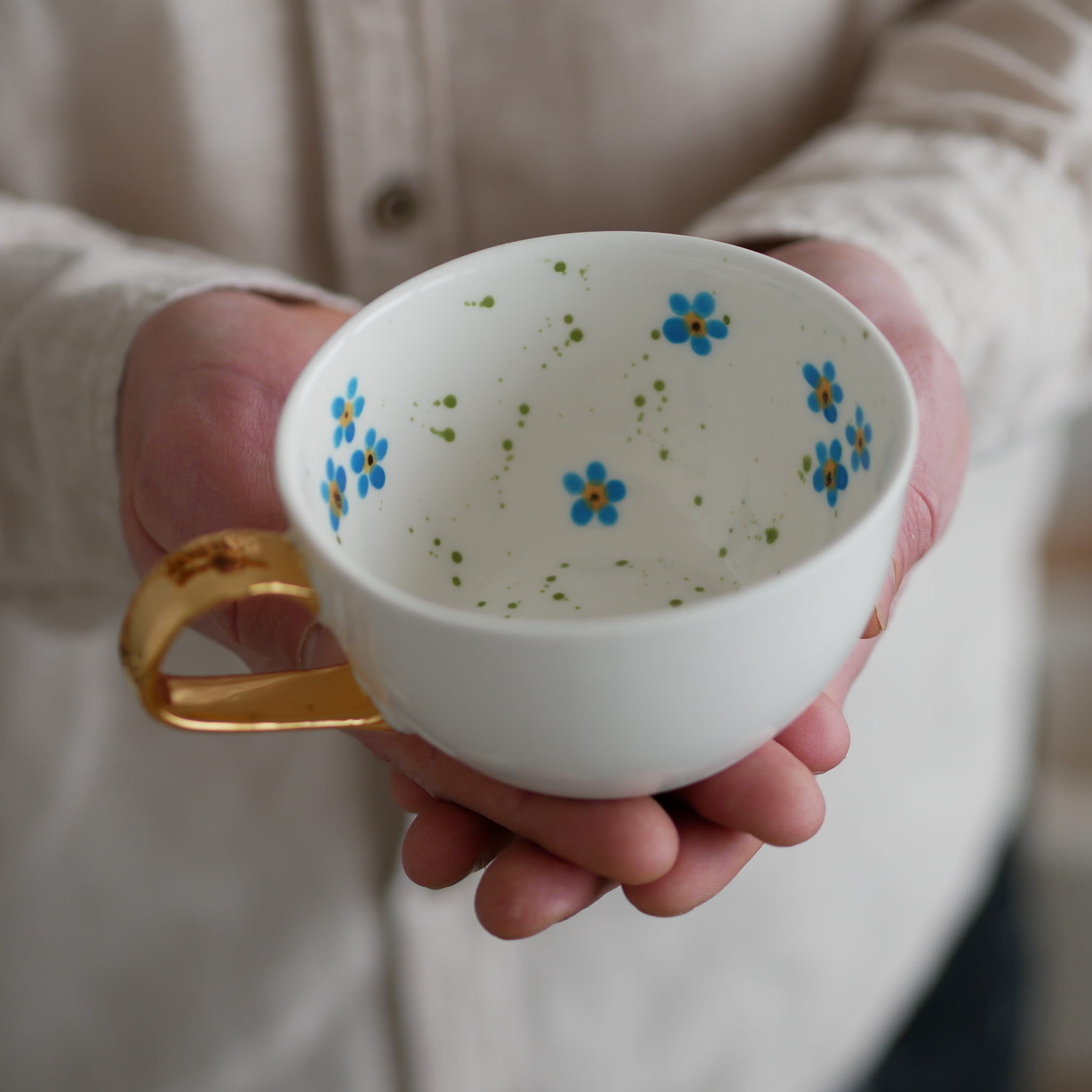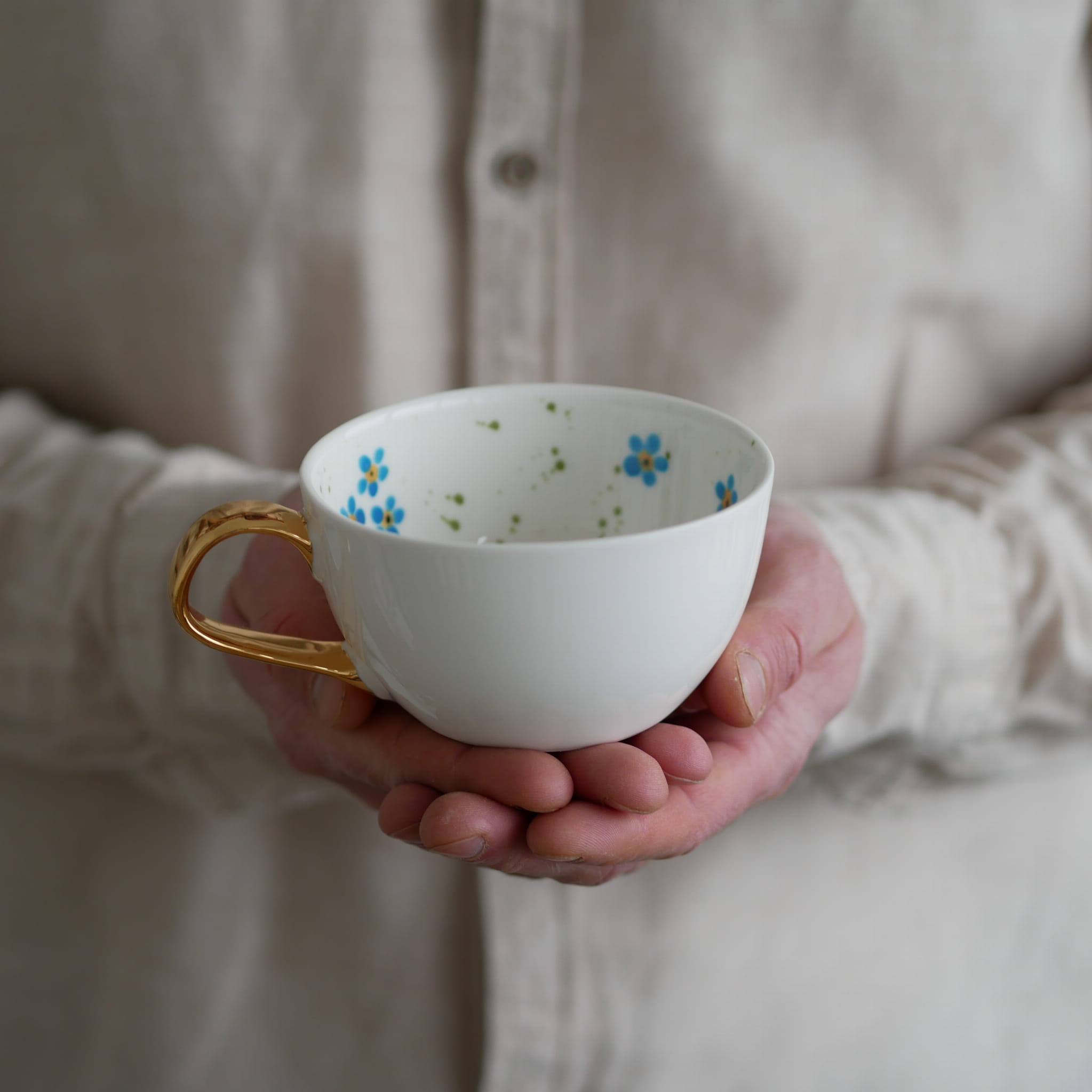 Filiżanka 300ml niezapominajki (wewnątrz) ze złotym uszkiem