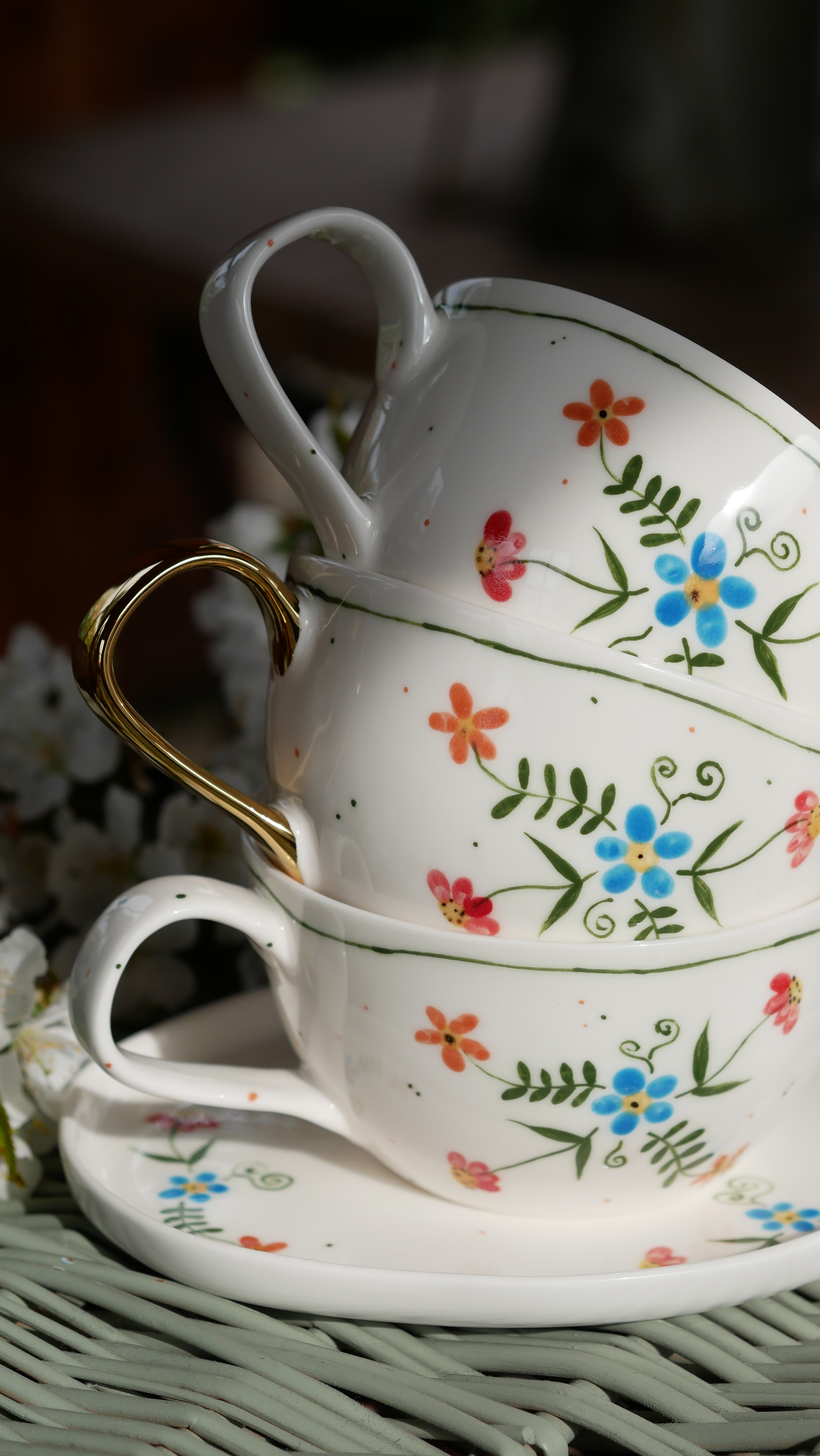 Kwiaty maluję ręcznie, dlatego na każdej filiżance wzór będzie wyglądać inaczej - zdjęcie poglądowe.