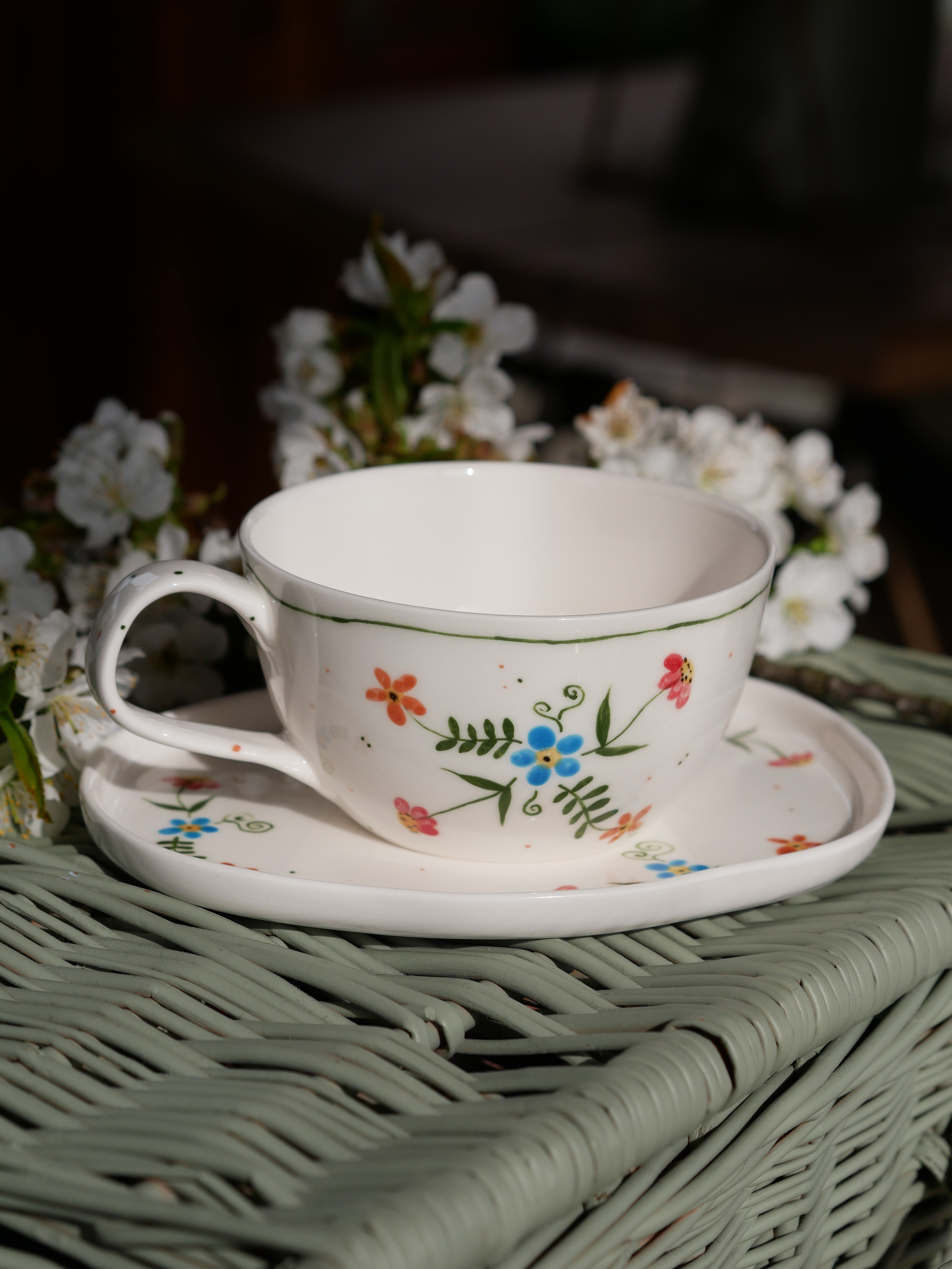 Filiżanka 300ml wiejska opowieść z białym uszkiem + talerzyk 13x16,5cm (M)
