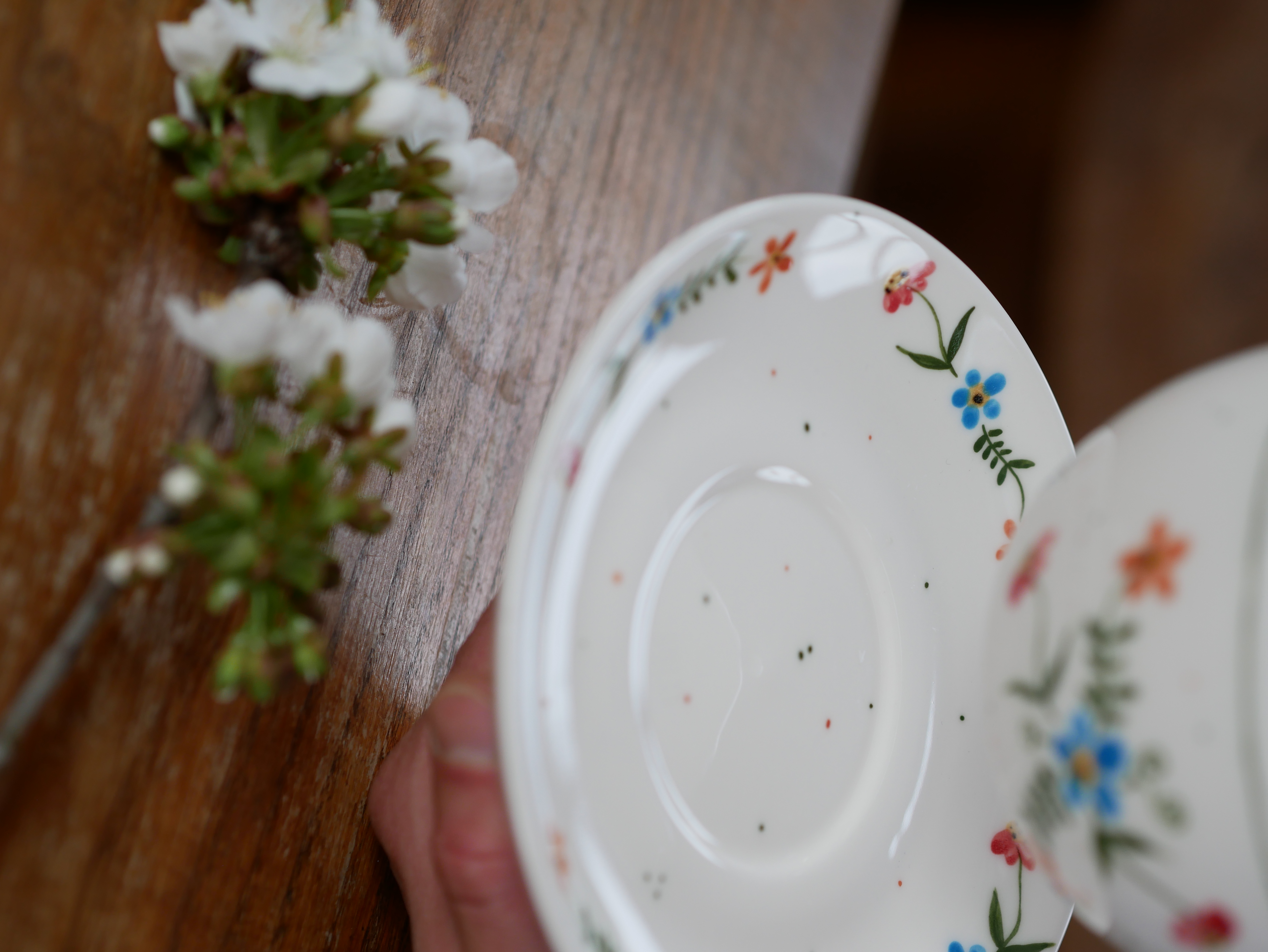 Kwiaty maluję ręcznie, dlatego na każdej filiżance wzór będzie wyglądać inaczej - zdjęcie poglądowe.