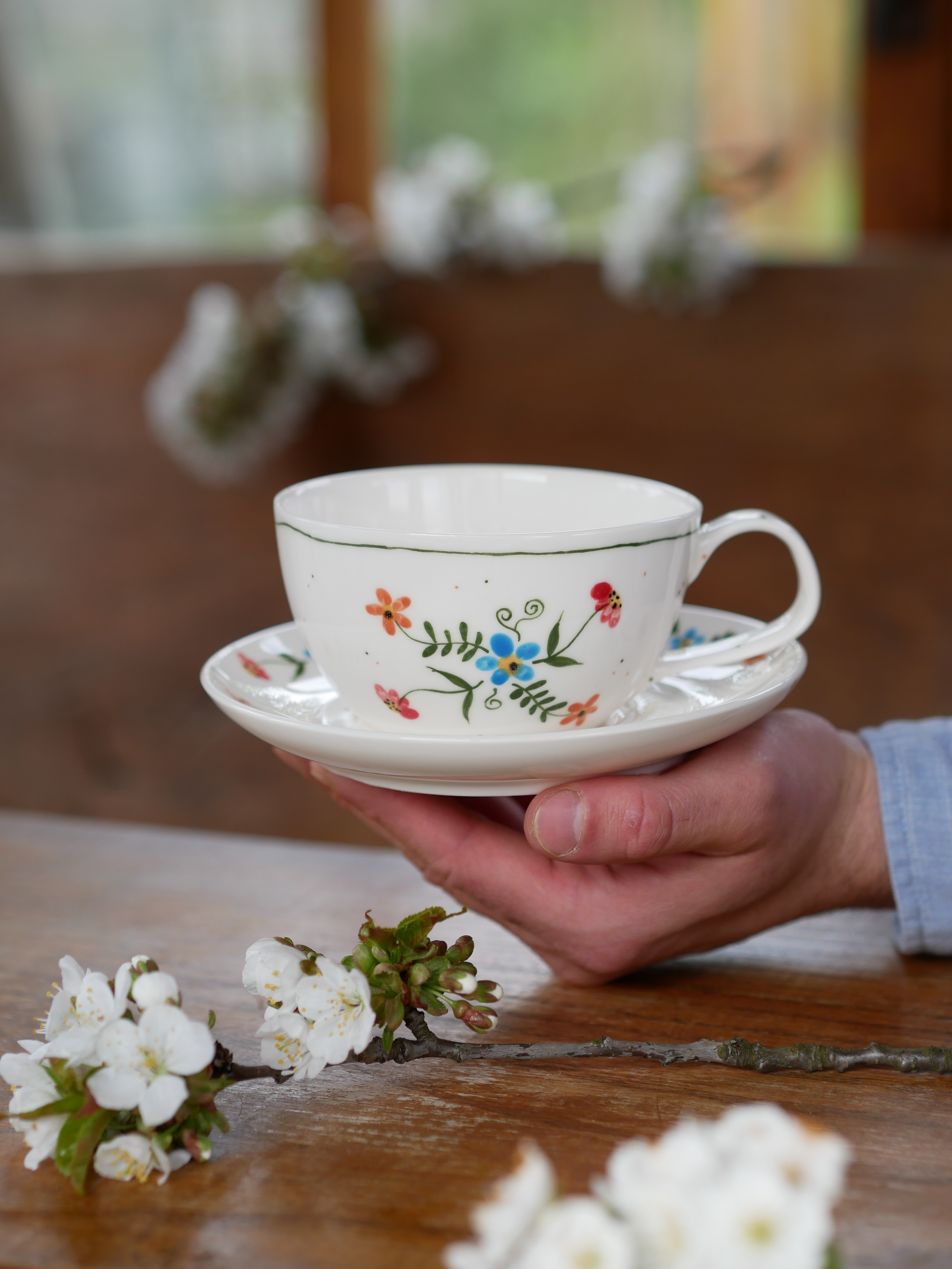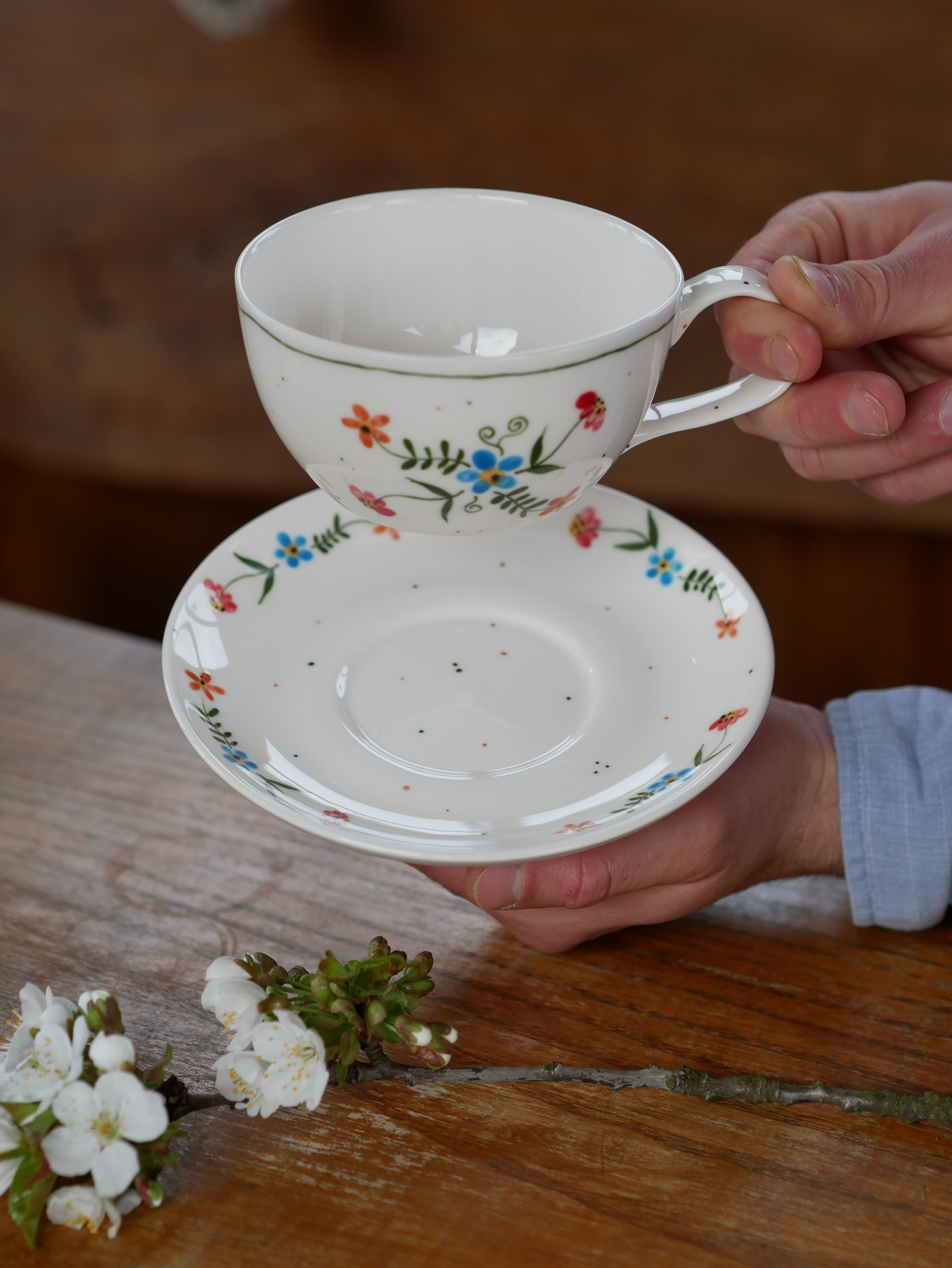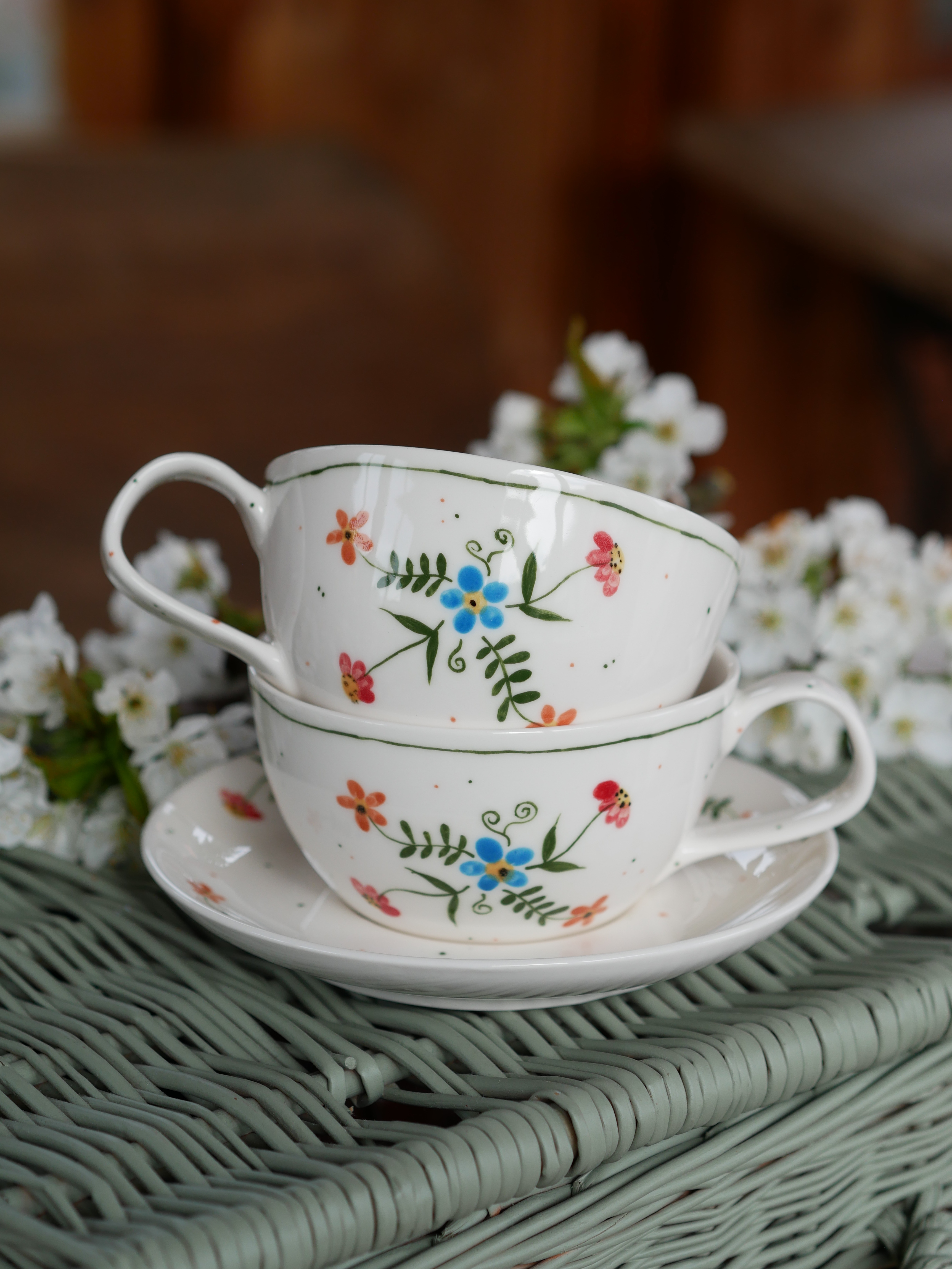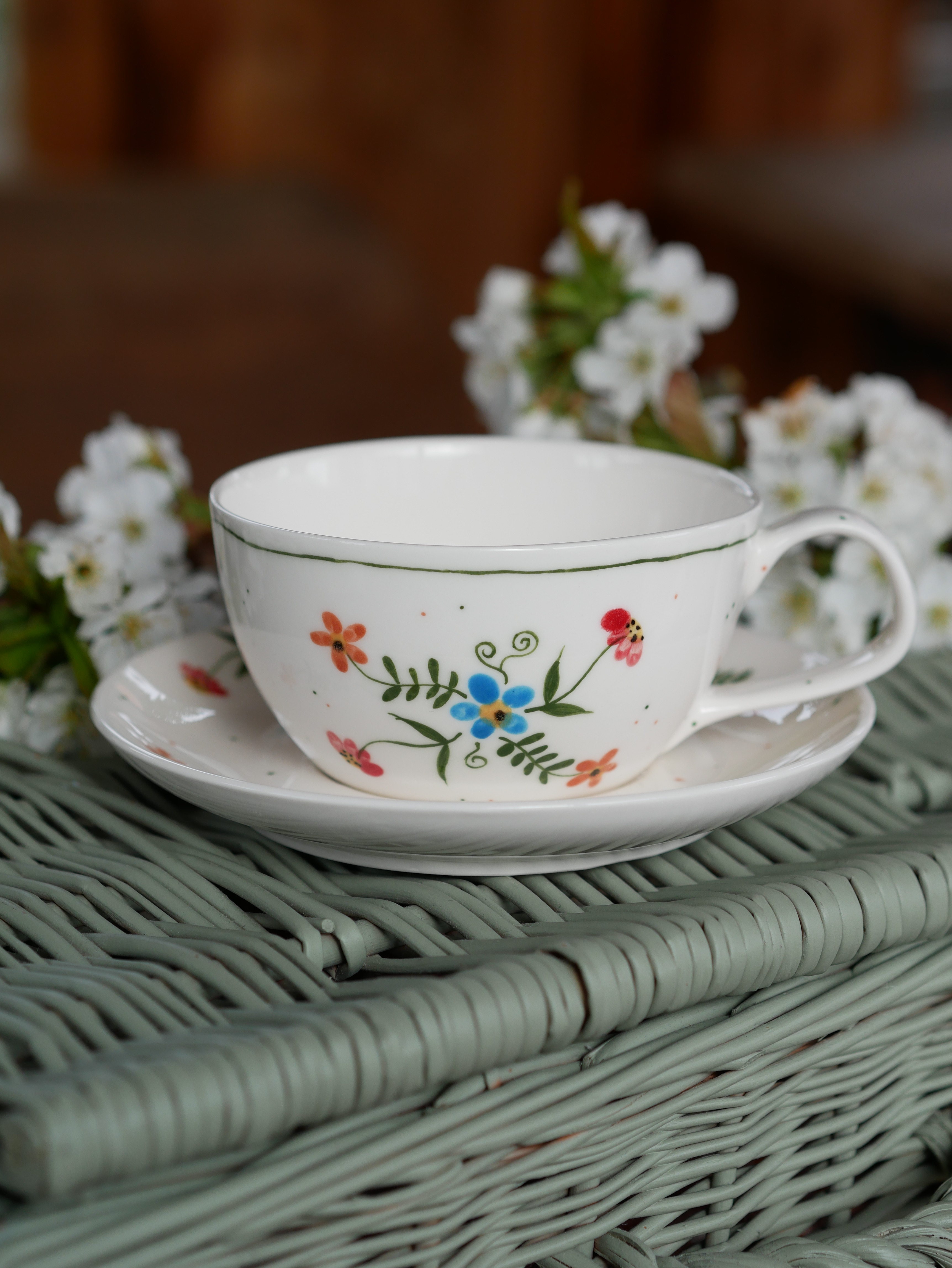 Filiżanka 300ml wiejska opowieść z białym uszkiem + talerzyk 15cm