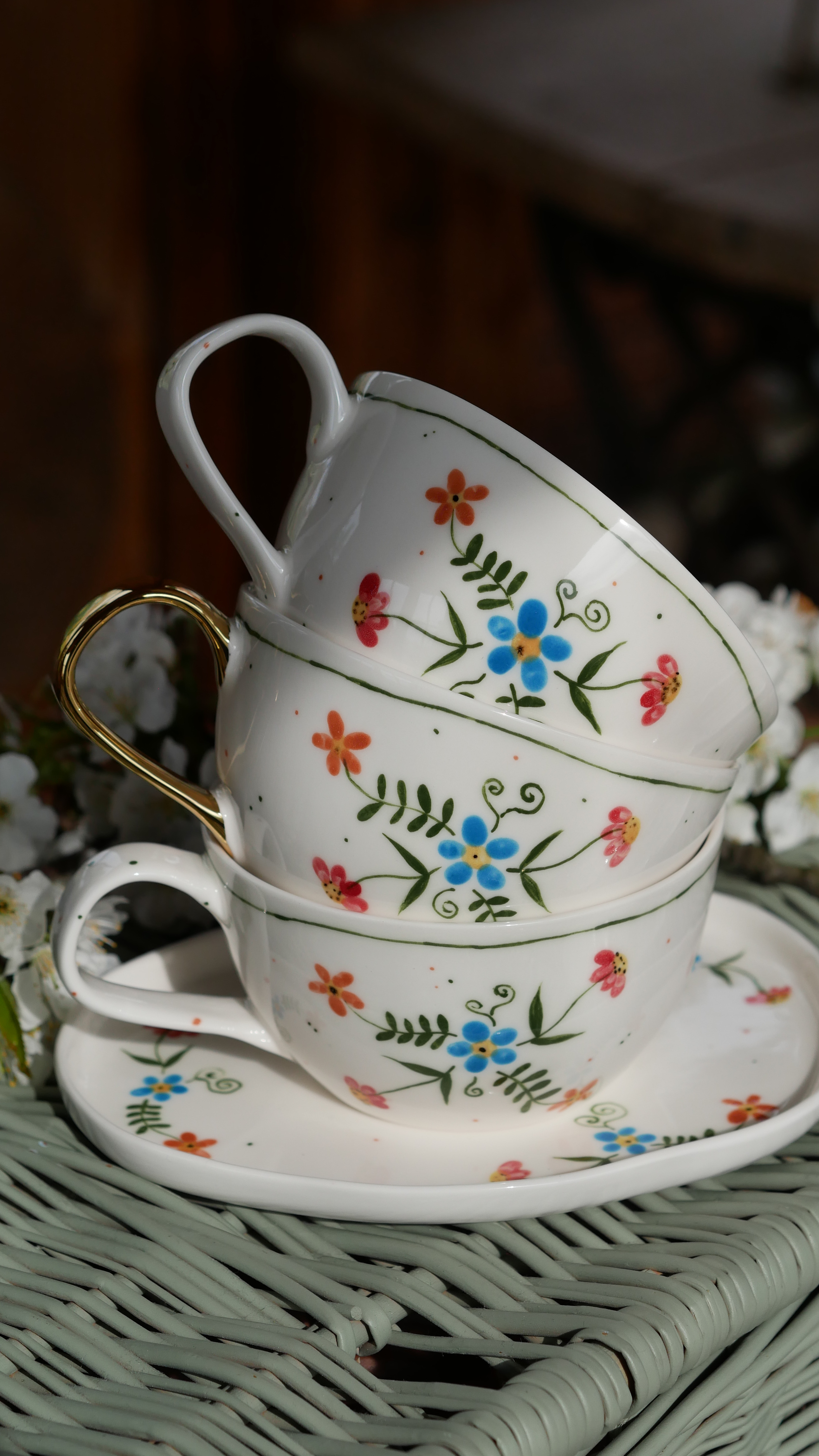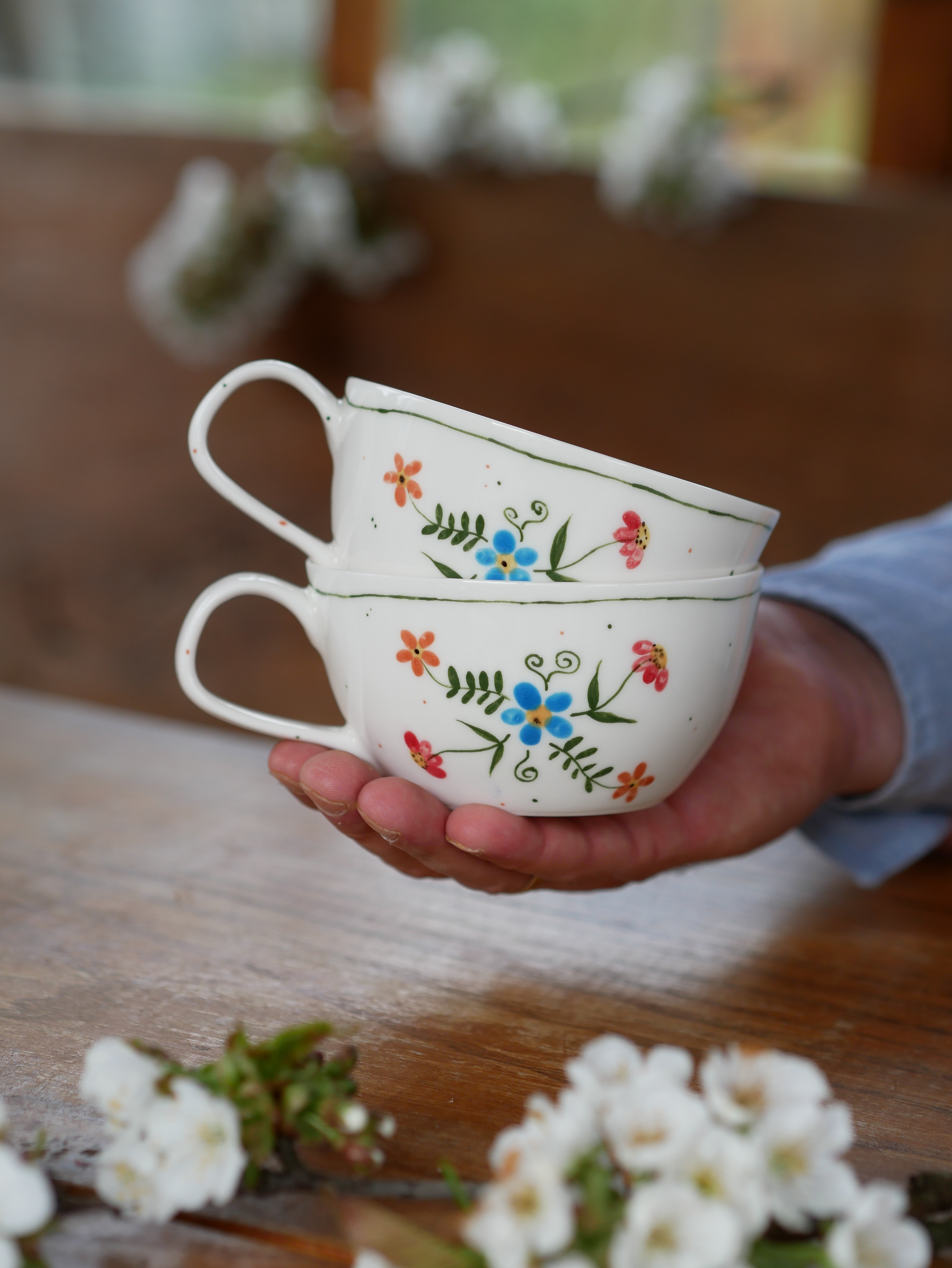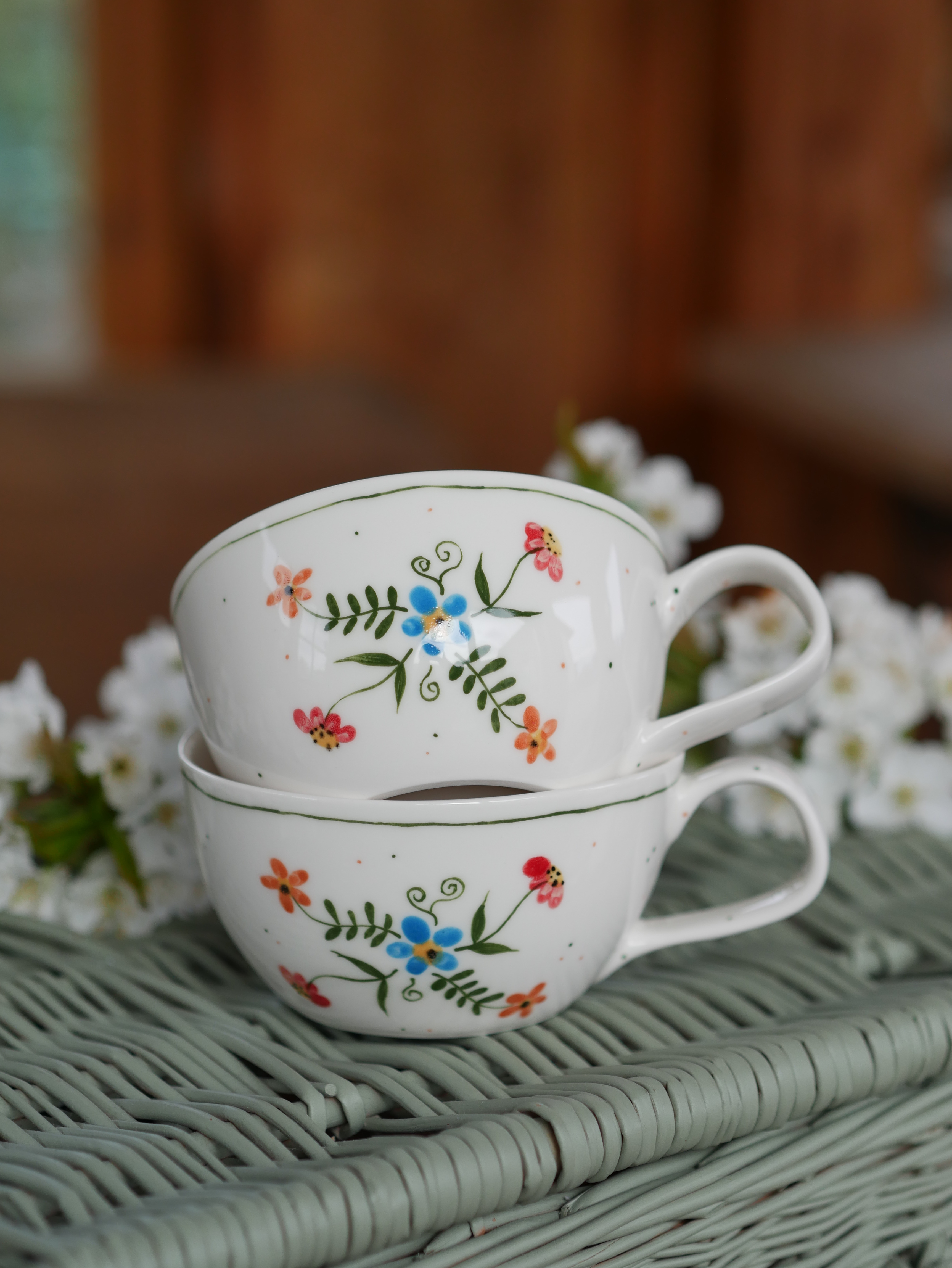 Kwiaty maluję ręcznie, dlatego na każdej filiżance wzór będzie wyglądać inaczej - zdjęcie poglądowe.