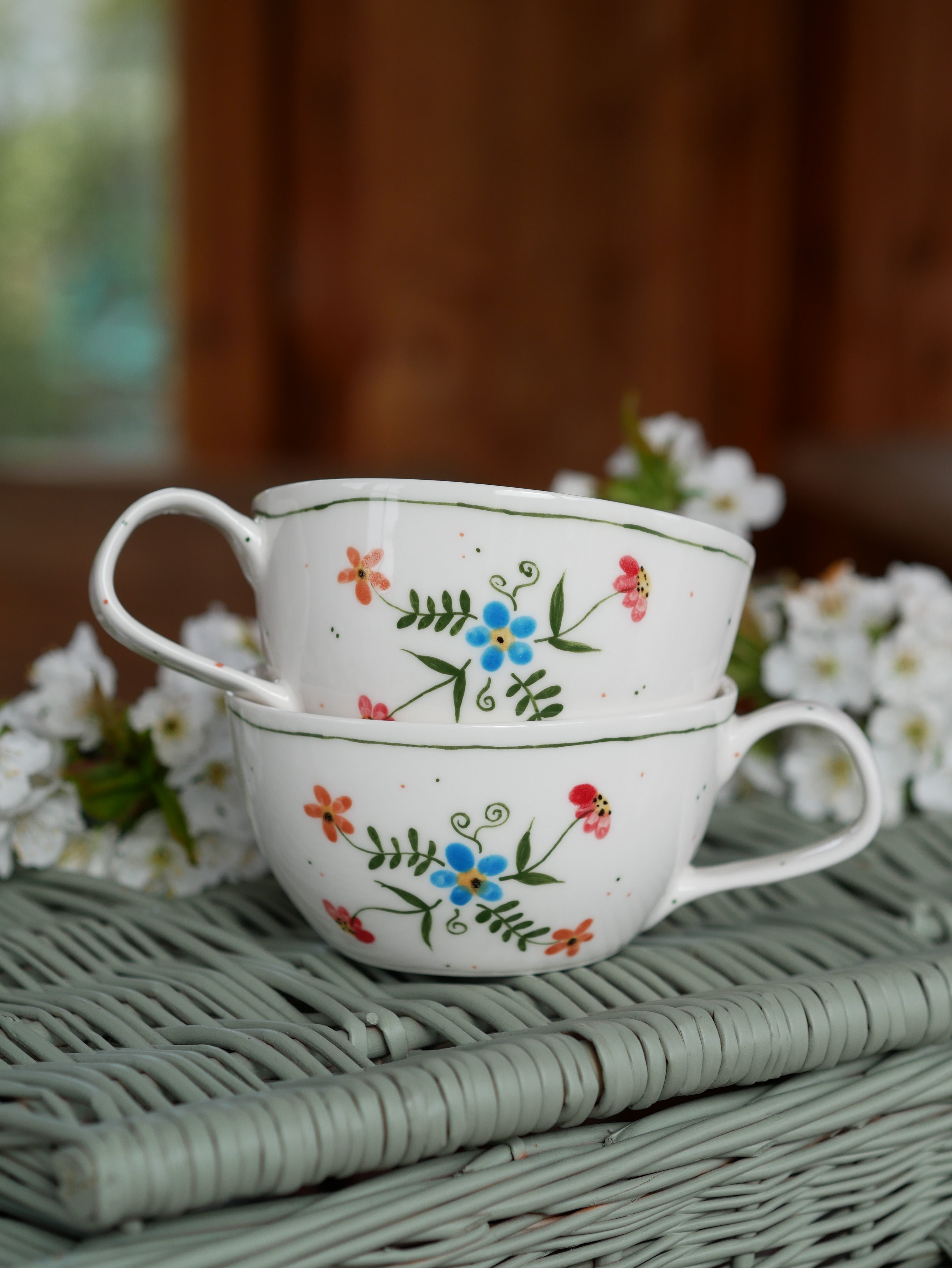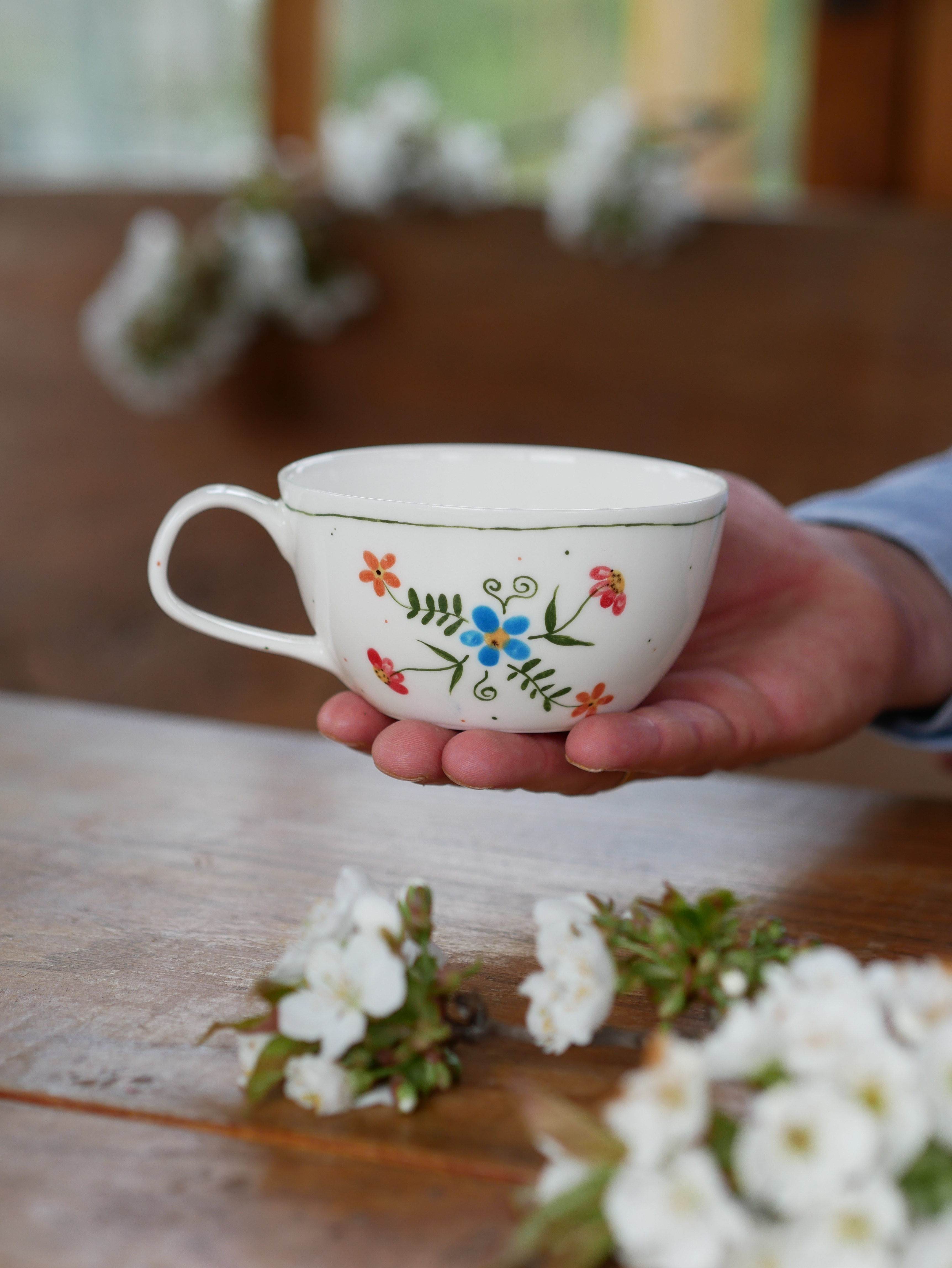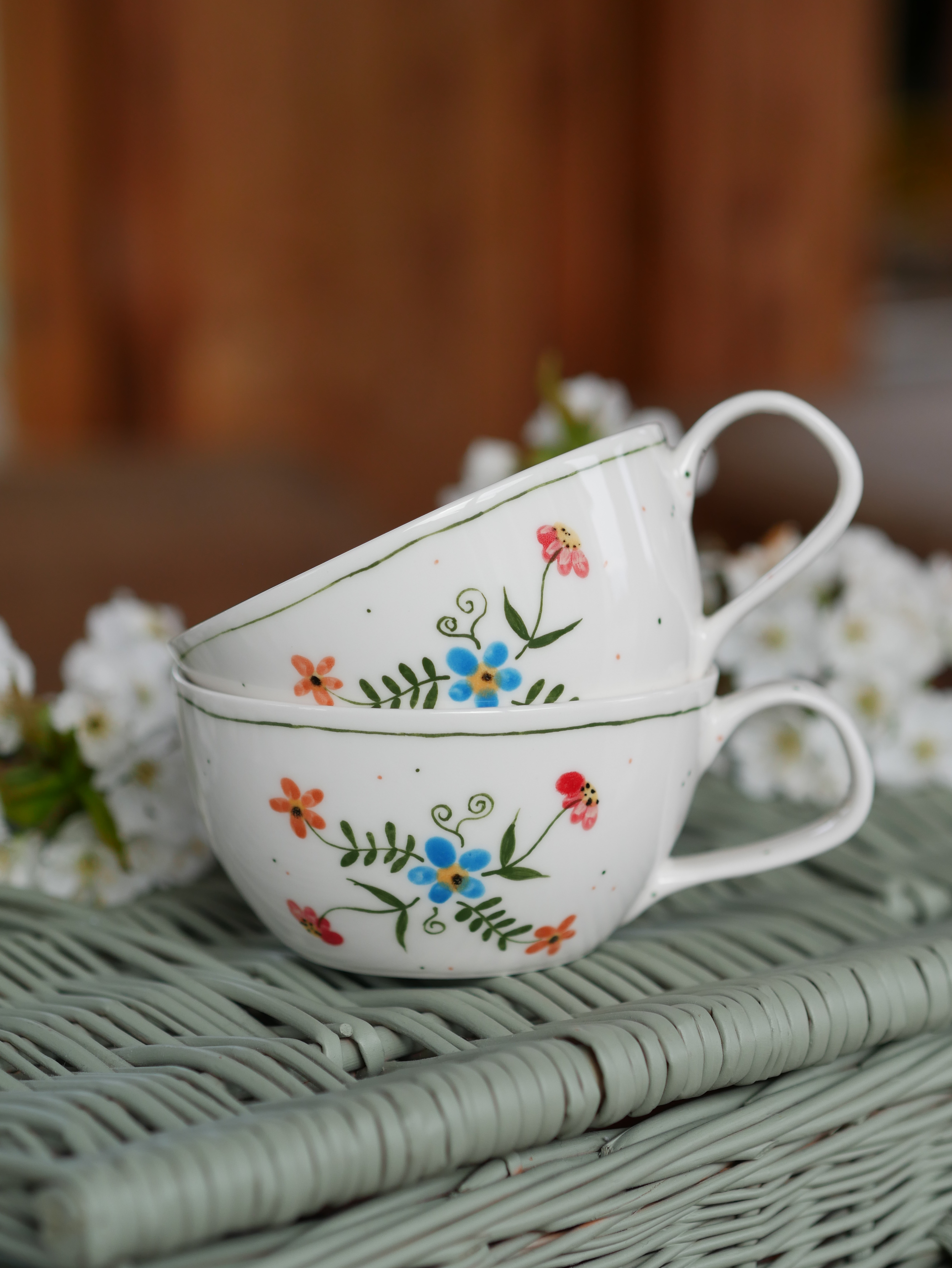 Kwiaty maluję ręcznie, dlatego na każdej filiżance wzór będzie wyglądać inaczej - zdjęcie poglądowe.