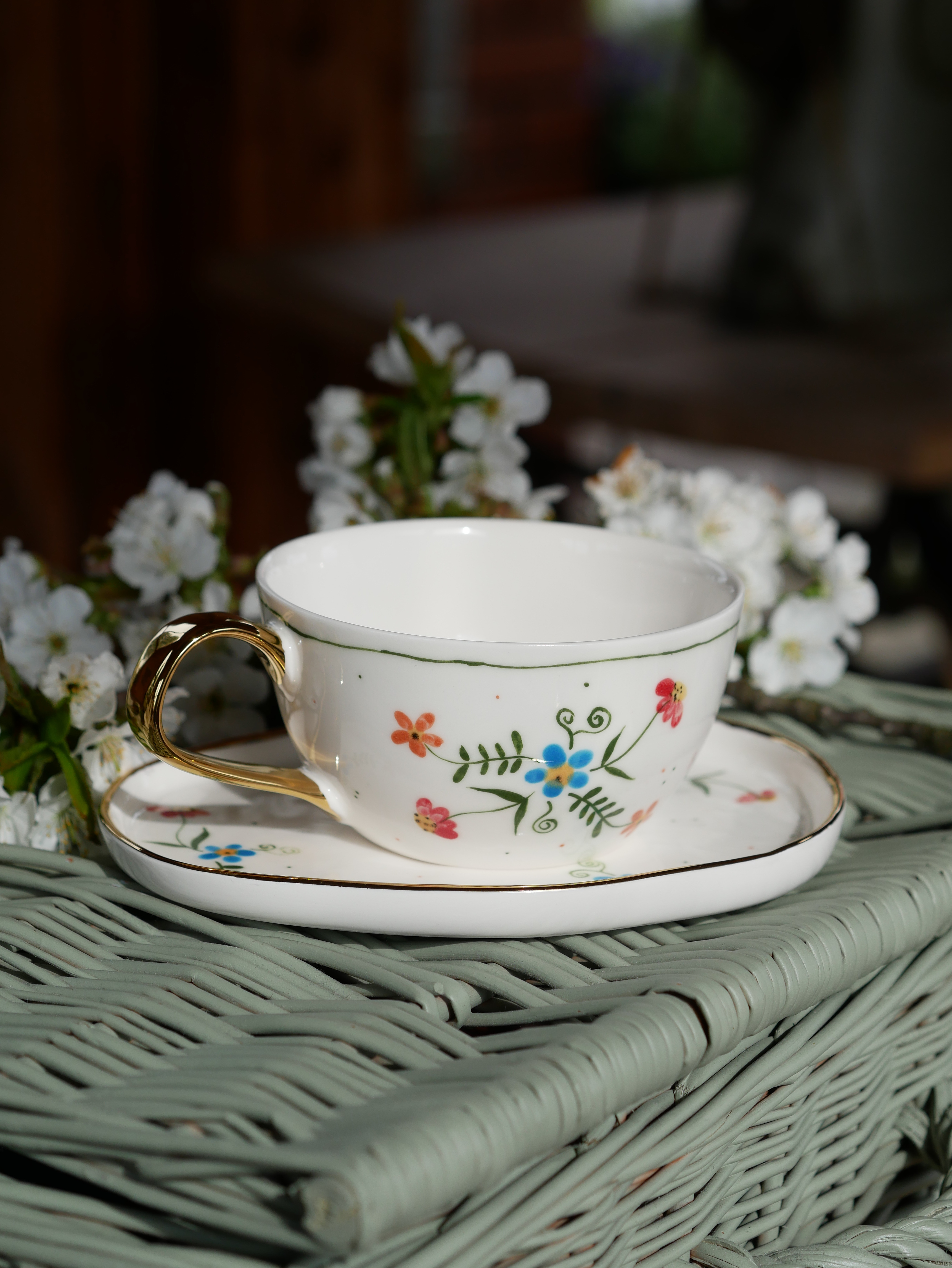 Filiżanka 300ml wiejska opowieść ze złotym uszkiem + talerzyk 13x16,5cm (M)