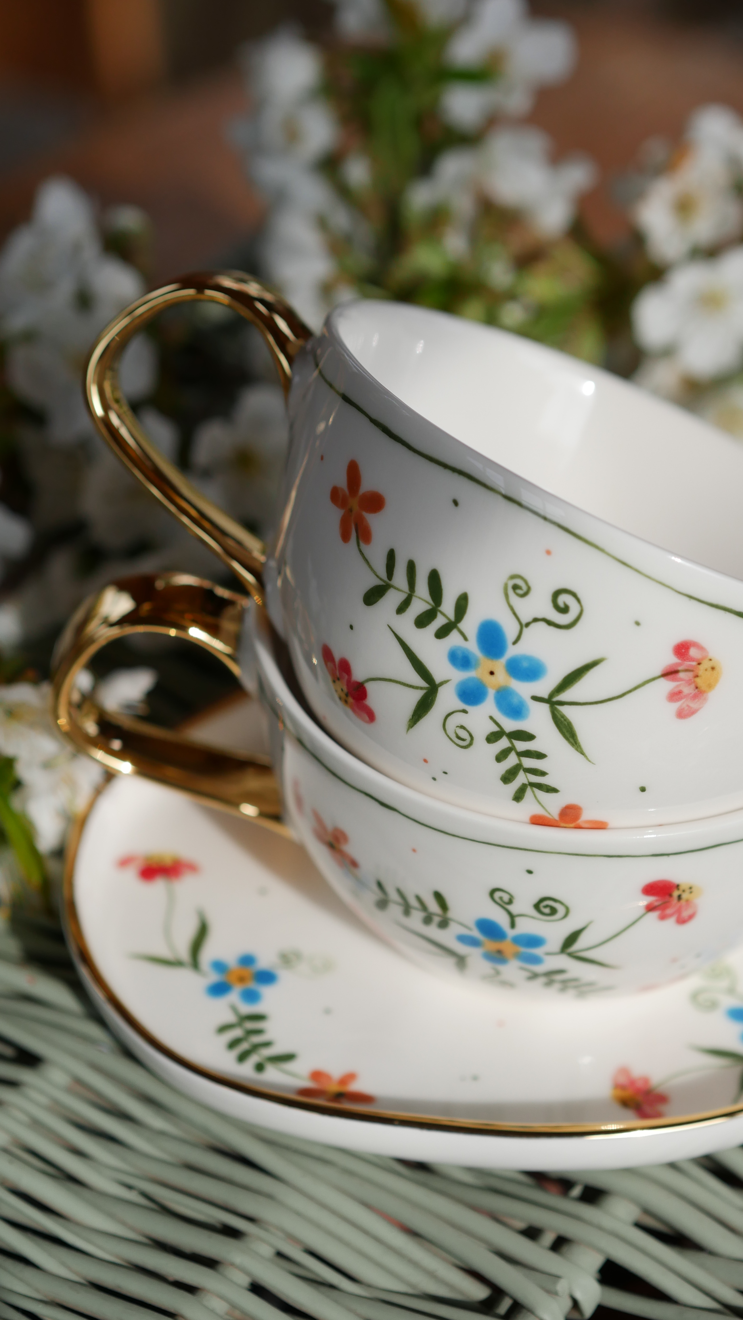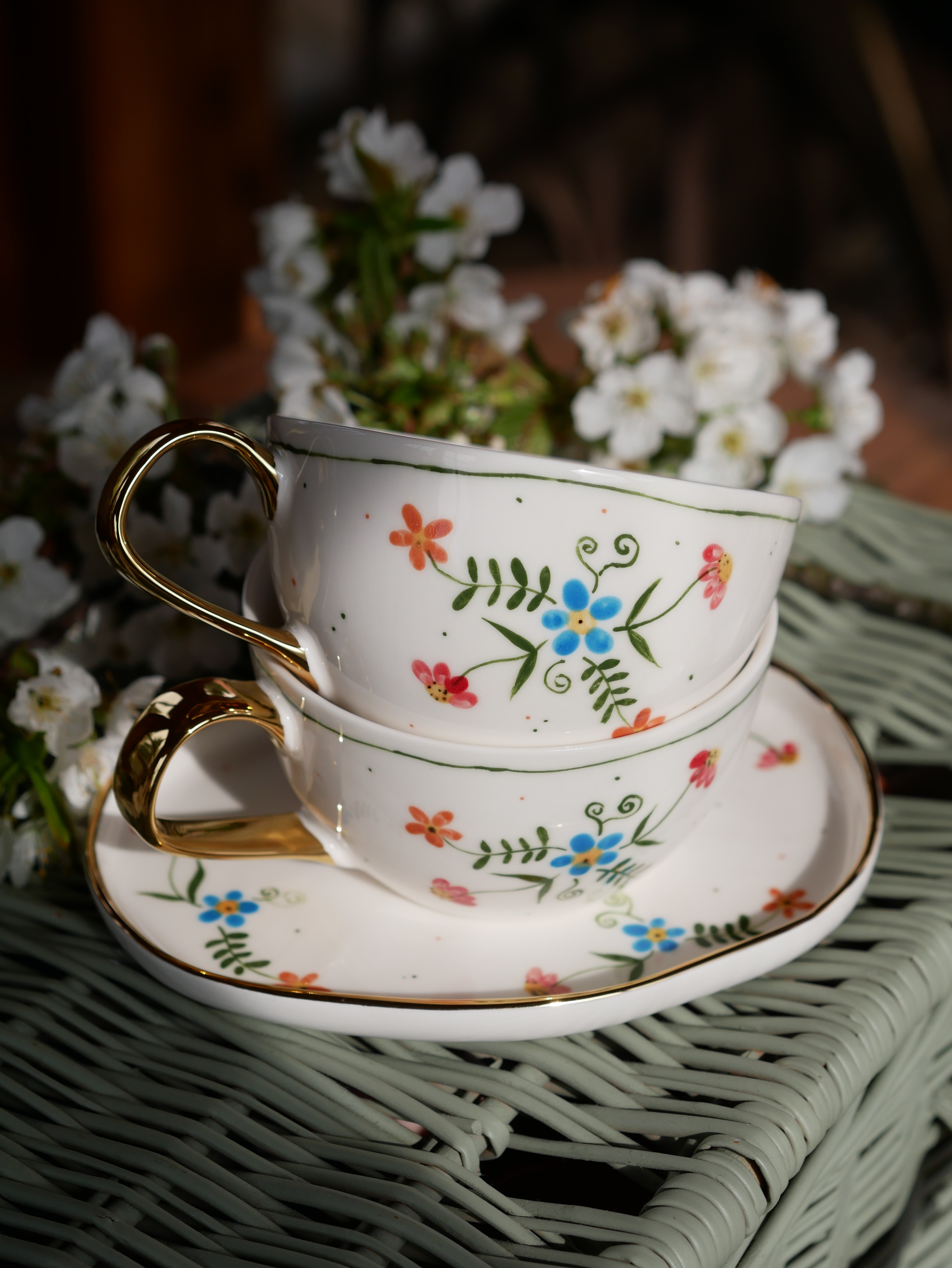 Kwiaty maluję ręcznie, dlatego na każdej filiżance wzór będzie wyglądać inaczej - zdjęcie poglądowe.