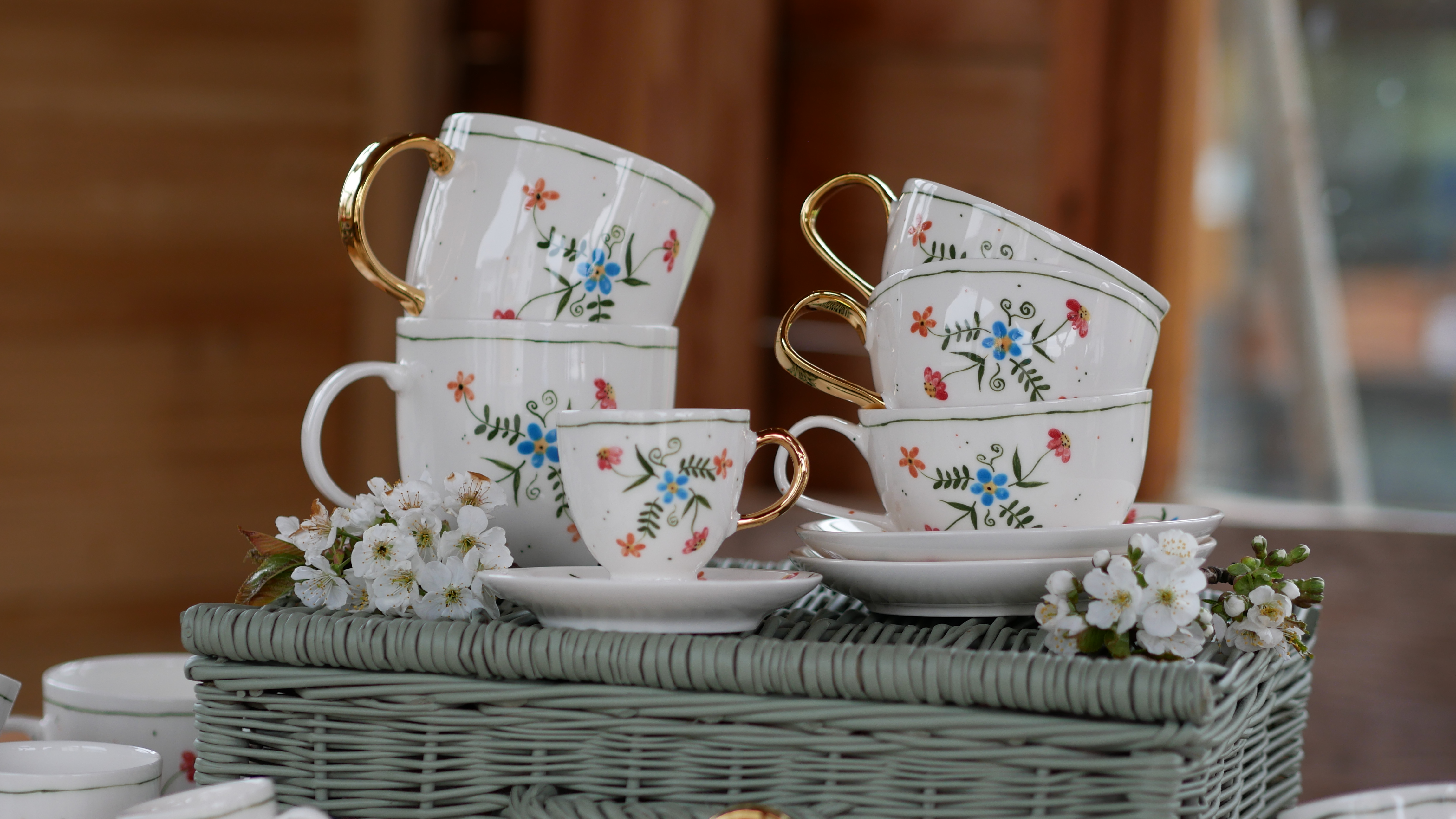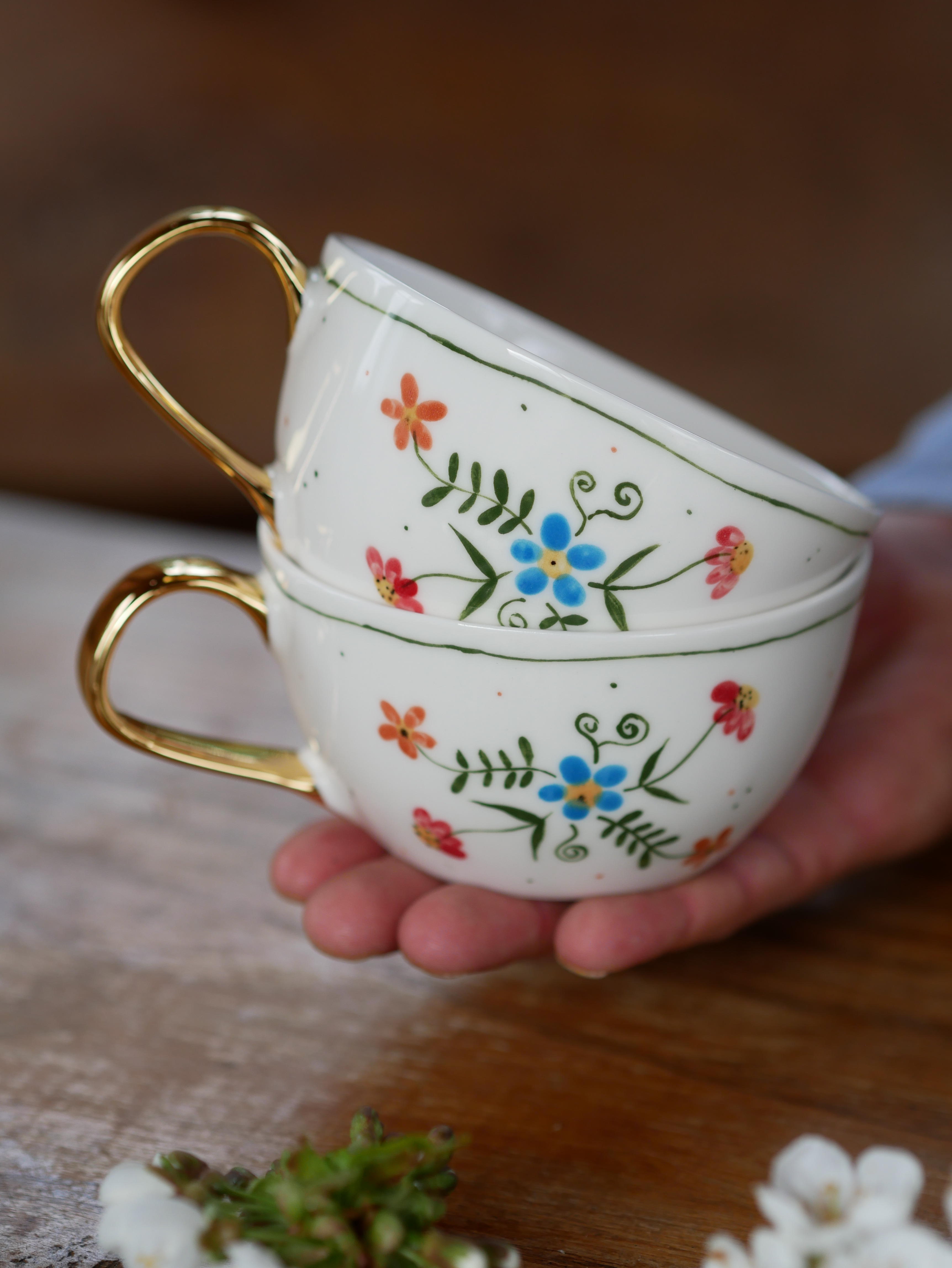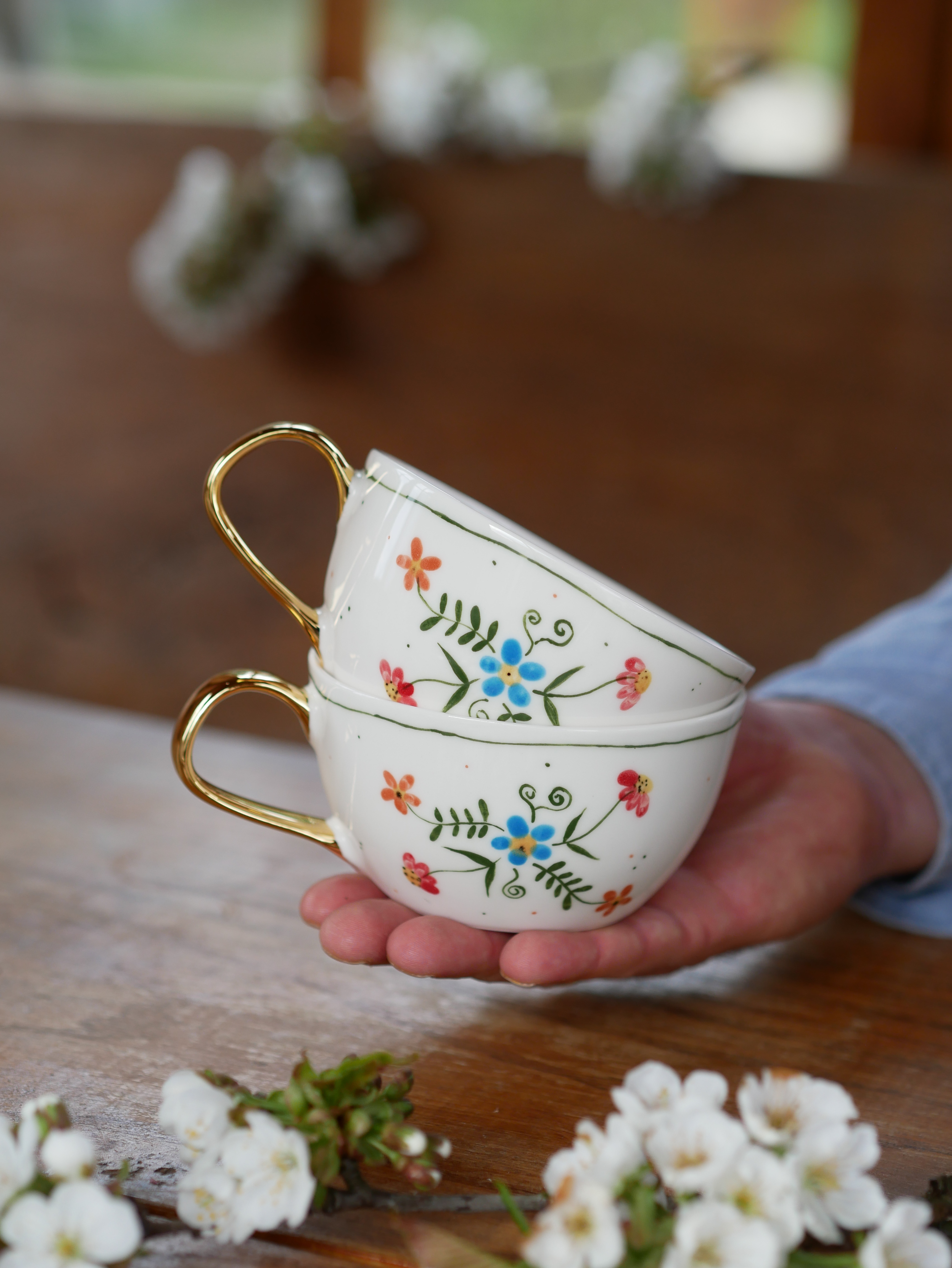 Kwiaty maluję ręcznie, dlatego na każdej filiżance wzór będzie wyglądać inaczej - zdjęcie poglądowe.