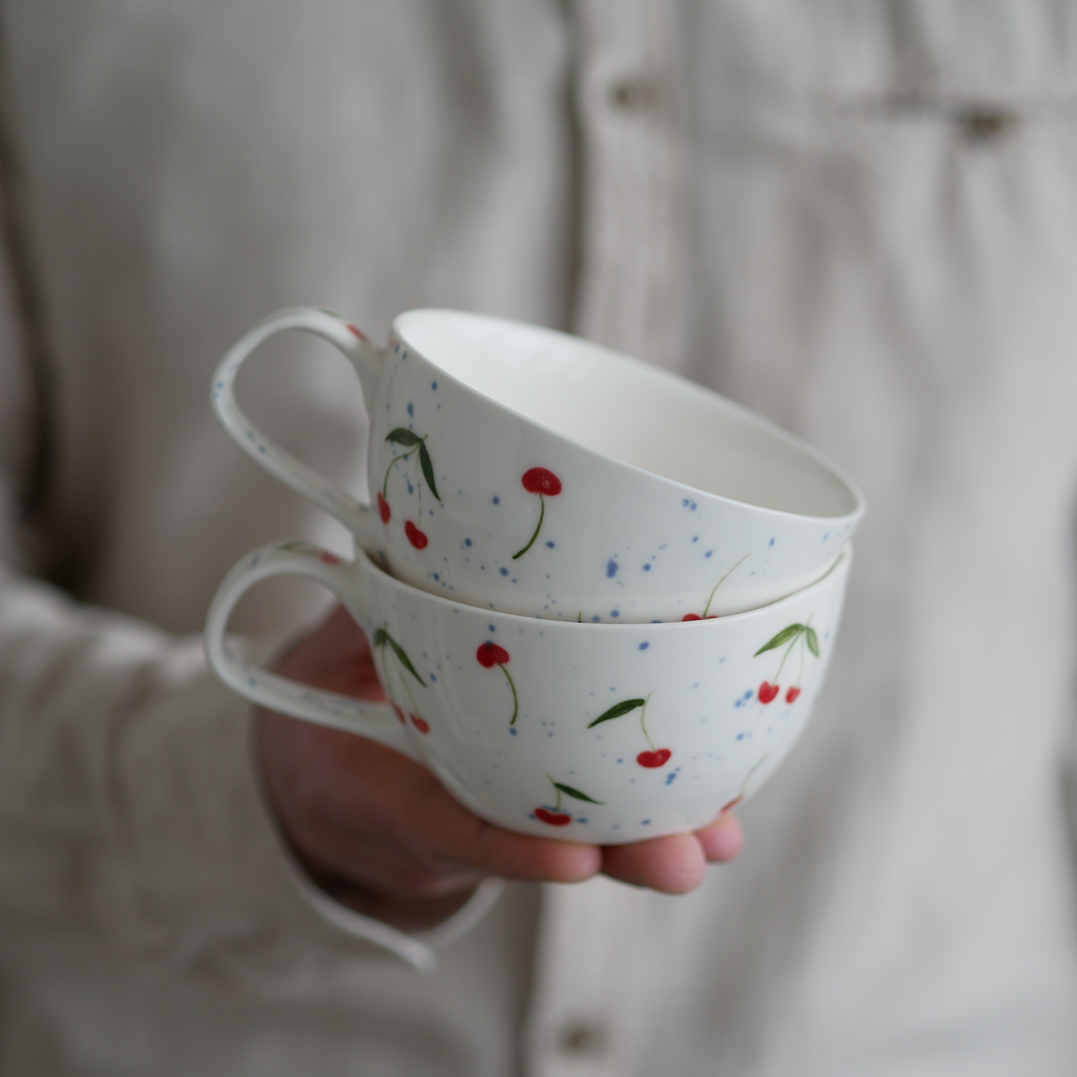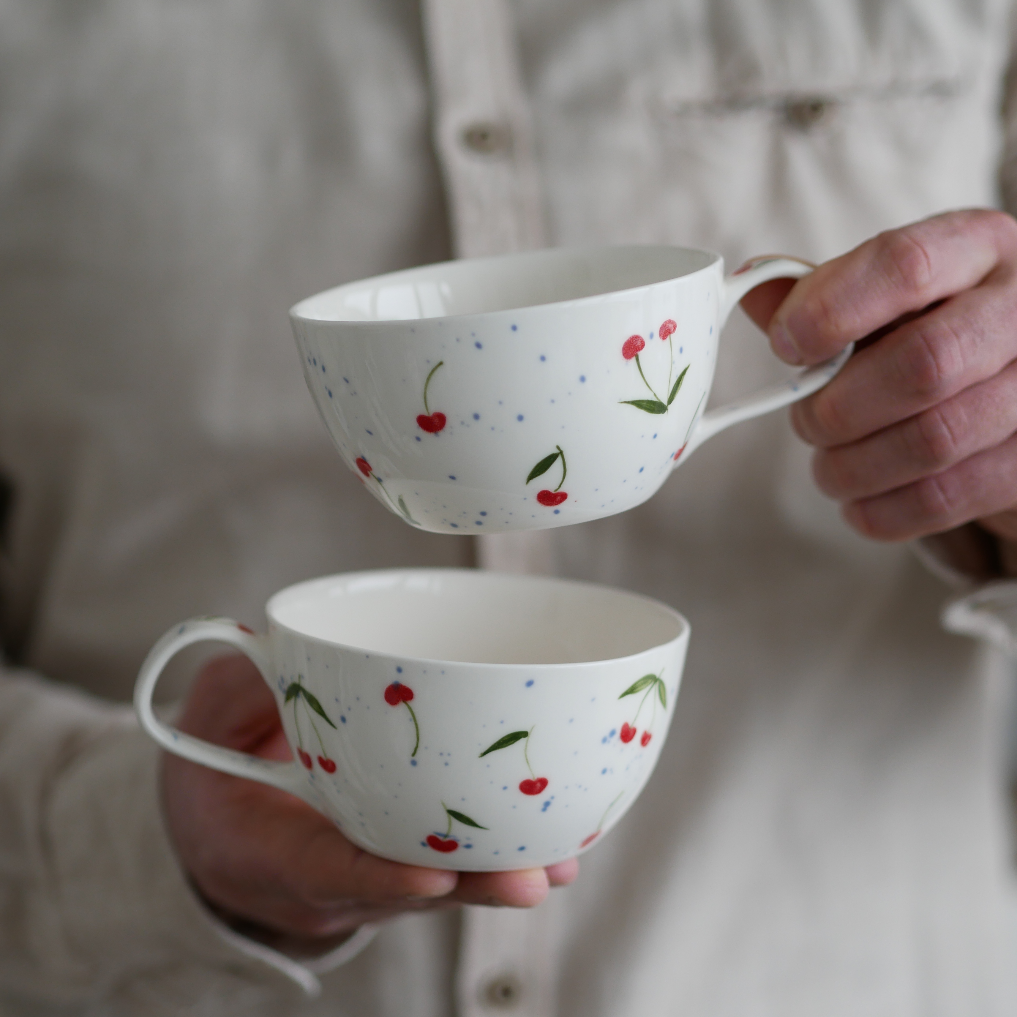 Filiżanka 300ml wisienki (wewnątrz) z białym uszkiem