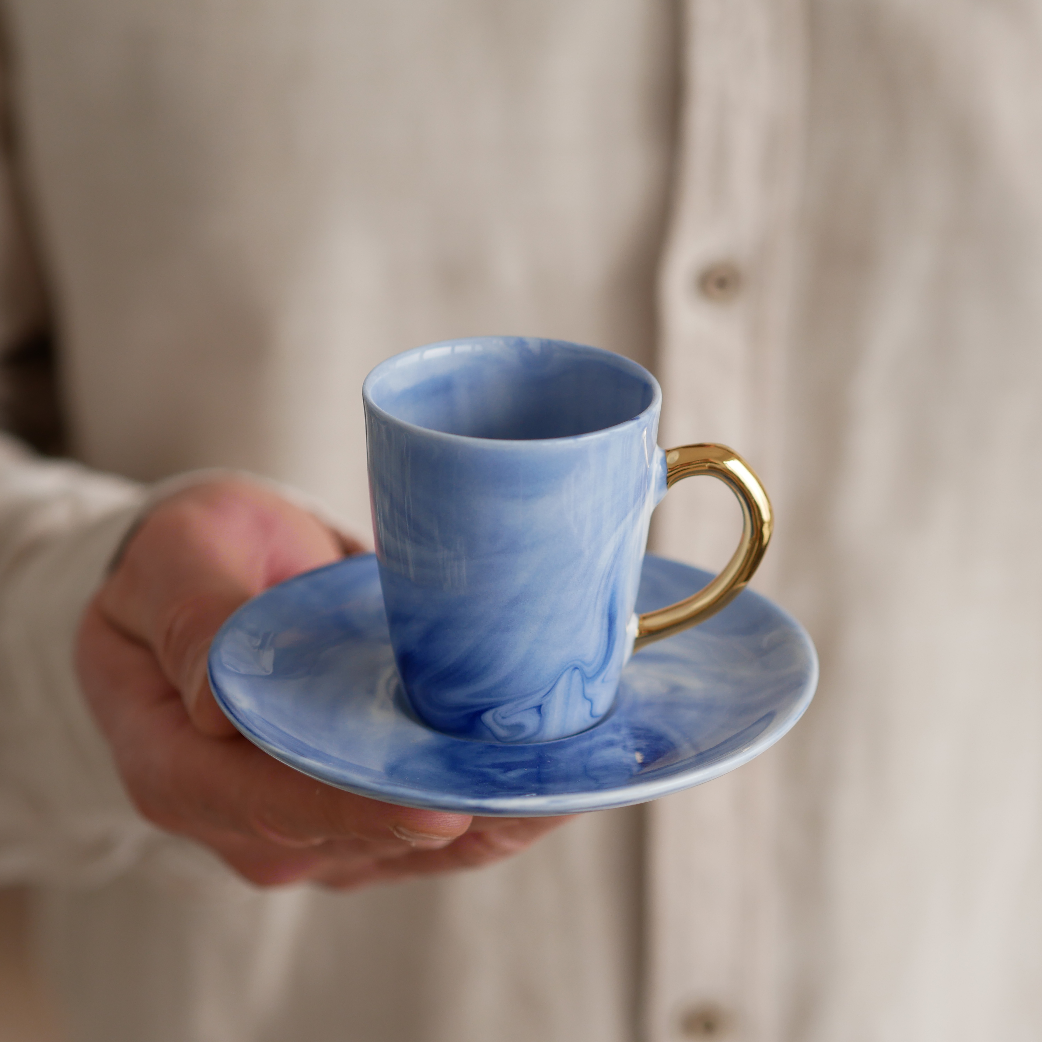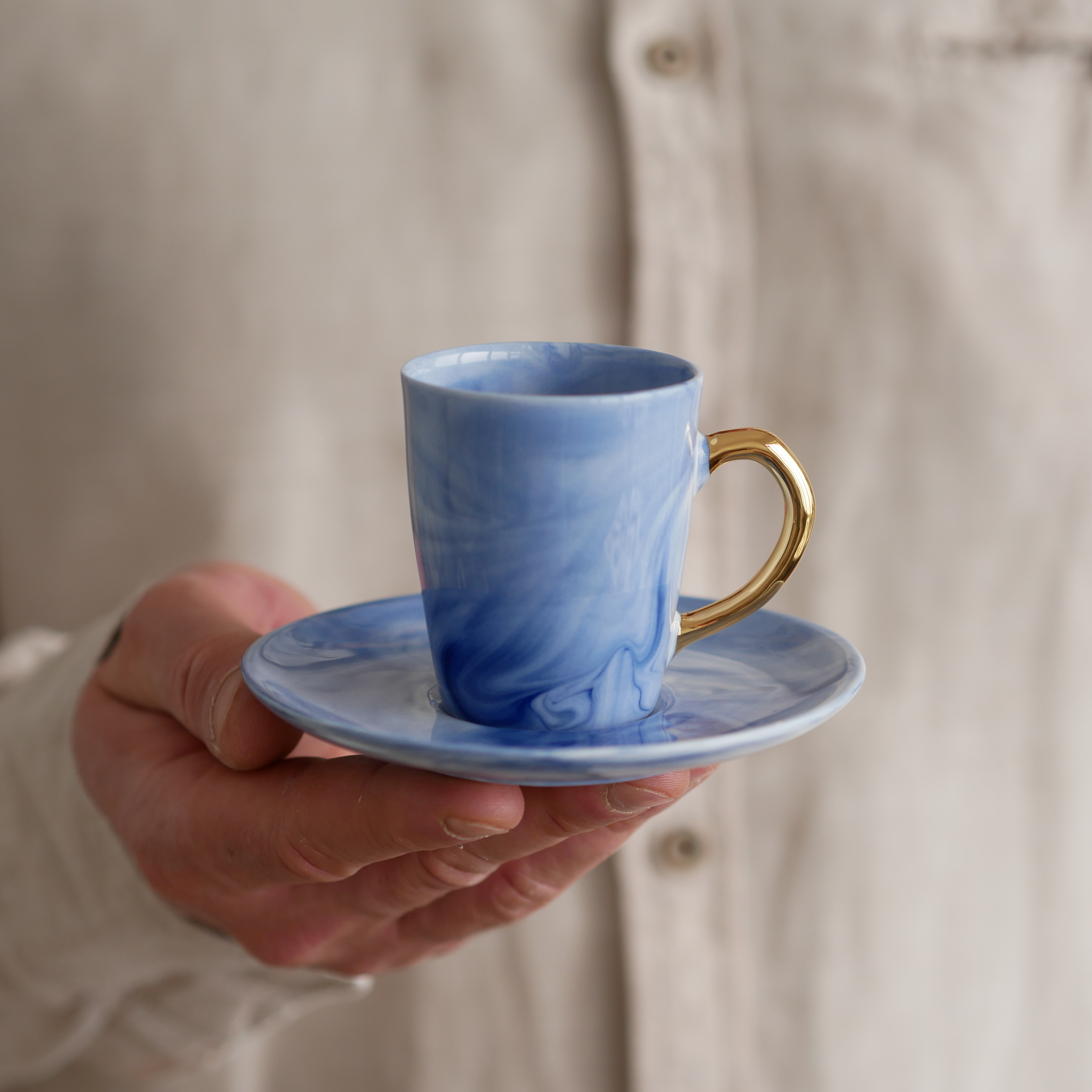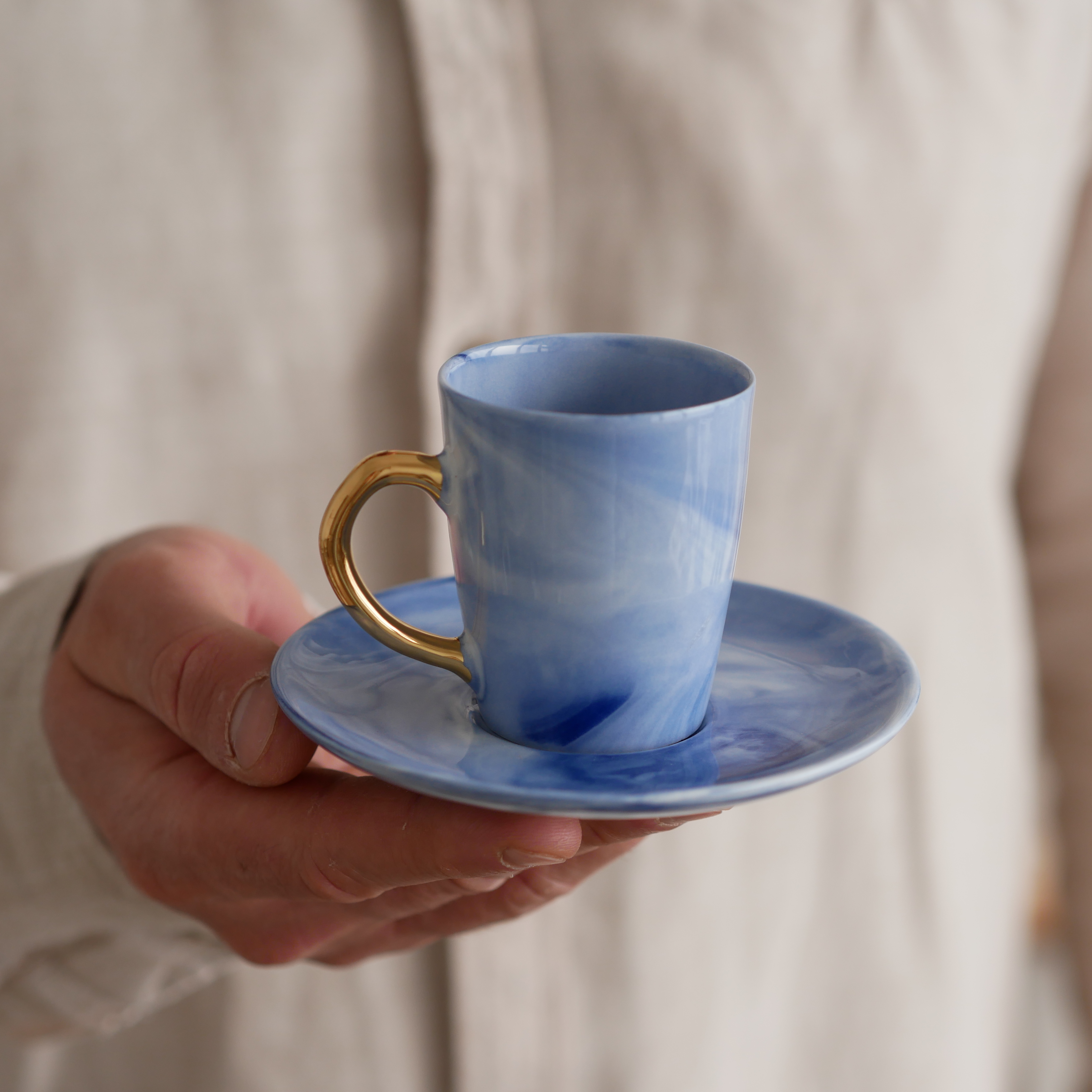 Filiżanka 70ml INK kobaltowy ze złotym uszkiem + talerzyk 11cm