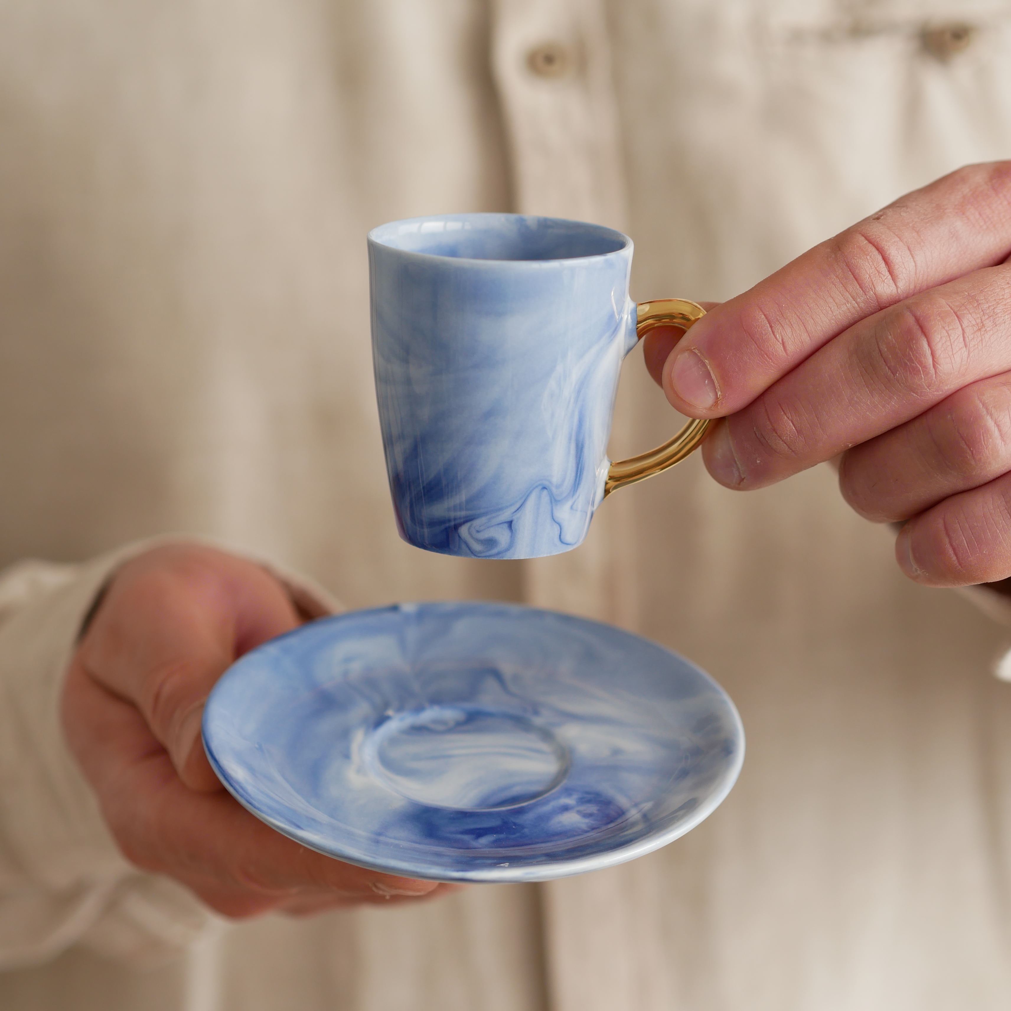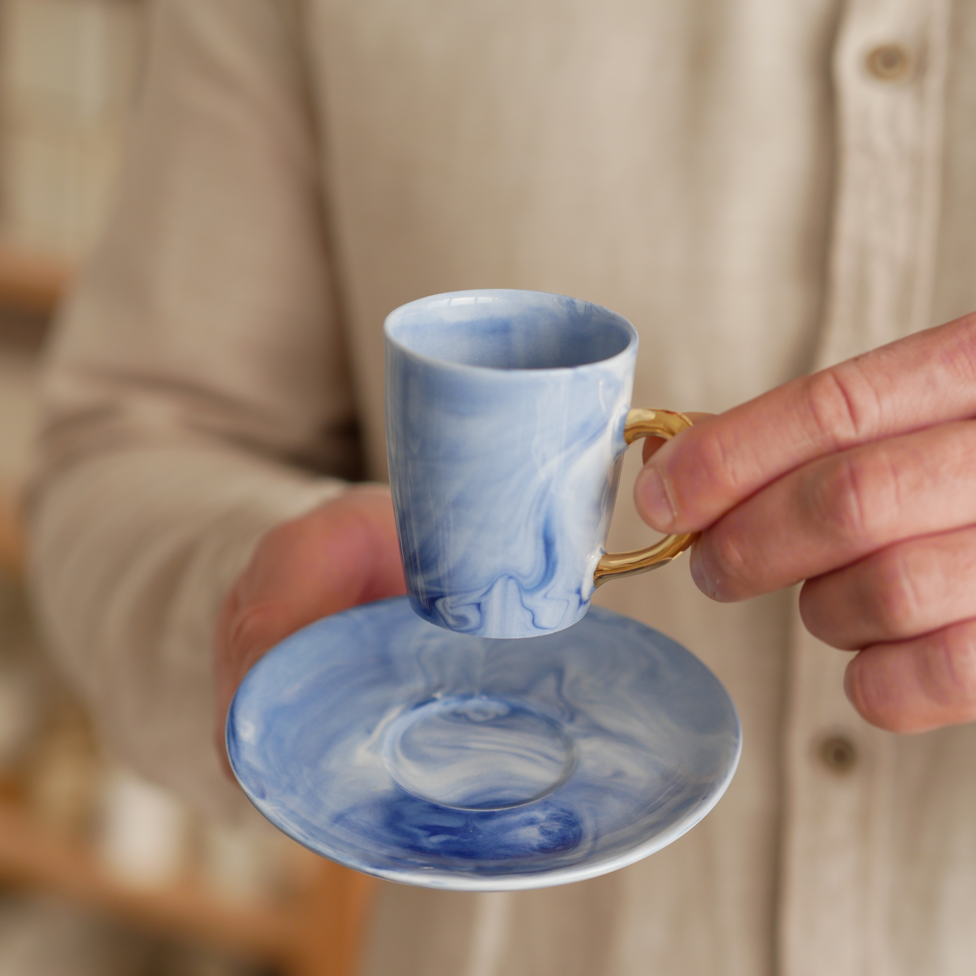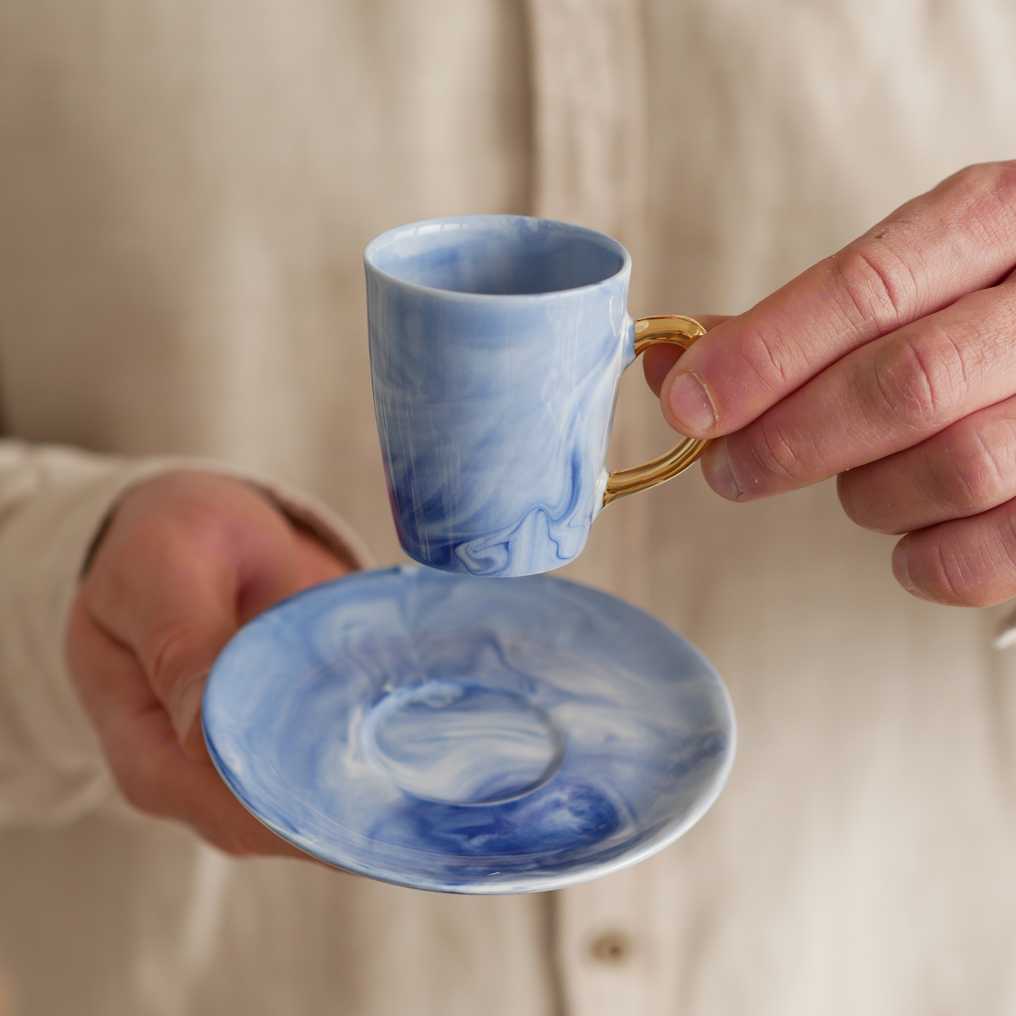 Filiżanka 70ml INK kobaltowy ze złotym uszkiem + talerzyk 11cm