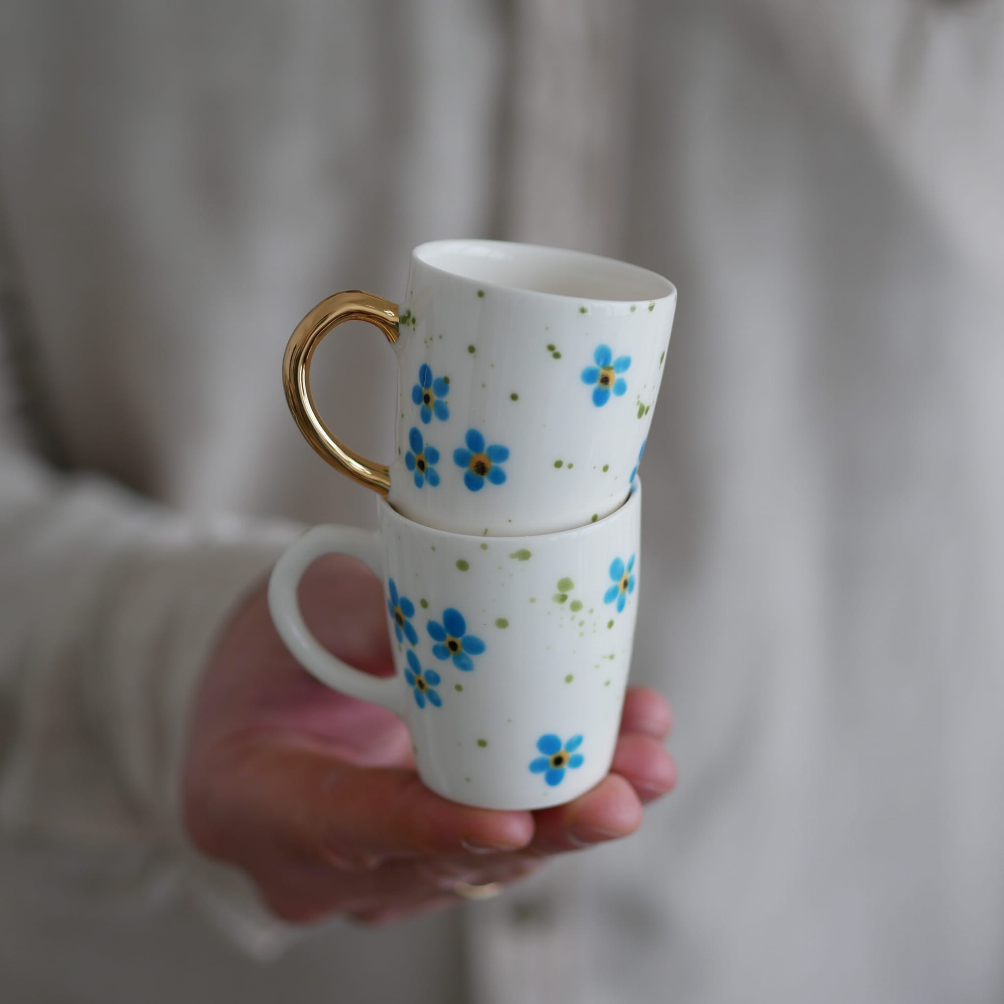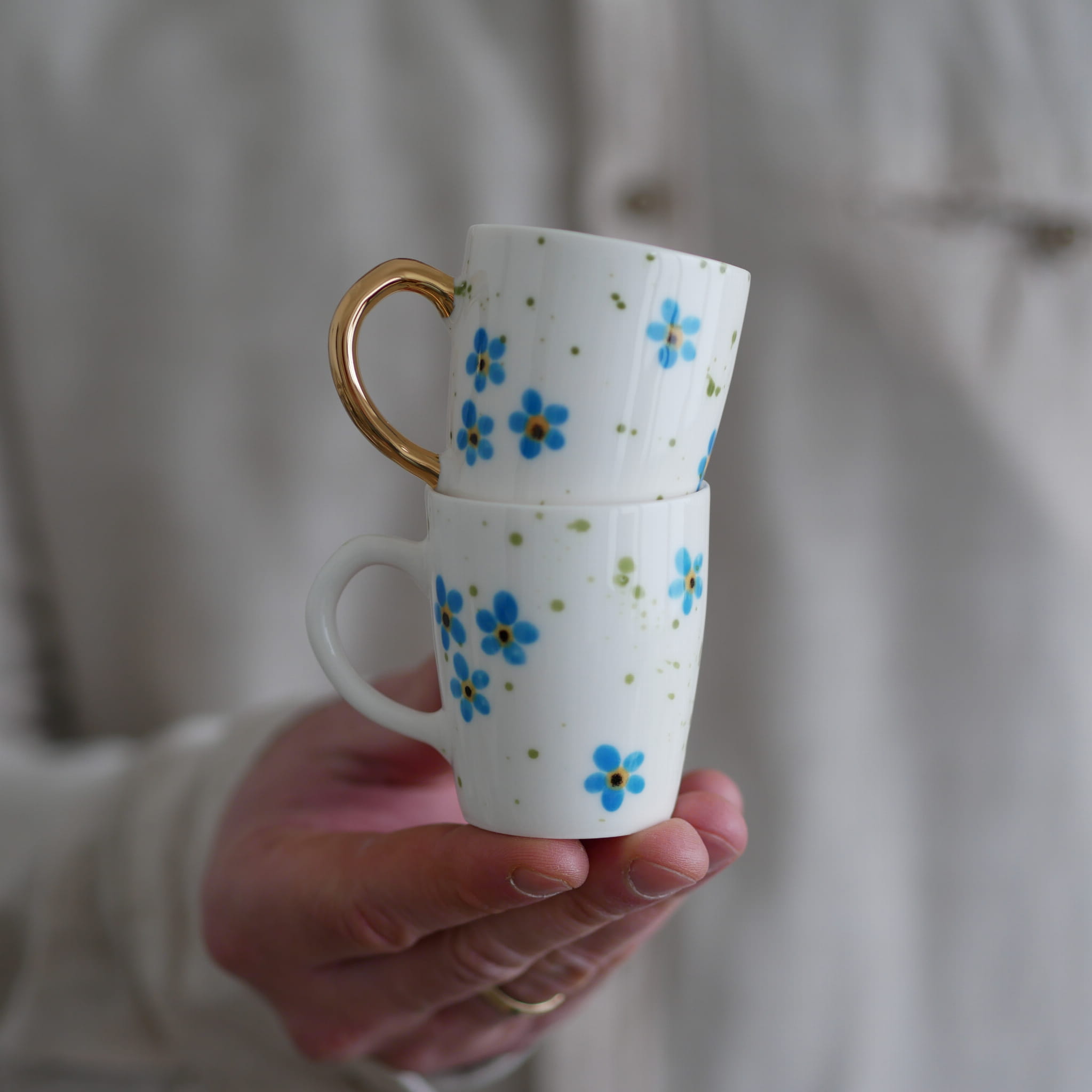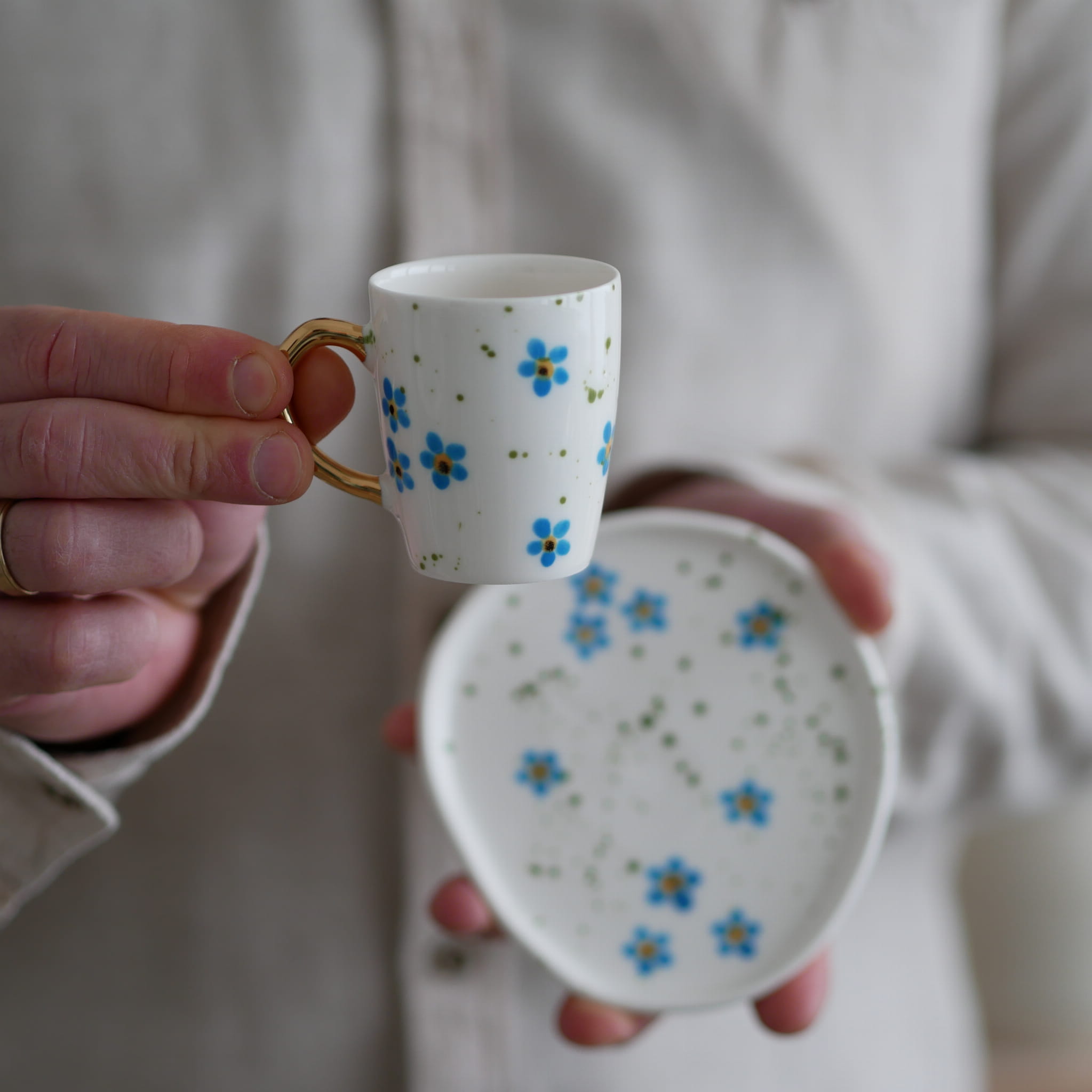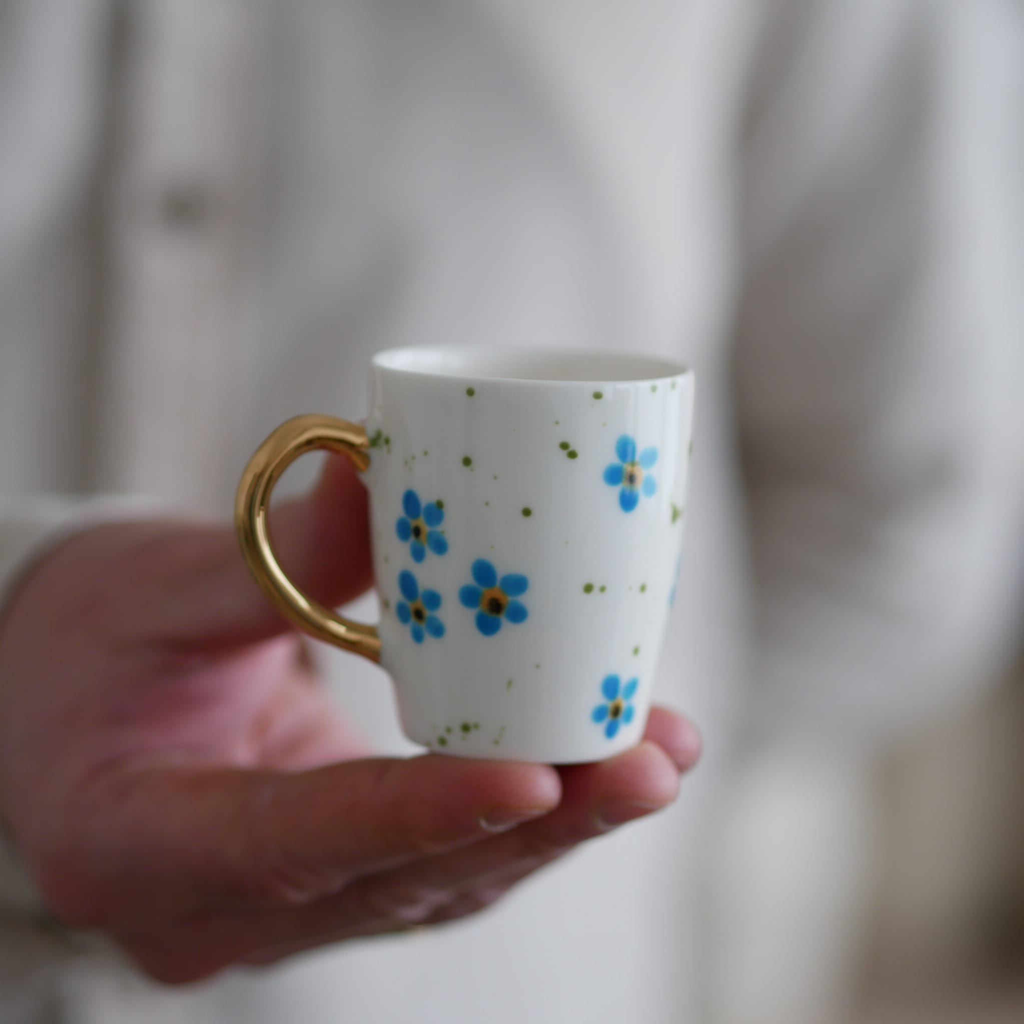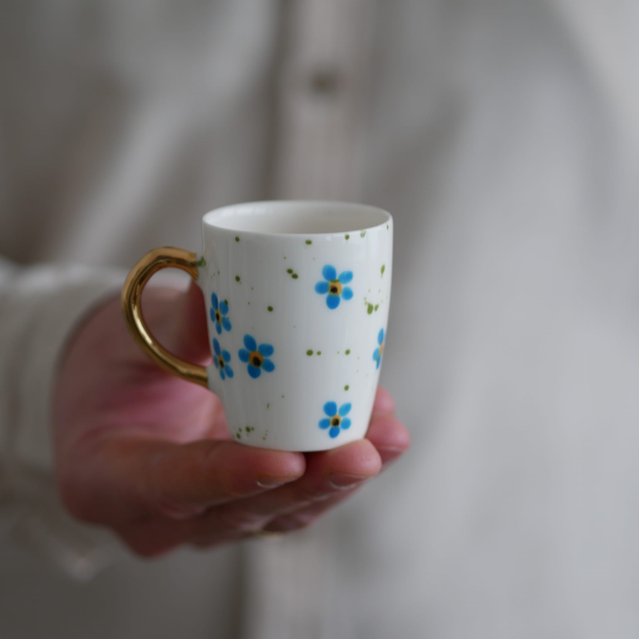 Filiżanka do espresso 70ml niezapominajki ze złotym uszkiem