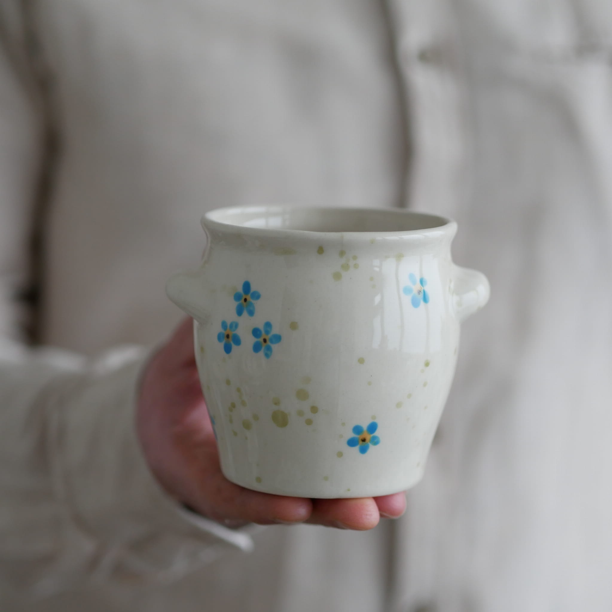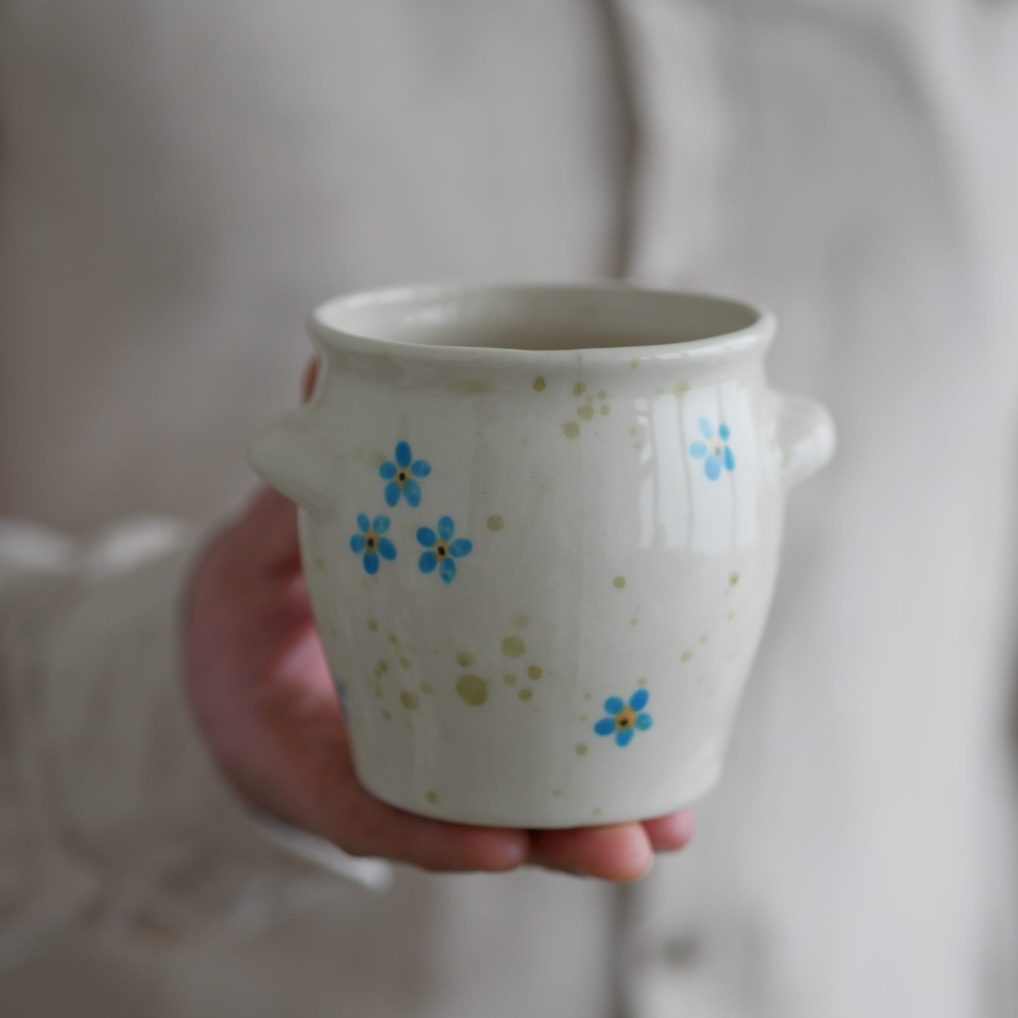 Kwiaty maluję ręcznie, dlatego na każdym garnuszku wzór będzie wyglądać inaczej - zdjęcie poglądowe.