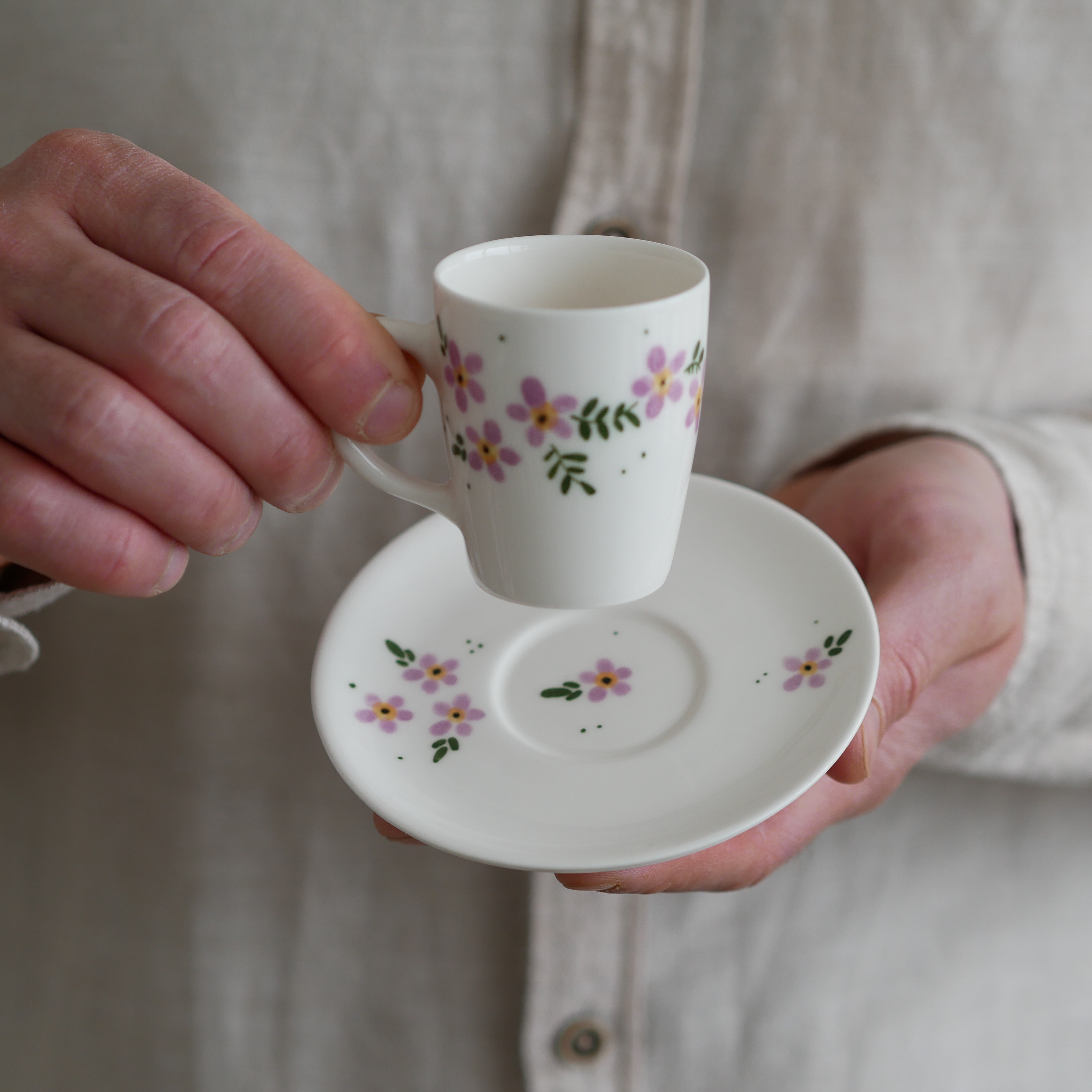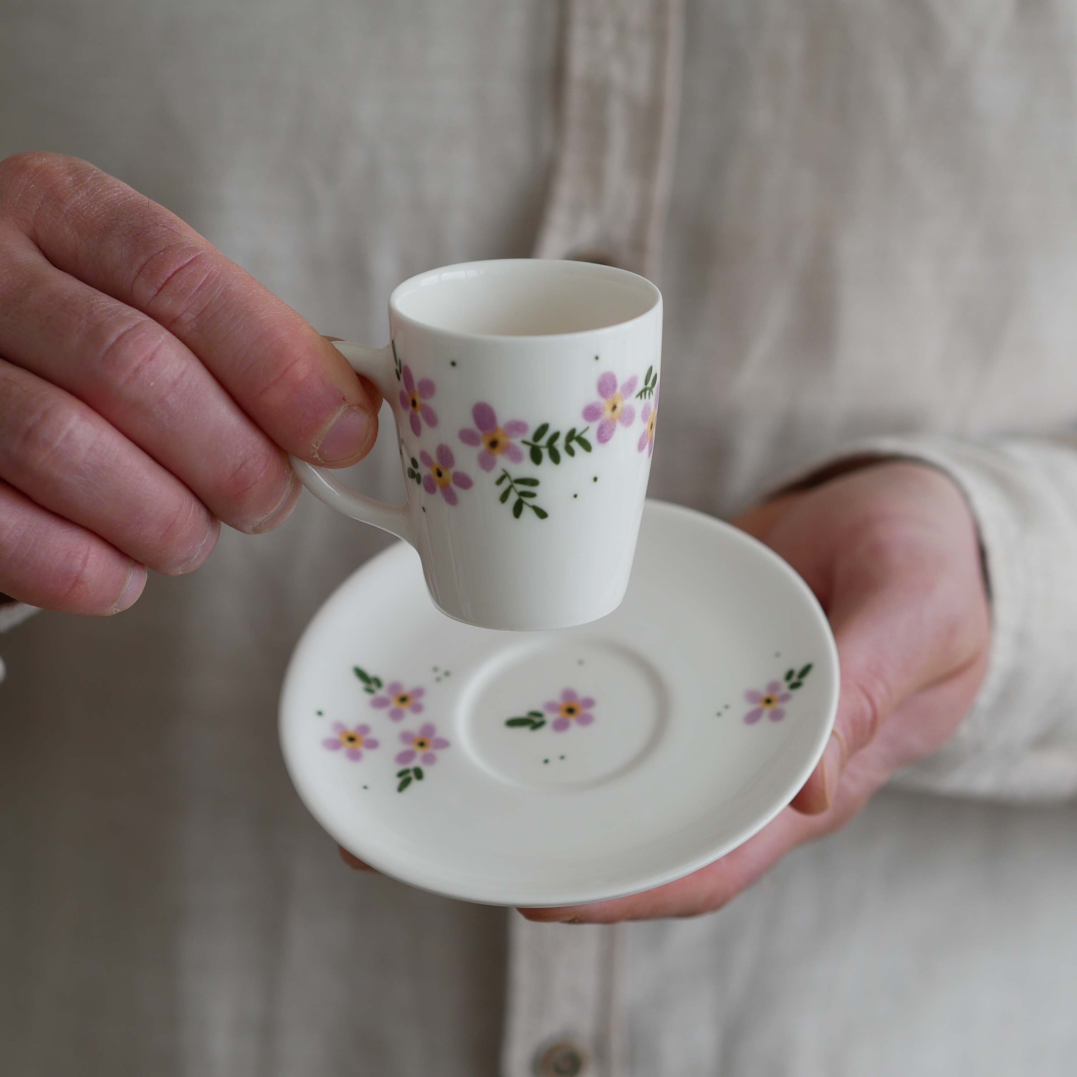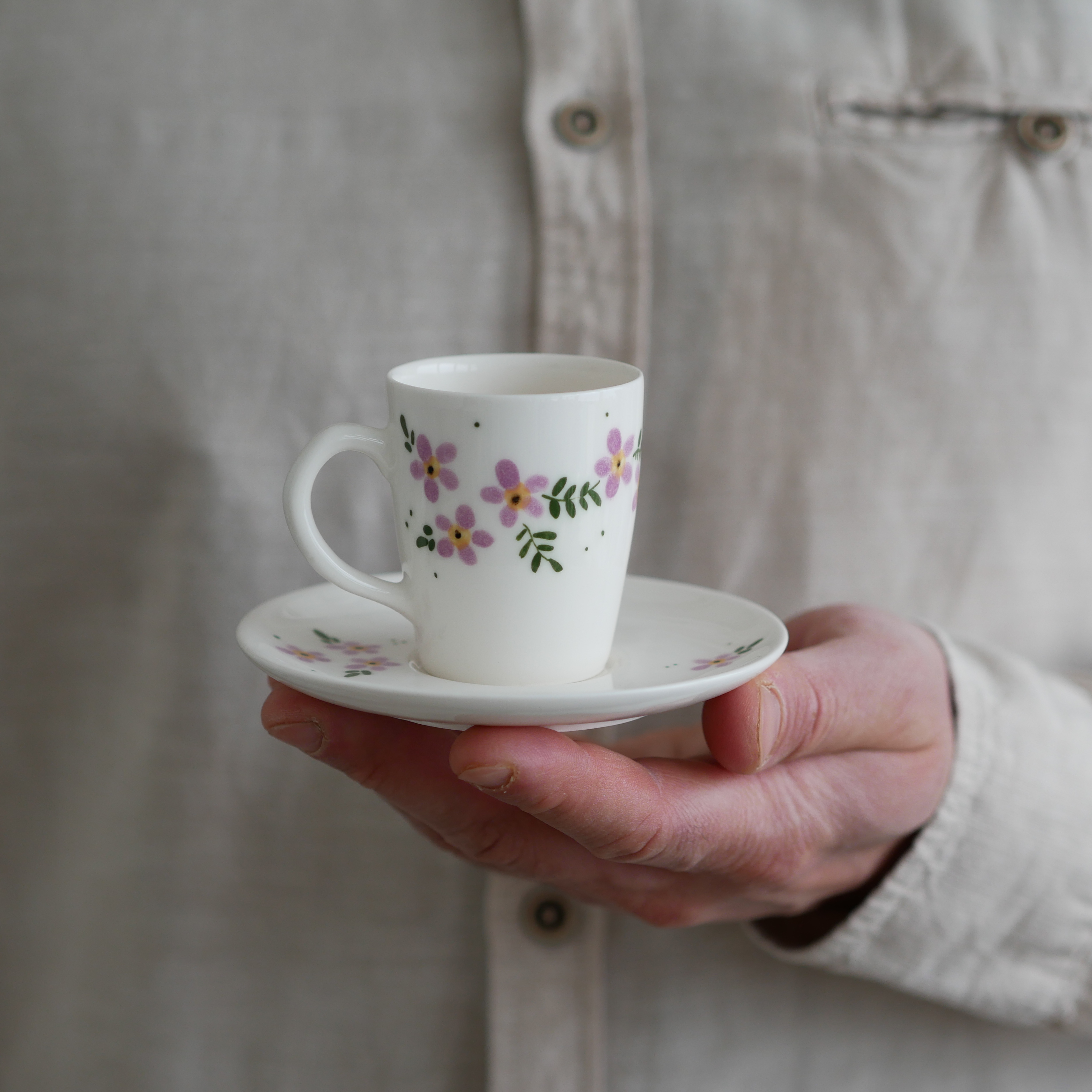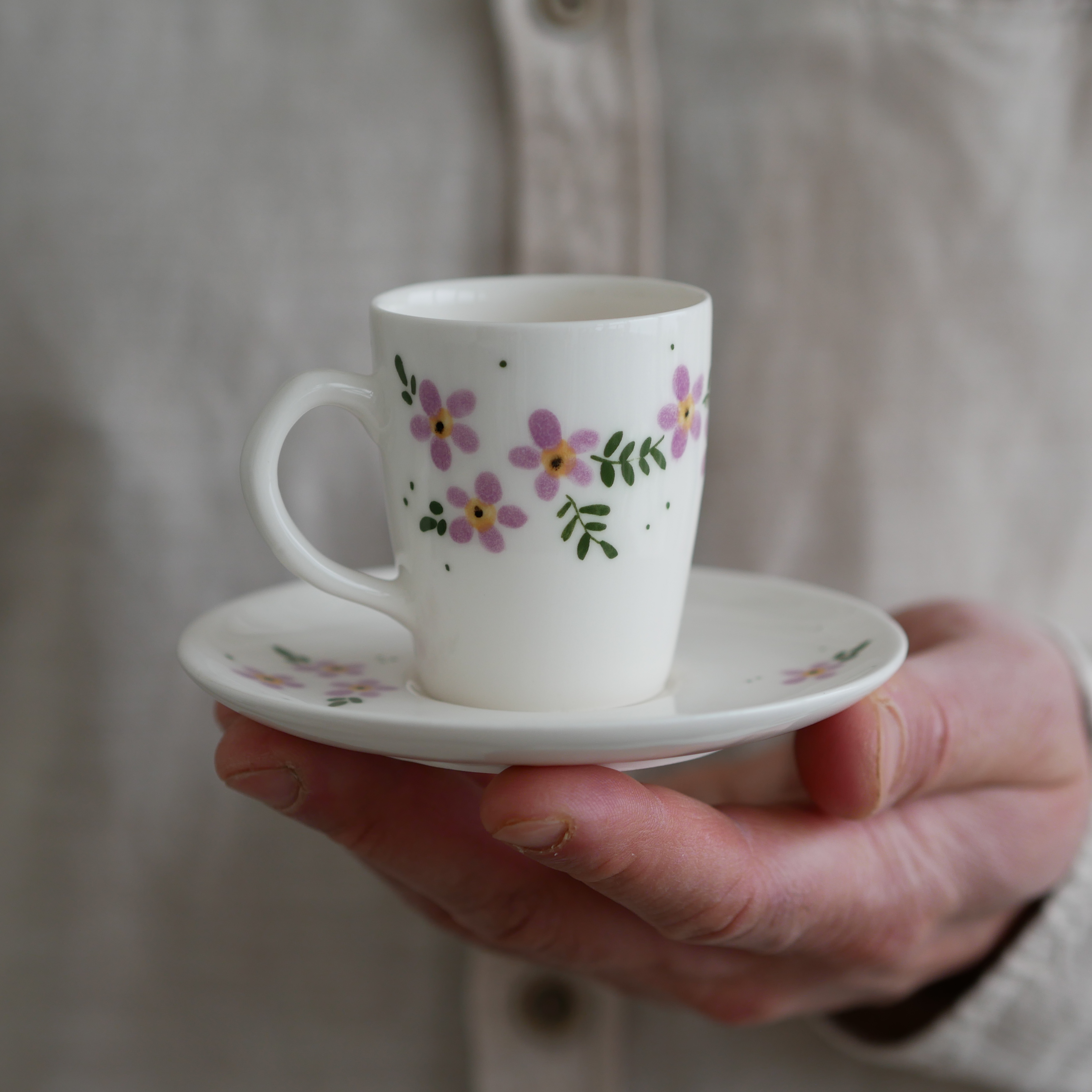 Filiżanka do espresso kwiaty wiejskie + talerzyk.
