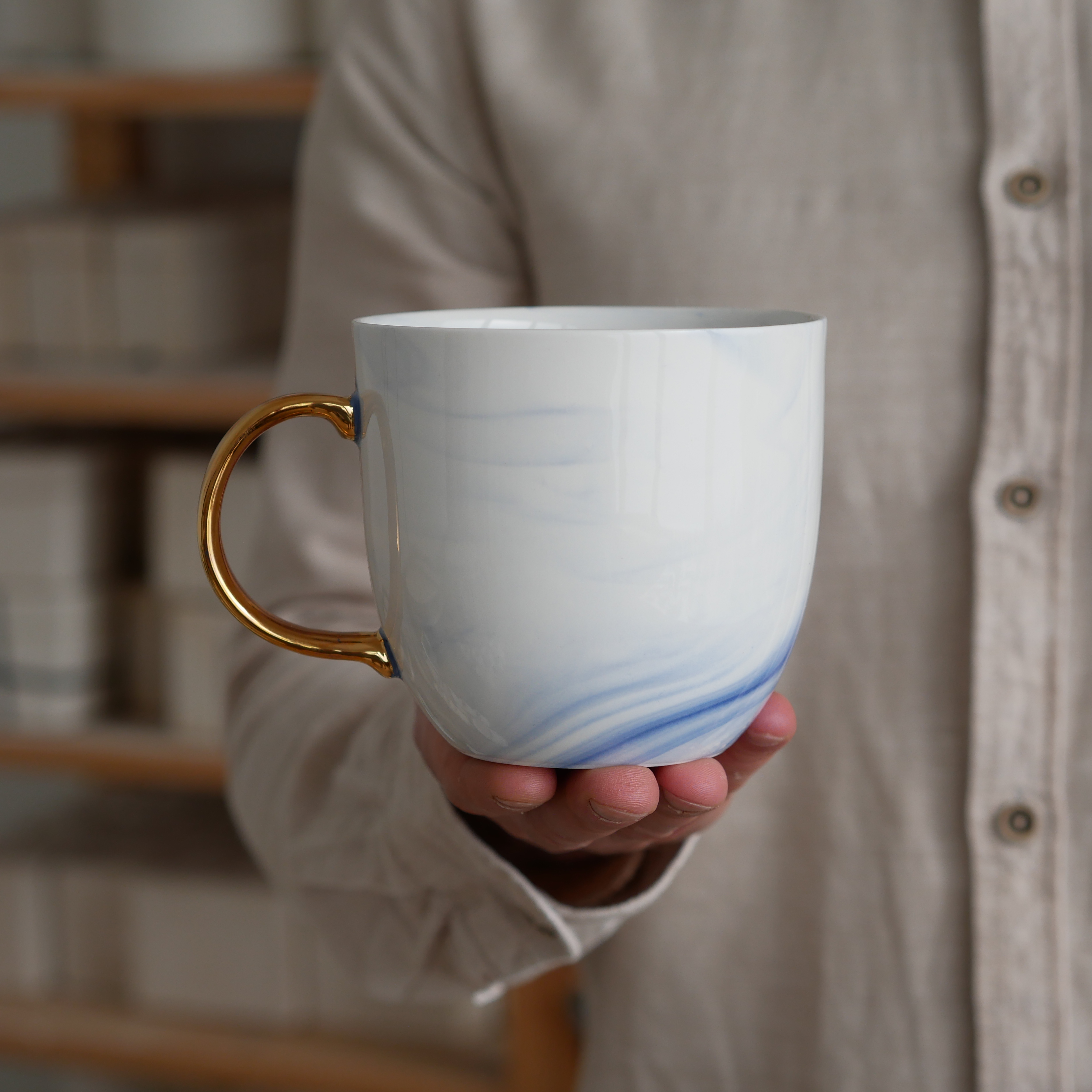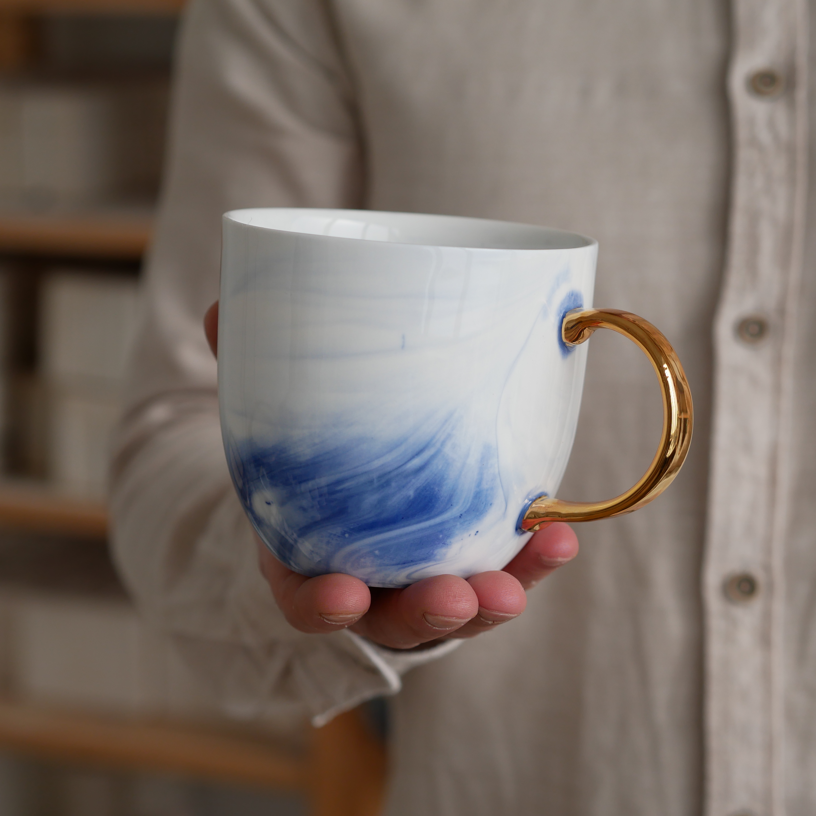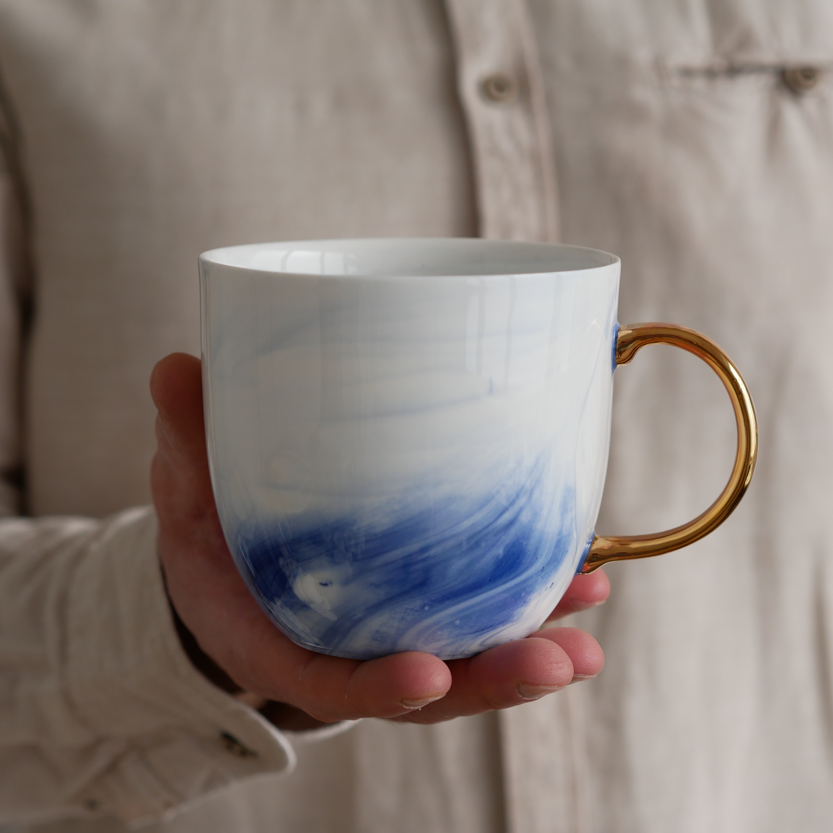 II GATUNEK Kubek 500ml INK kobaltowy ze złotym uszkiem