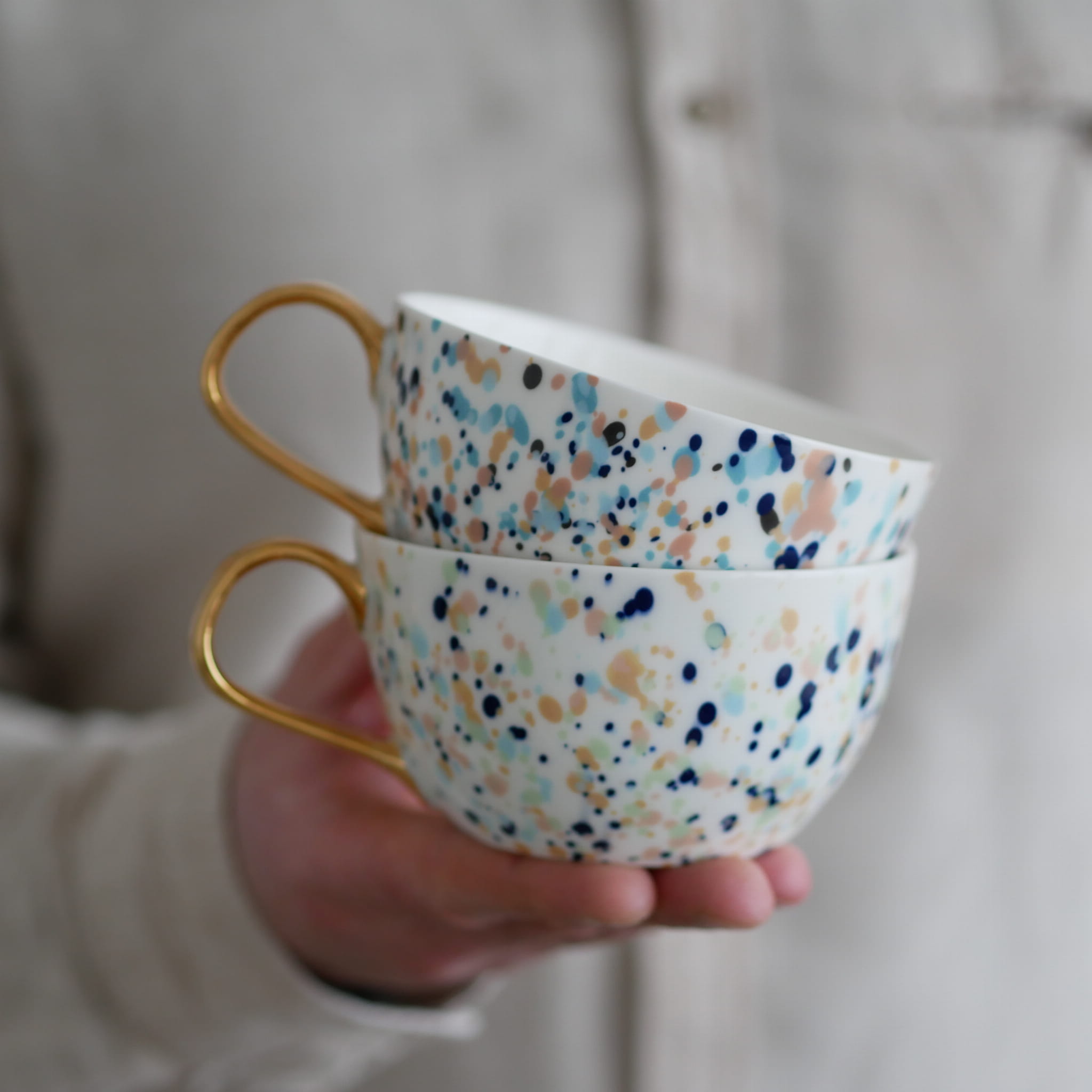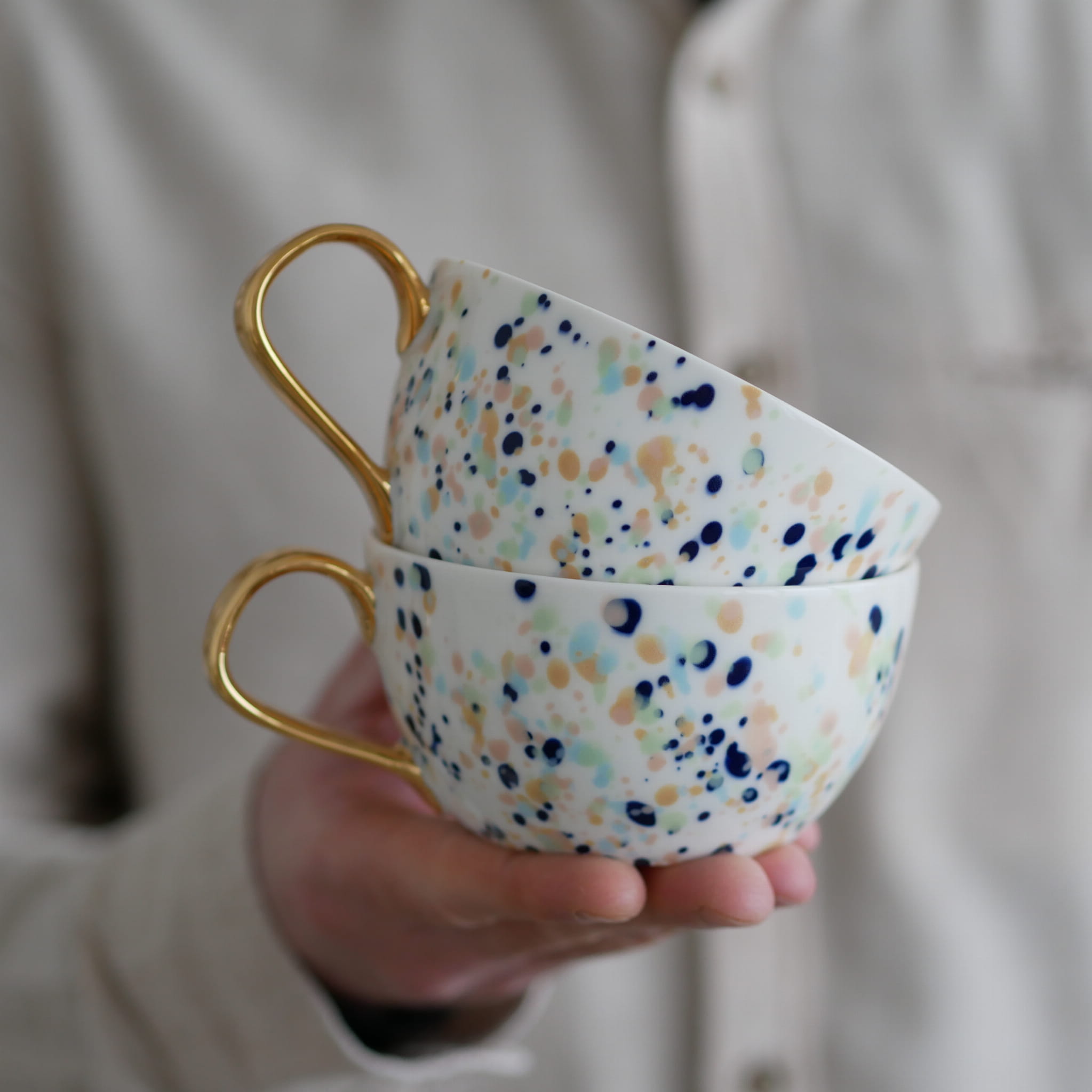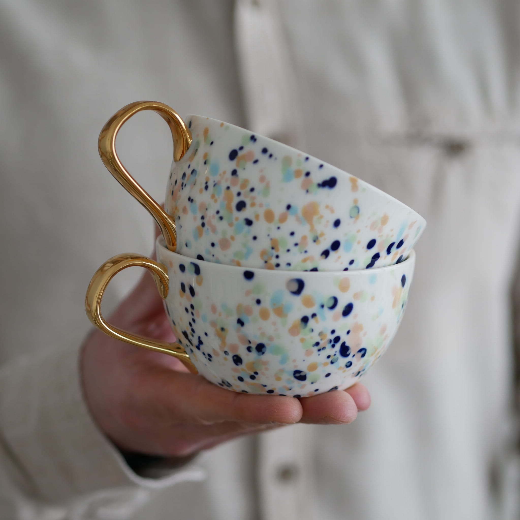 II GATUNEK filiżanka 300ml colorful ze złotym uszkiem