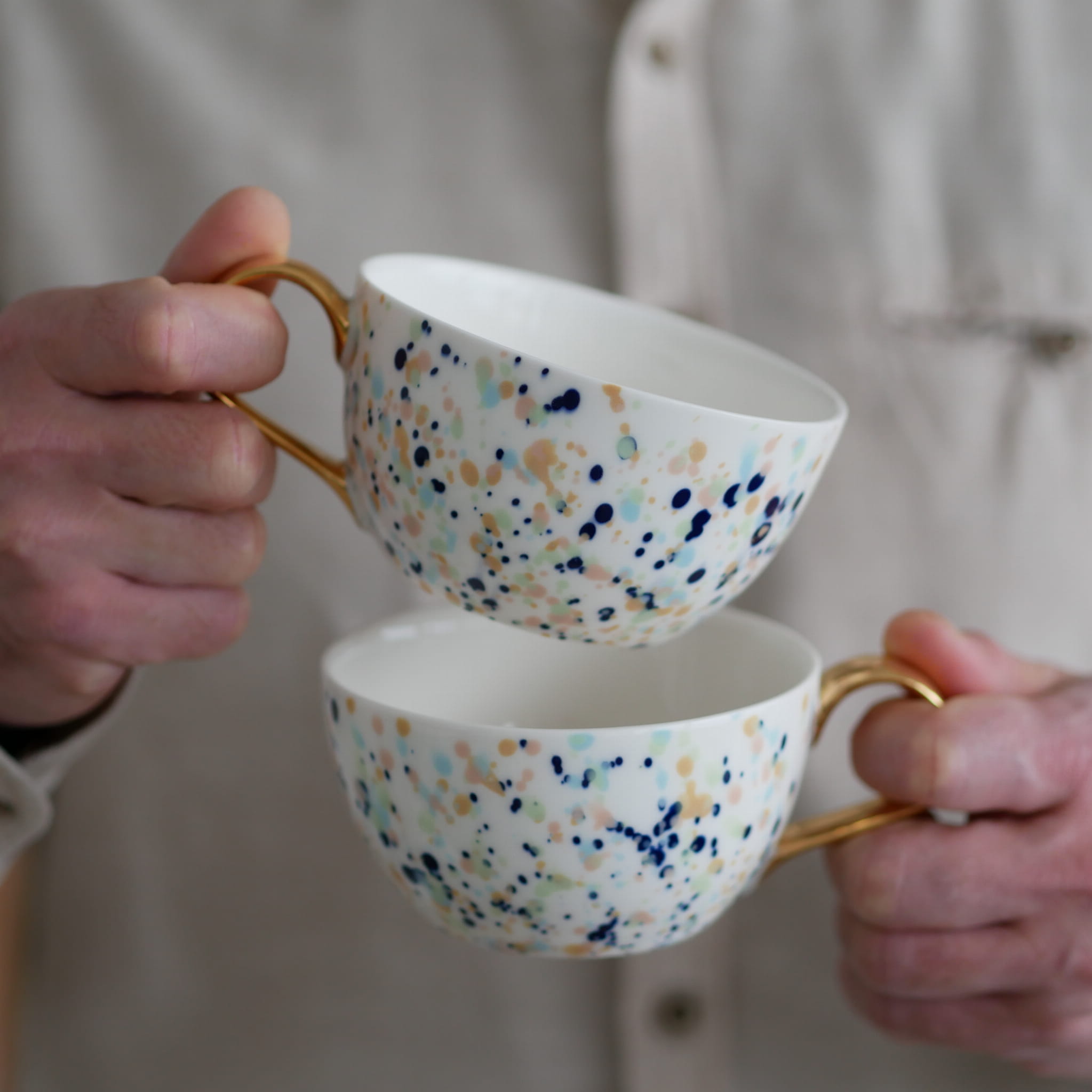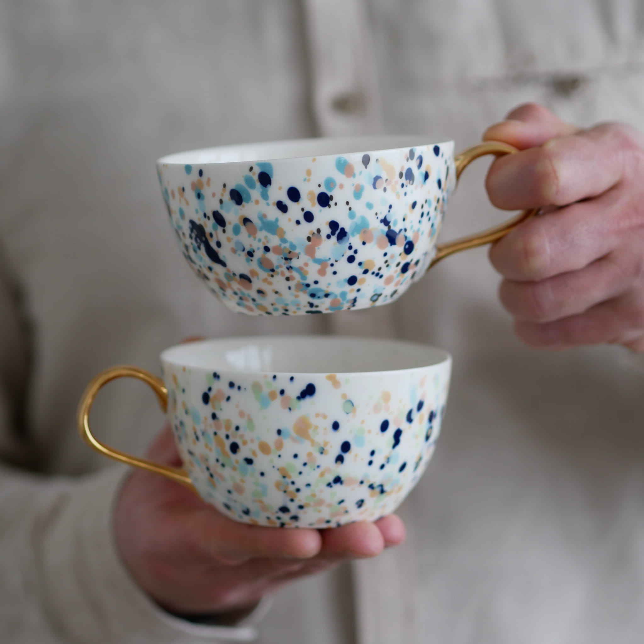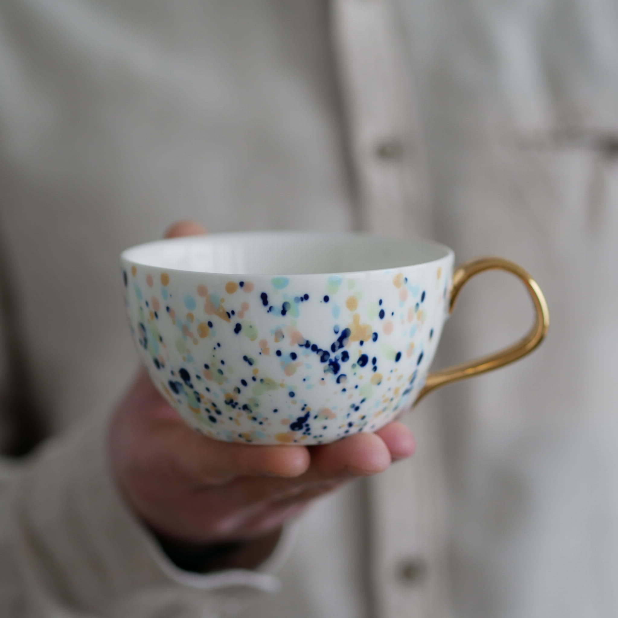 II GATUNEK filiżanka 300ml colorful ze złotym uszkiem