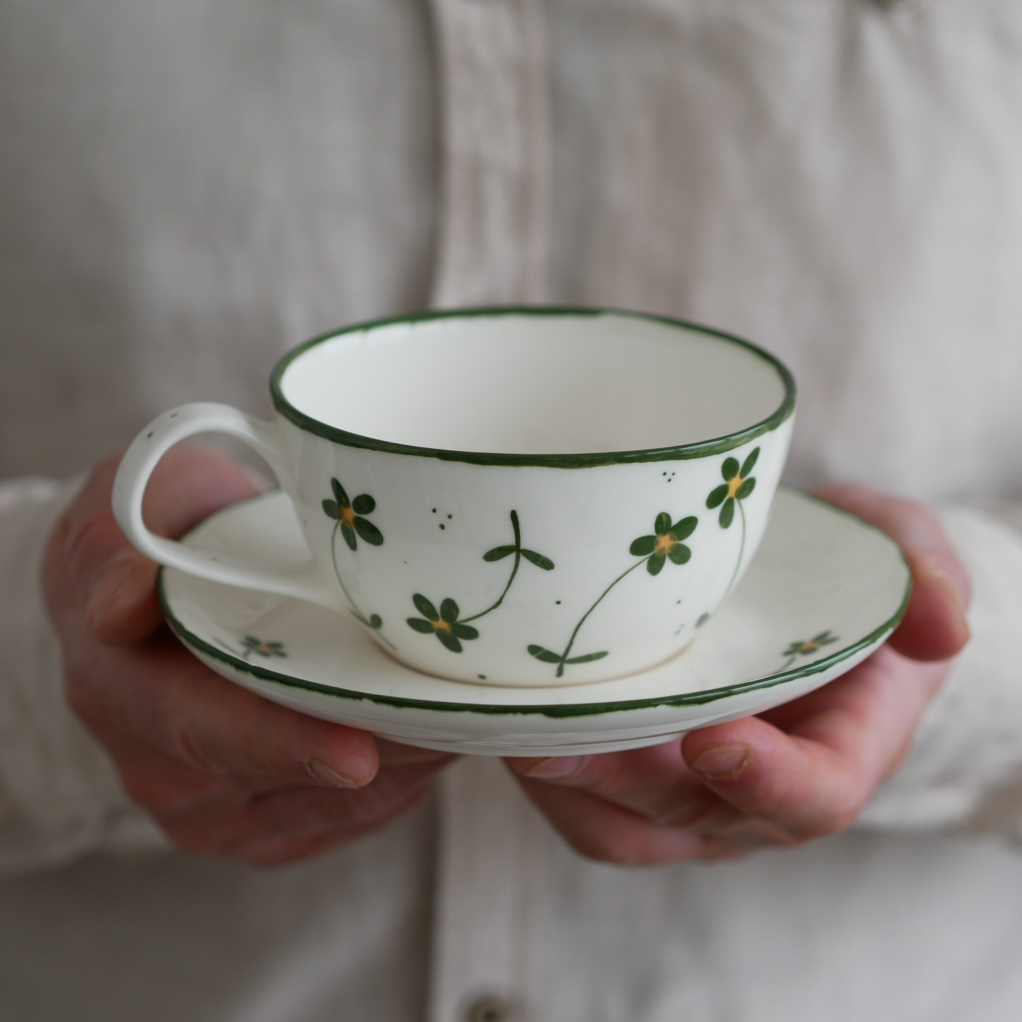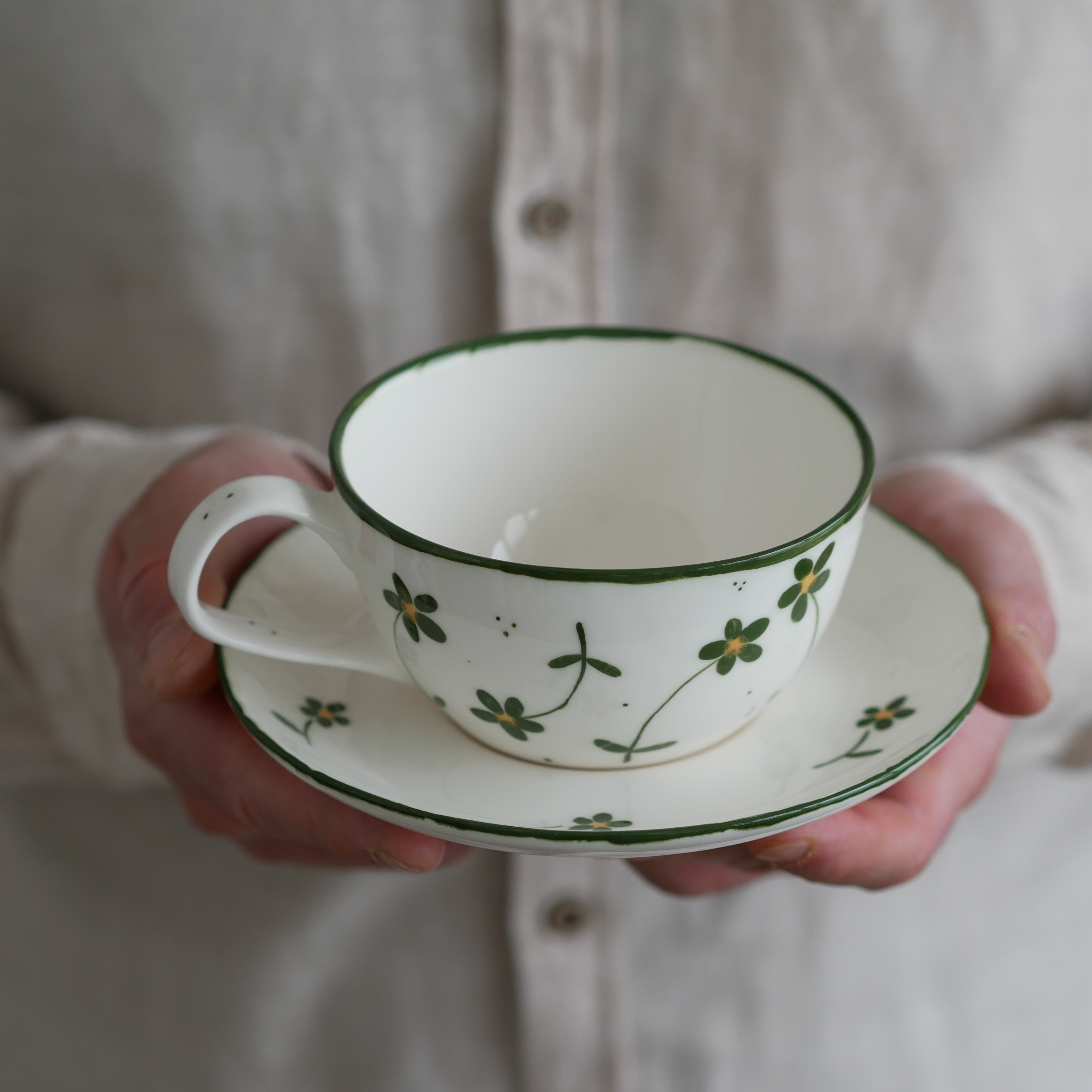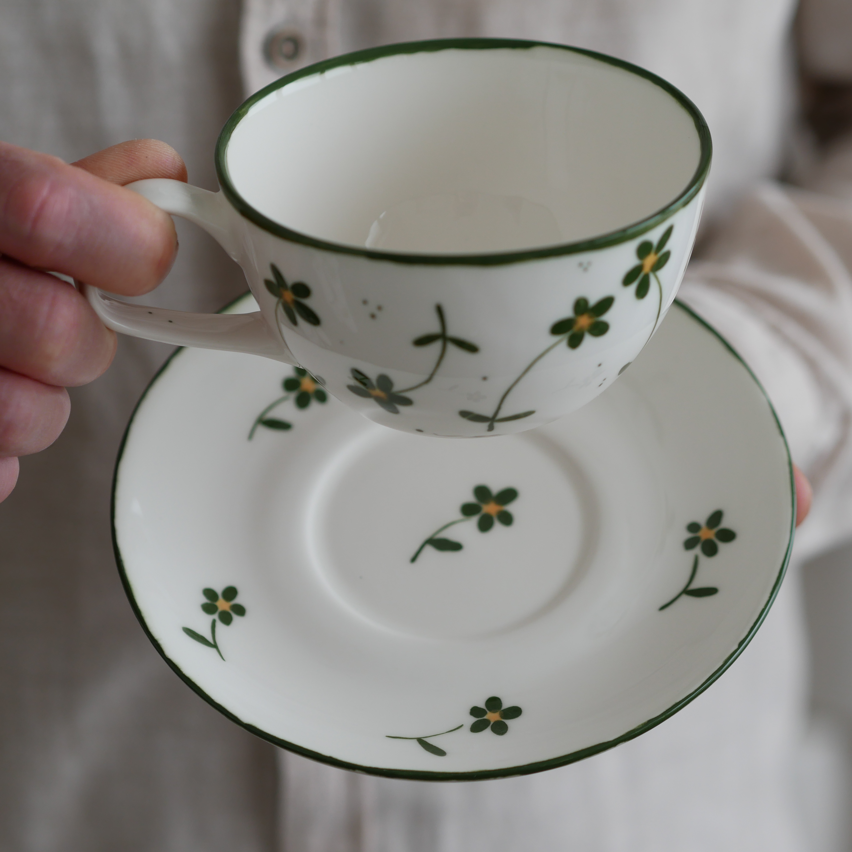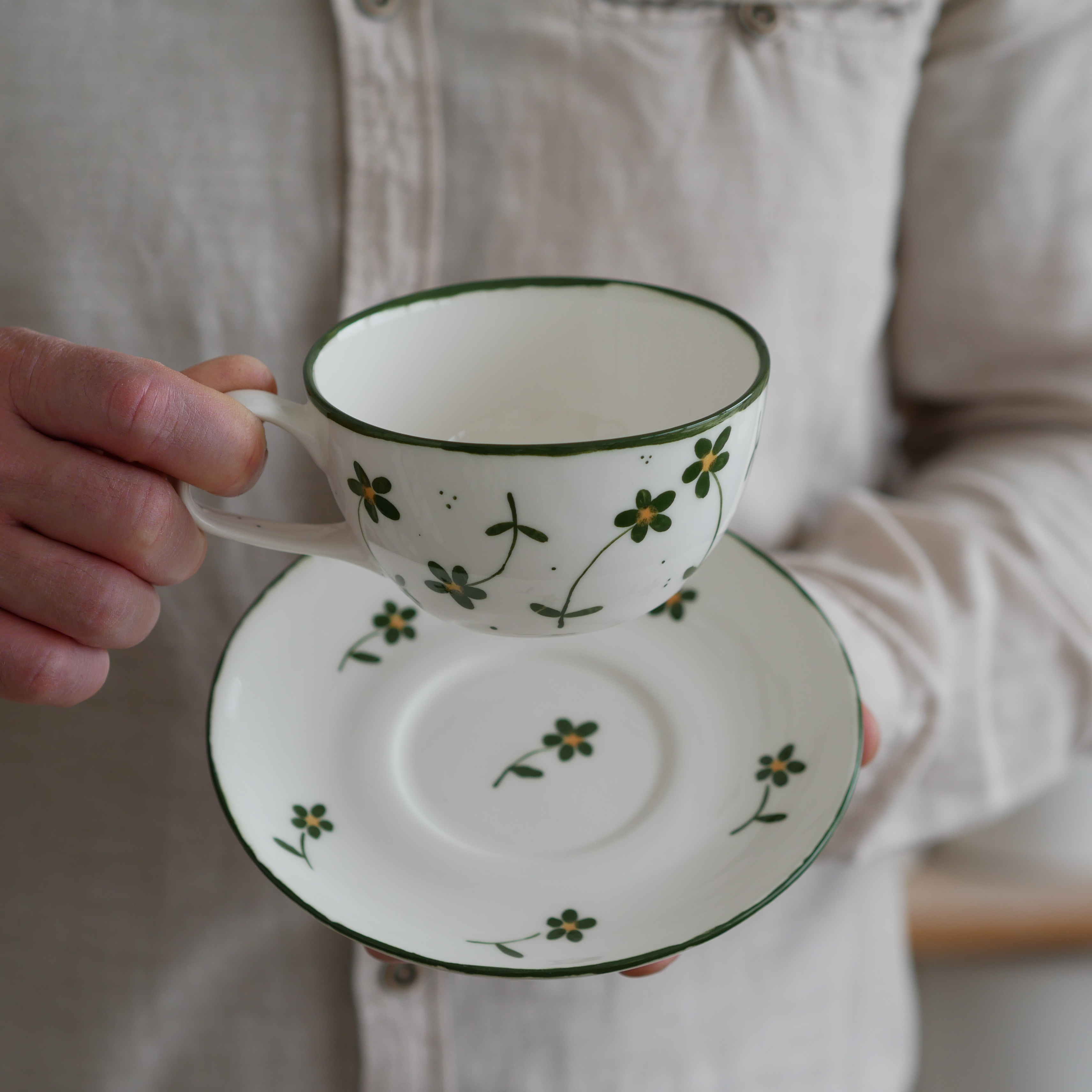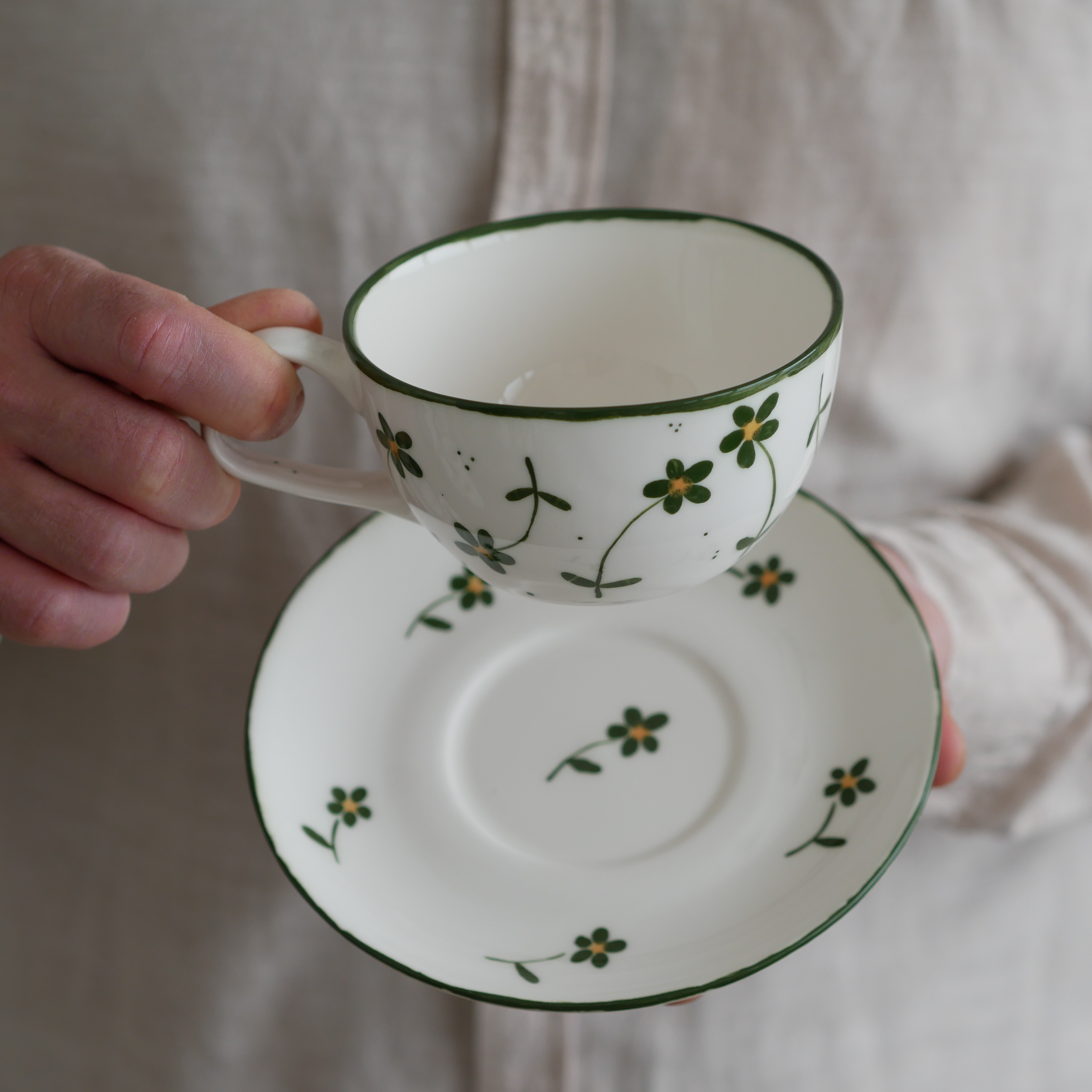 II GATUNEK filiżanka 300ml kwiaty wiejskie zielone + talerzyk 15cm