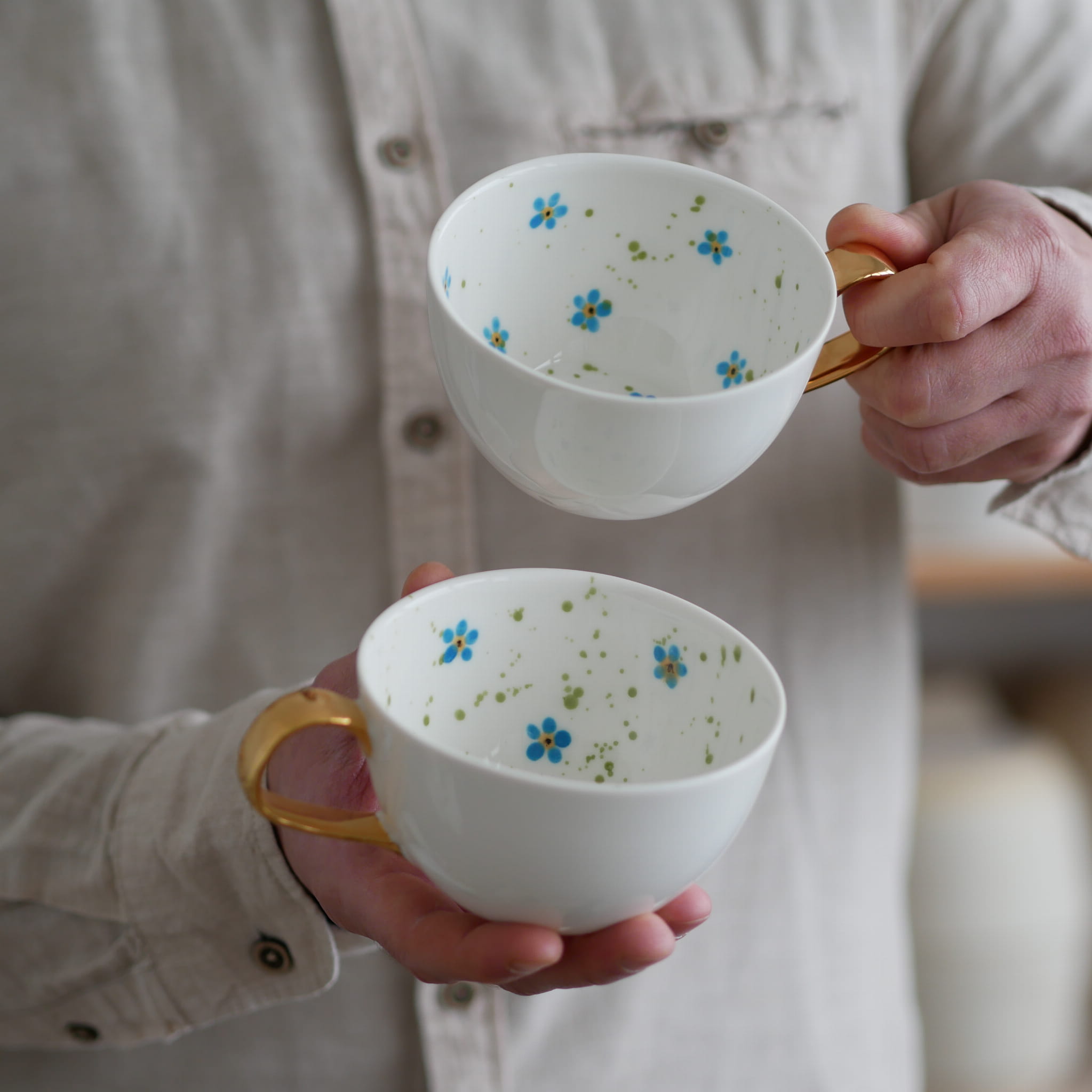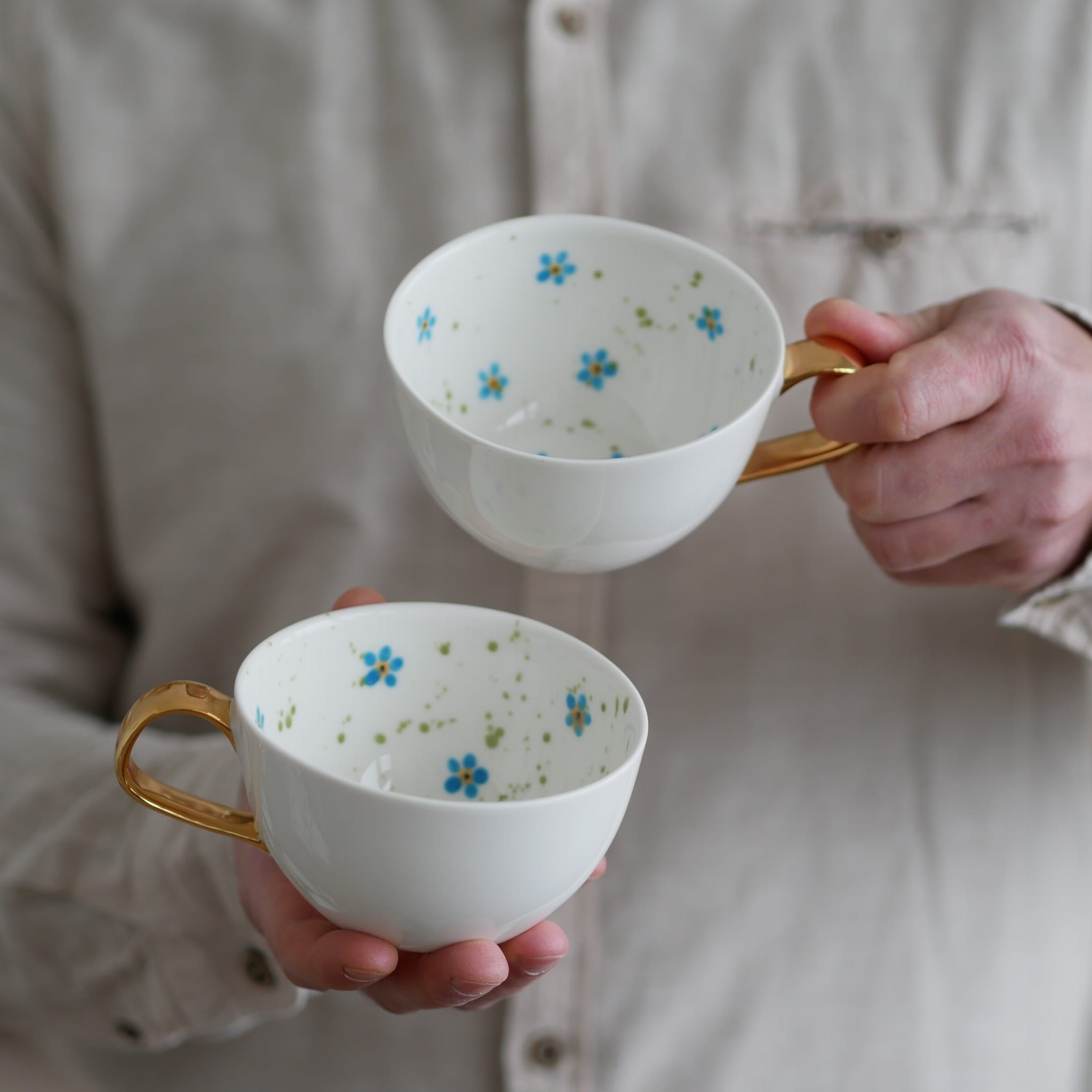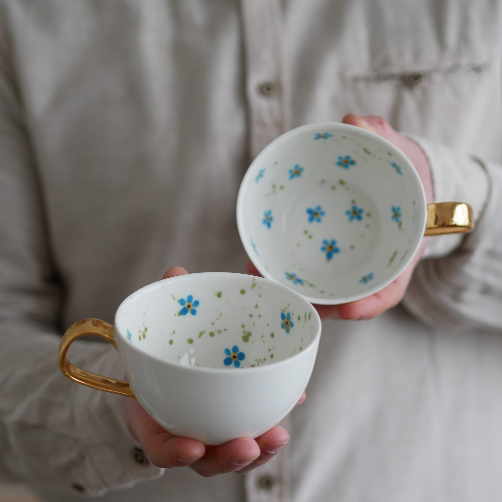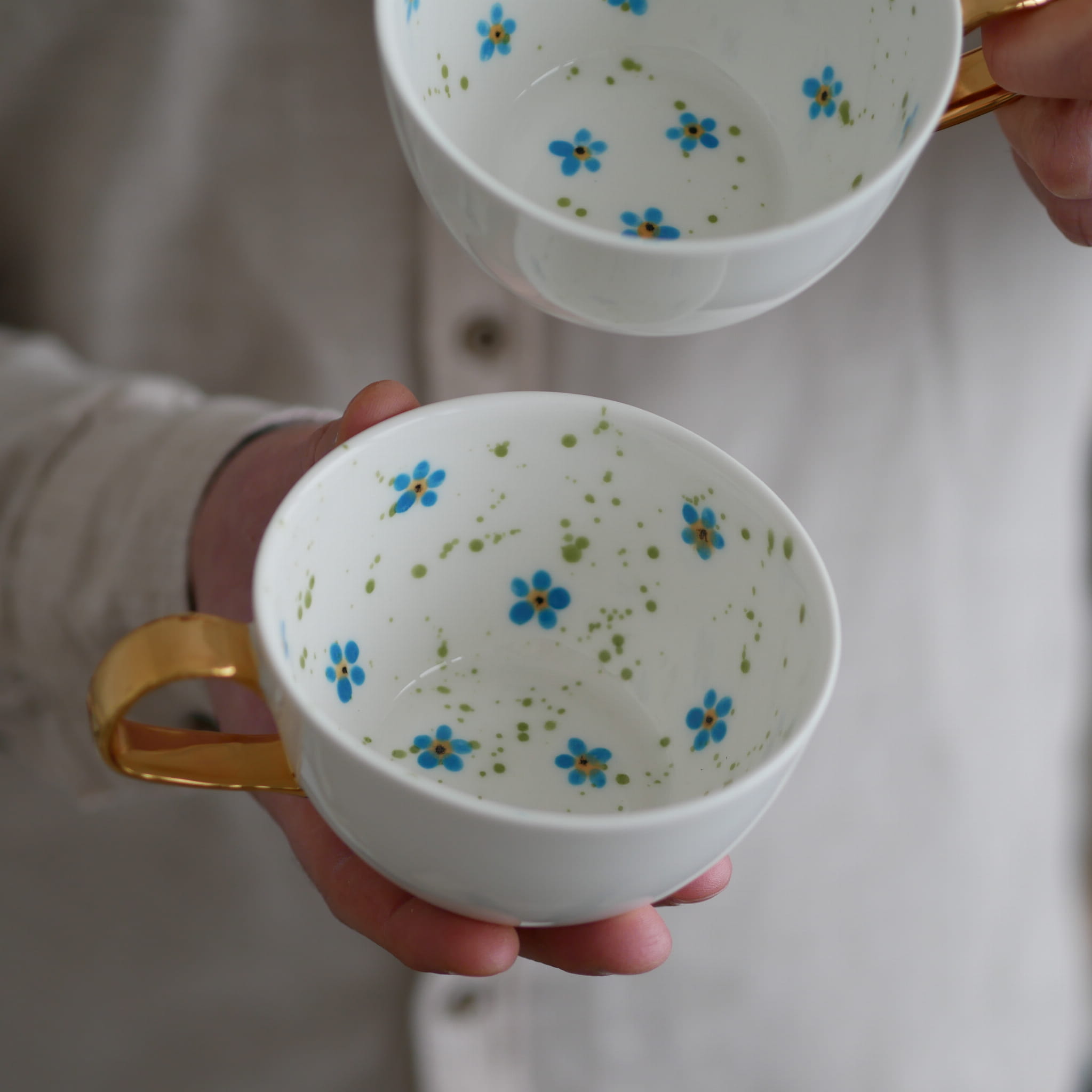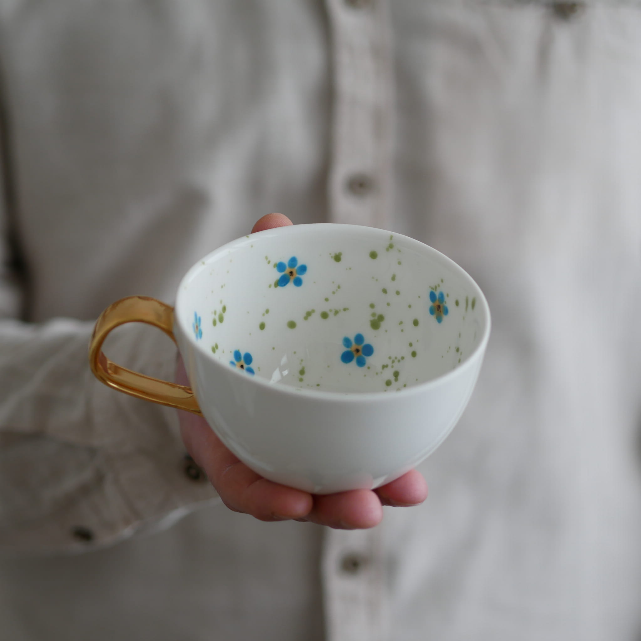 II GATUNEK filiżanka 300ml niezapominajki (wewnatrz) ze złotym uszkiem