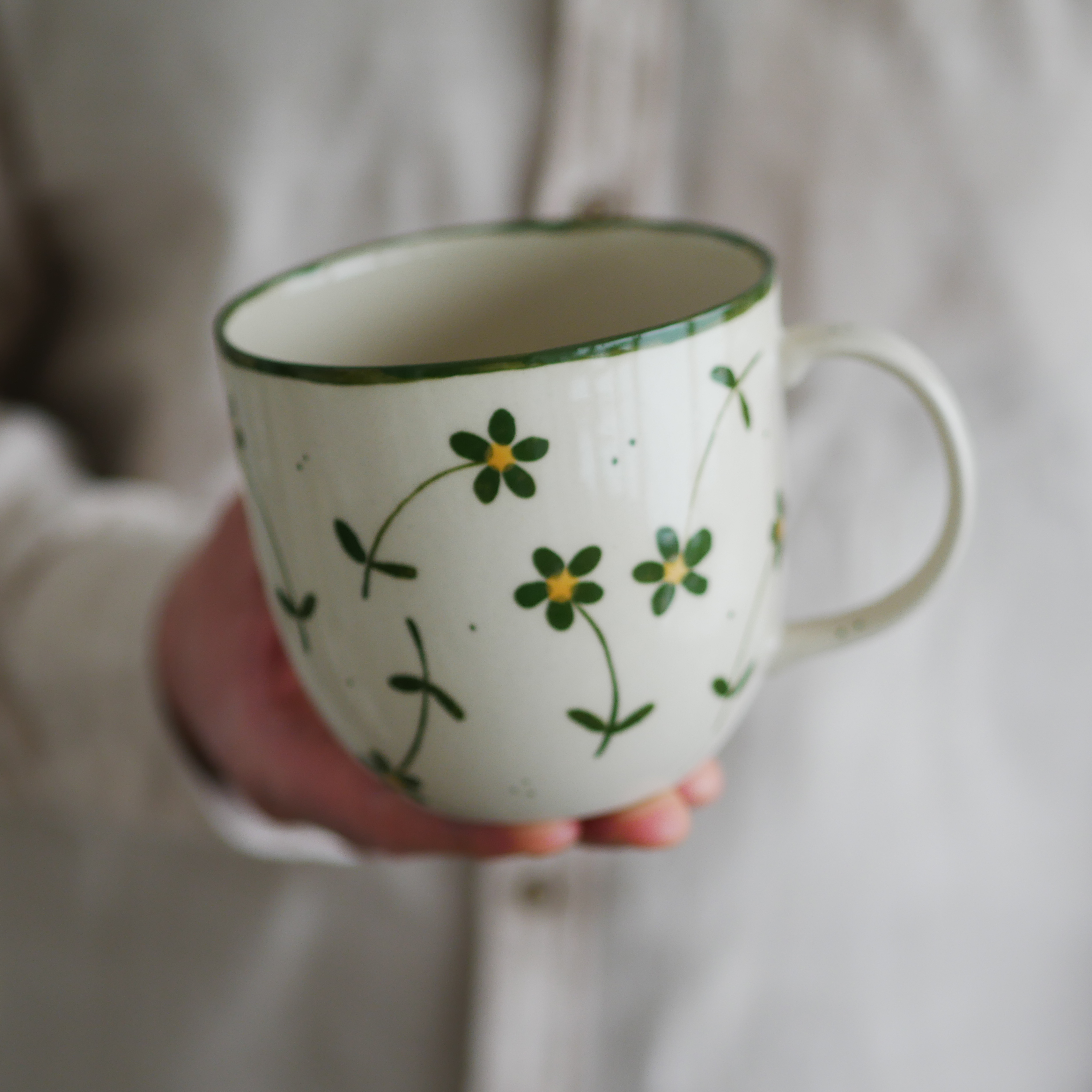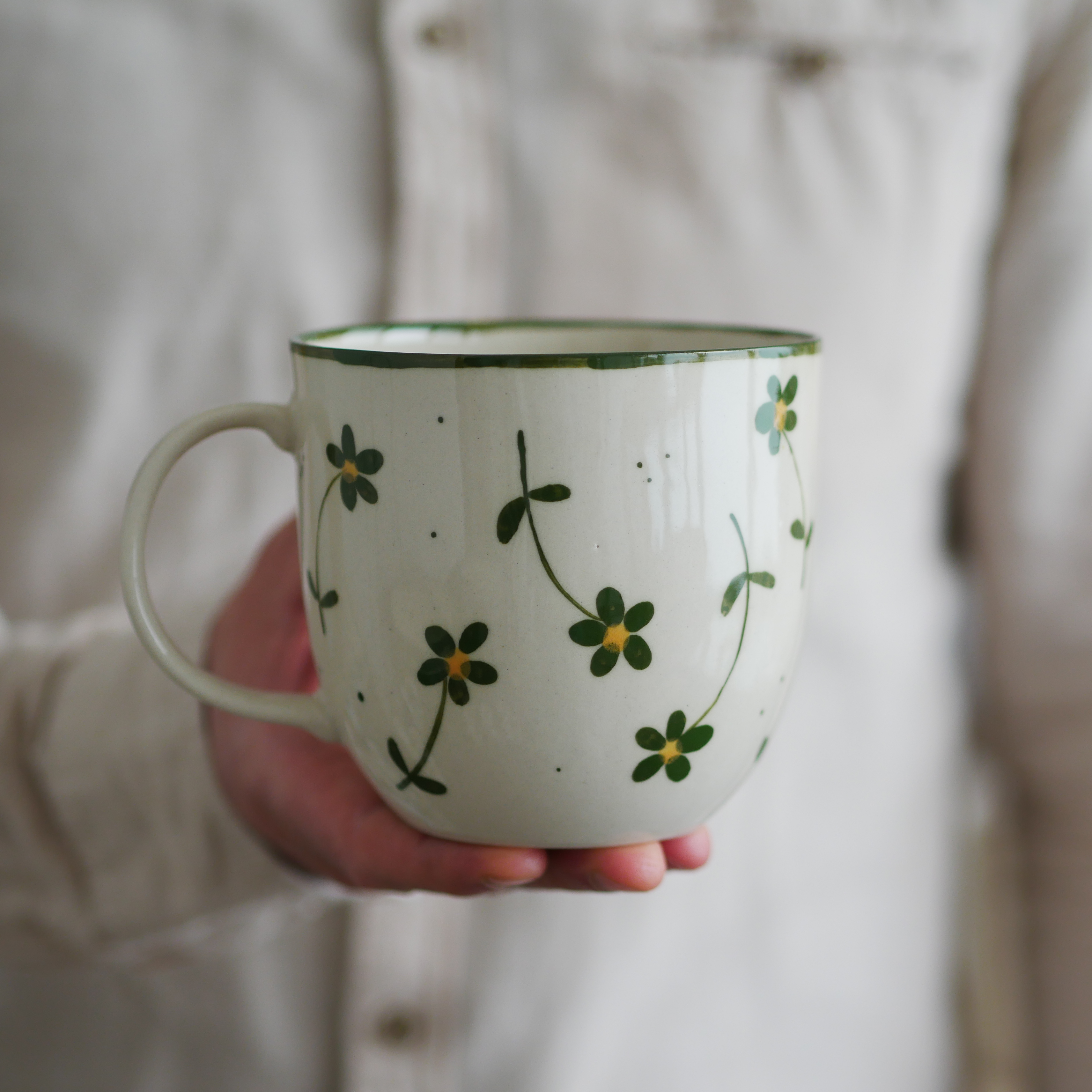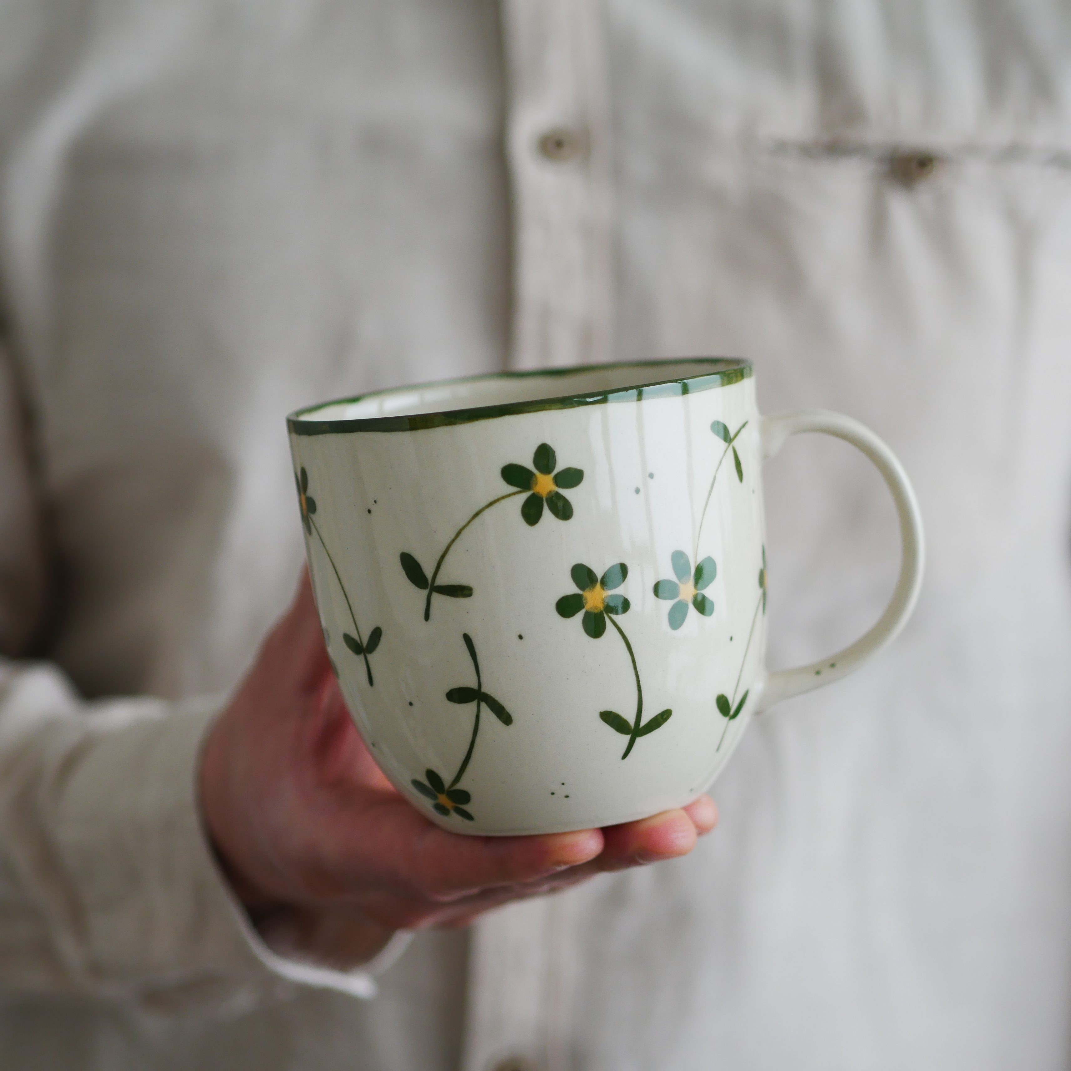 II GATUNEK kubek 500ml beżowy w zielone kwiaty wiejskie