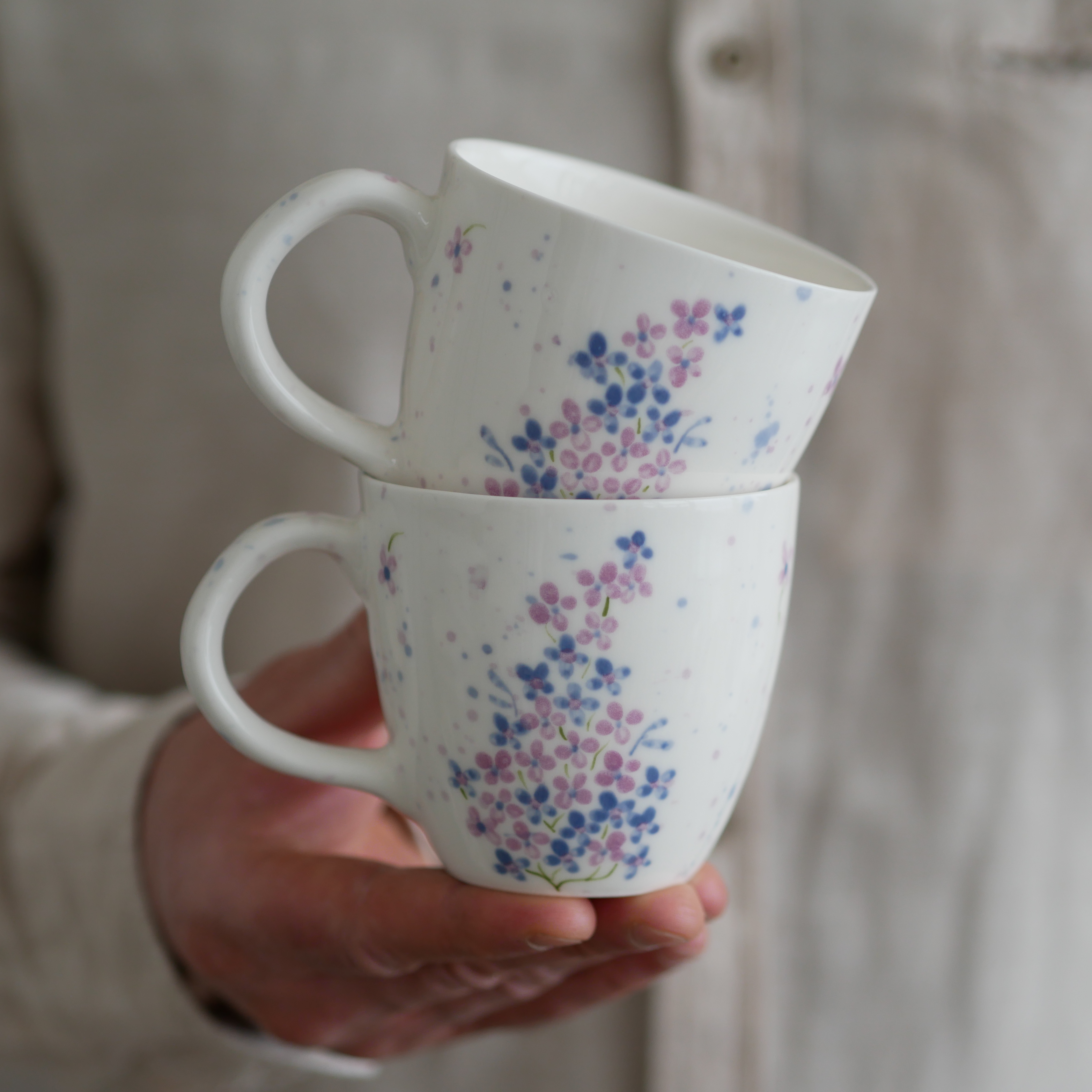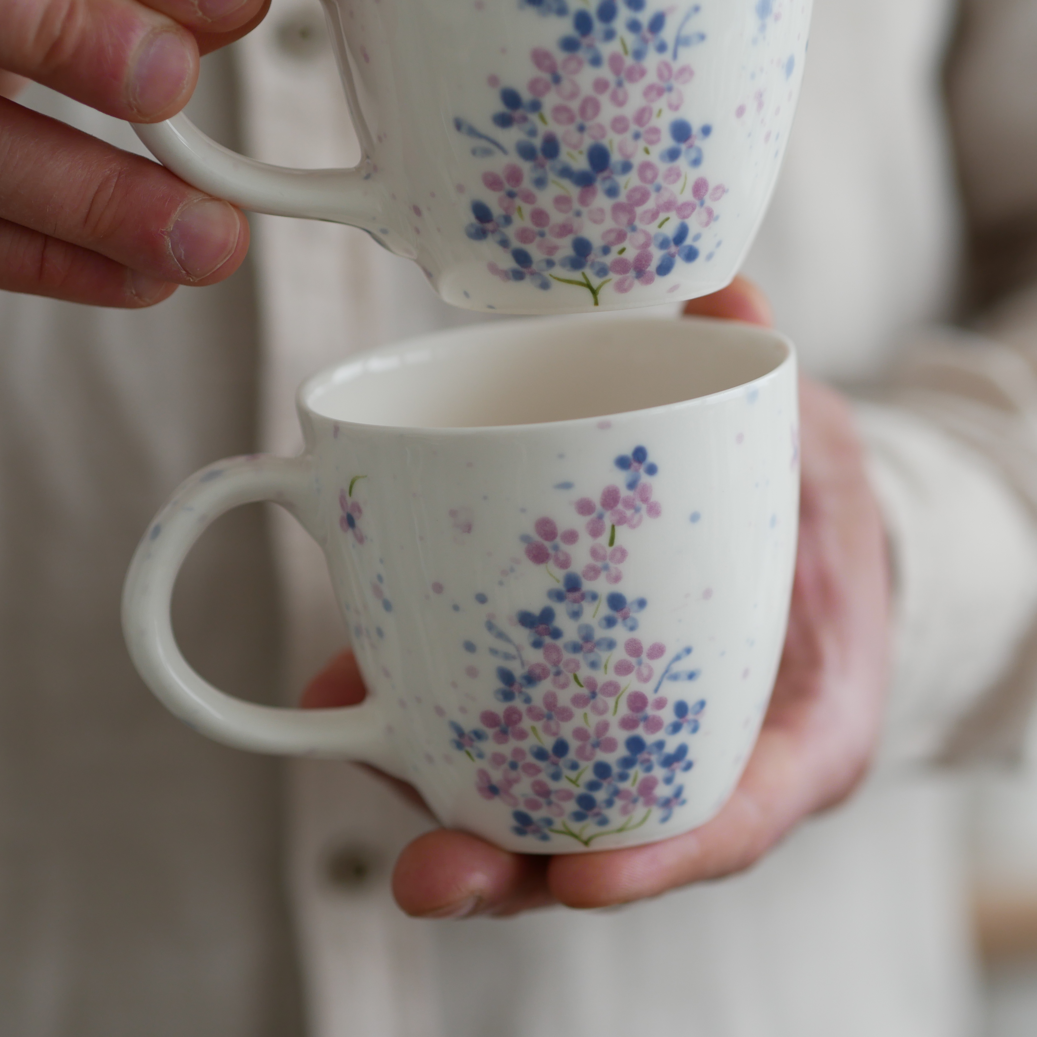 Kwiaty maluję ręcznie, dlatego na każdym kubku wzór będzie wyglądać inaczej - zdjęcie poglądowe.