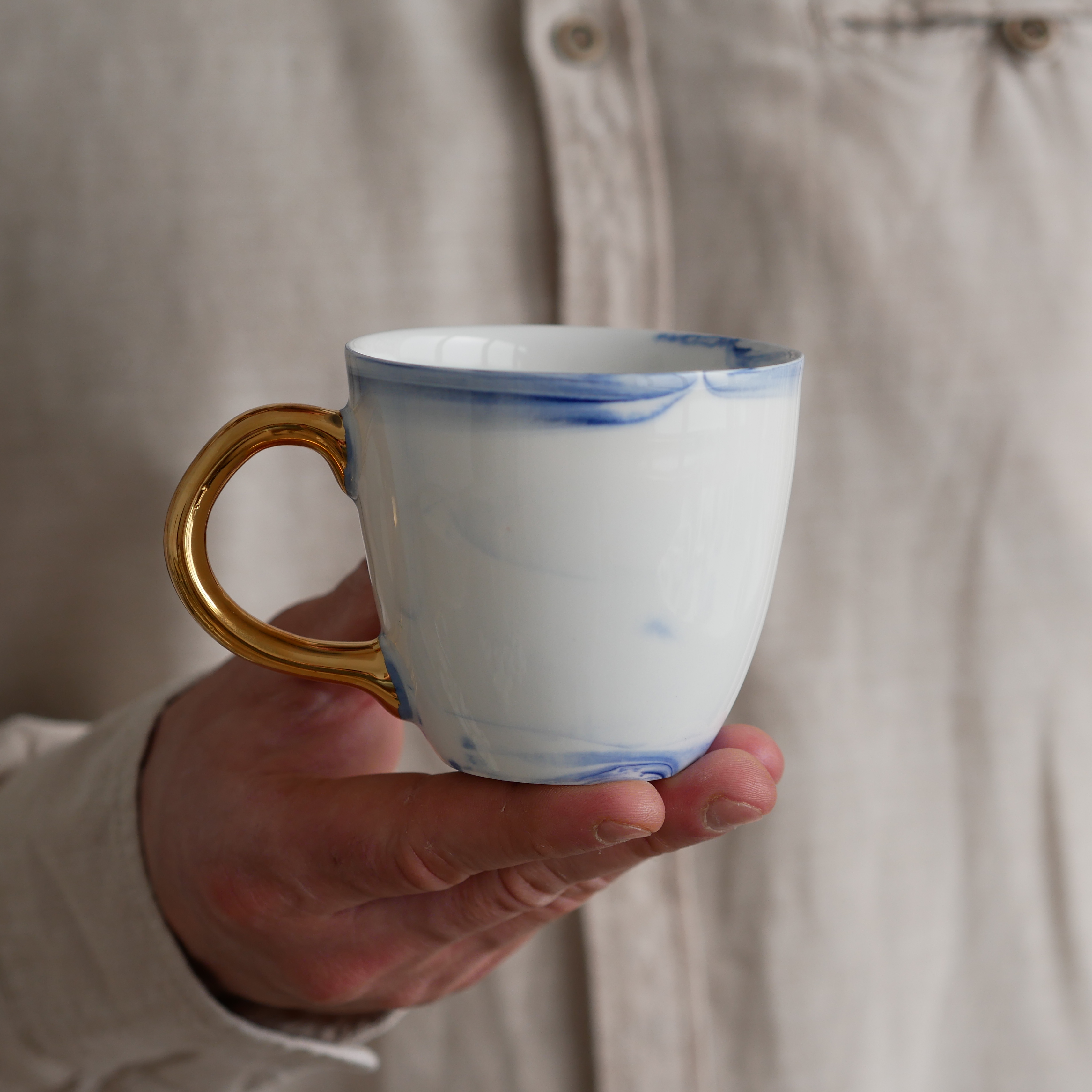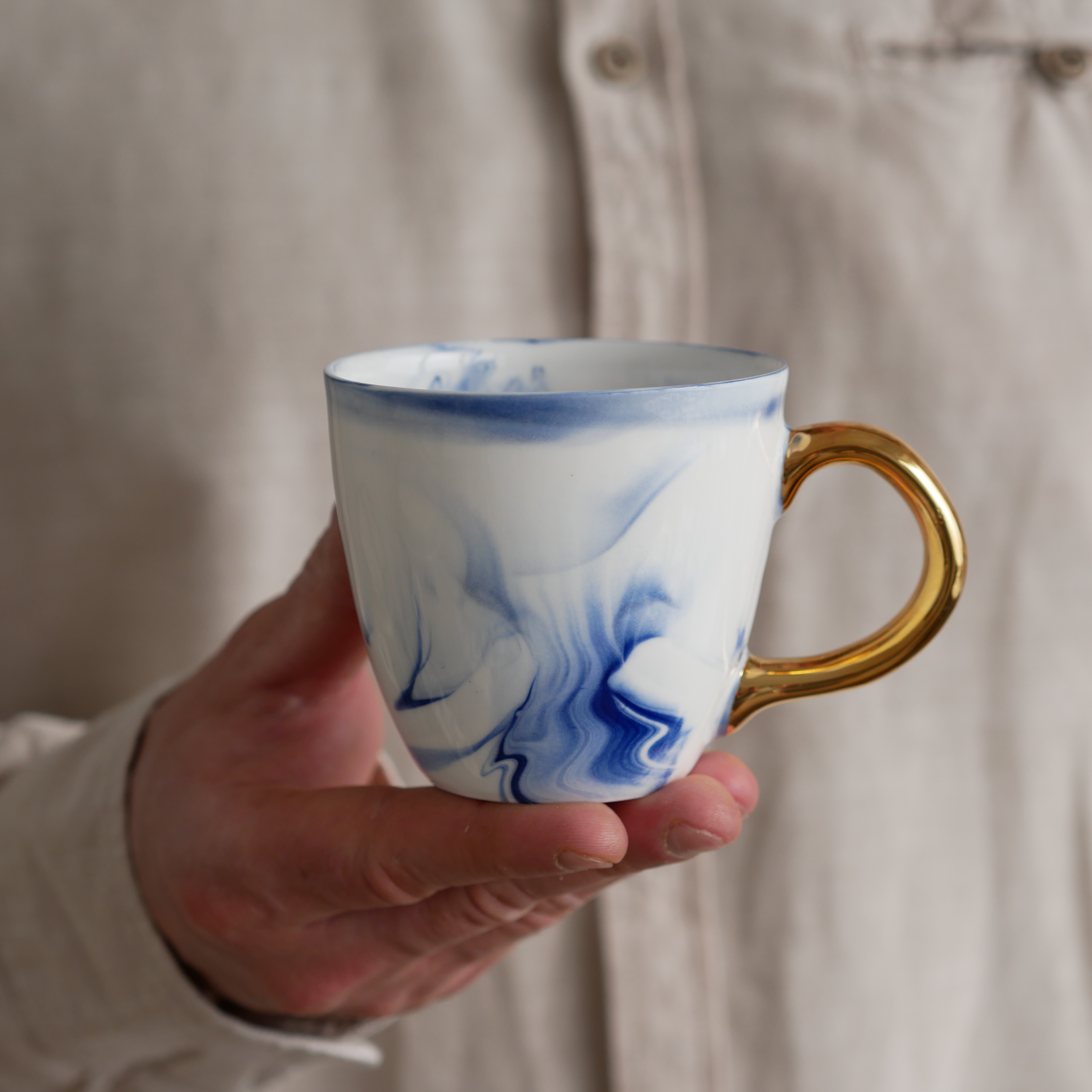 Kubek 220ml INK kobaltowy ze złotym uszkiem