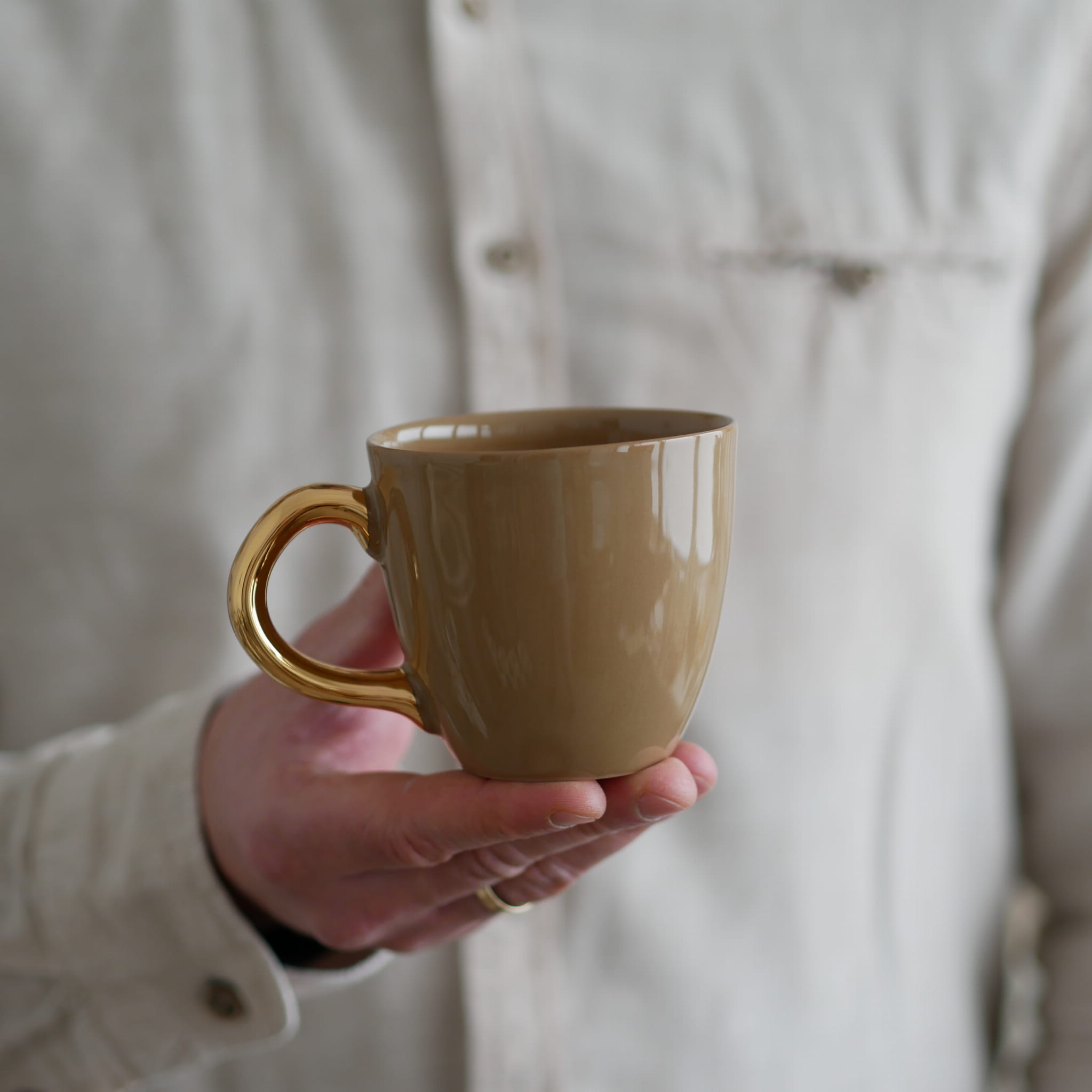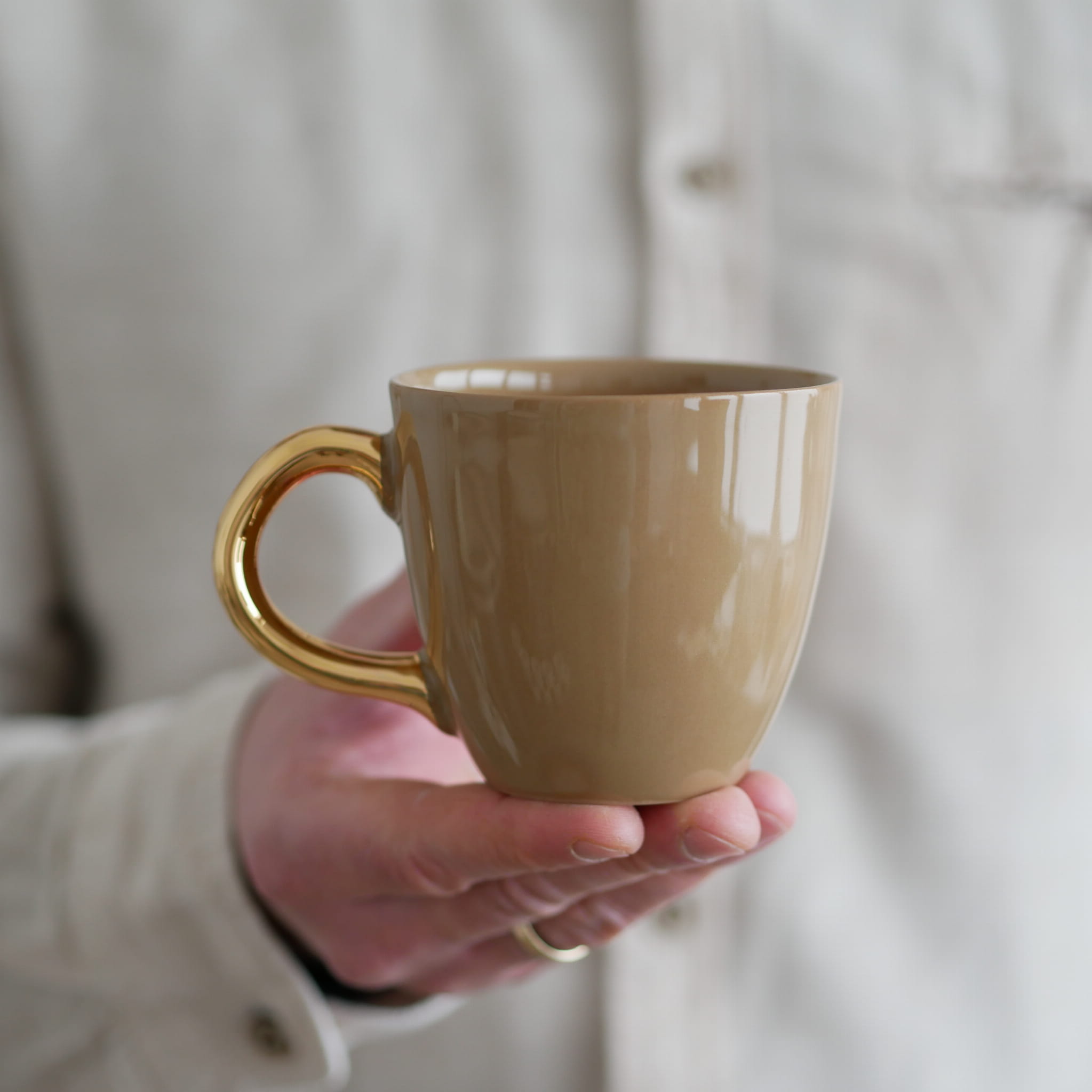 Kubek 220ml brązowy ze złotym uszkiem classic