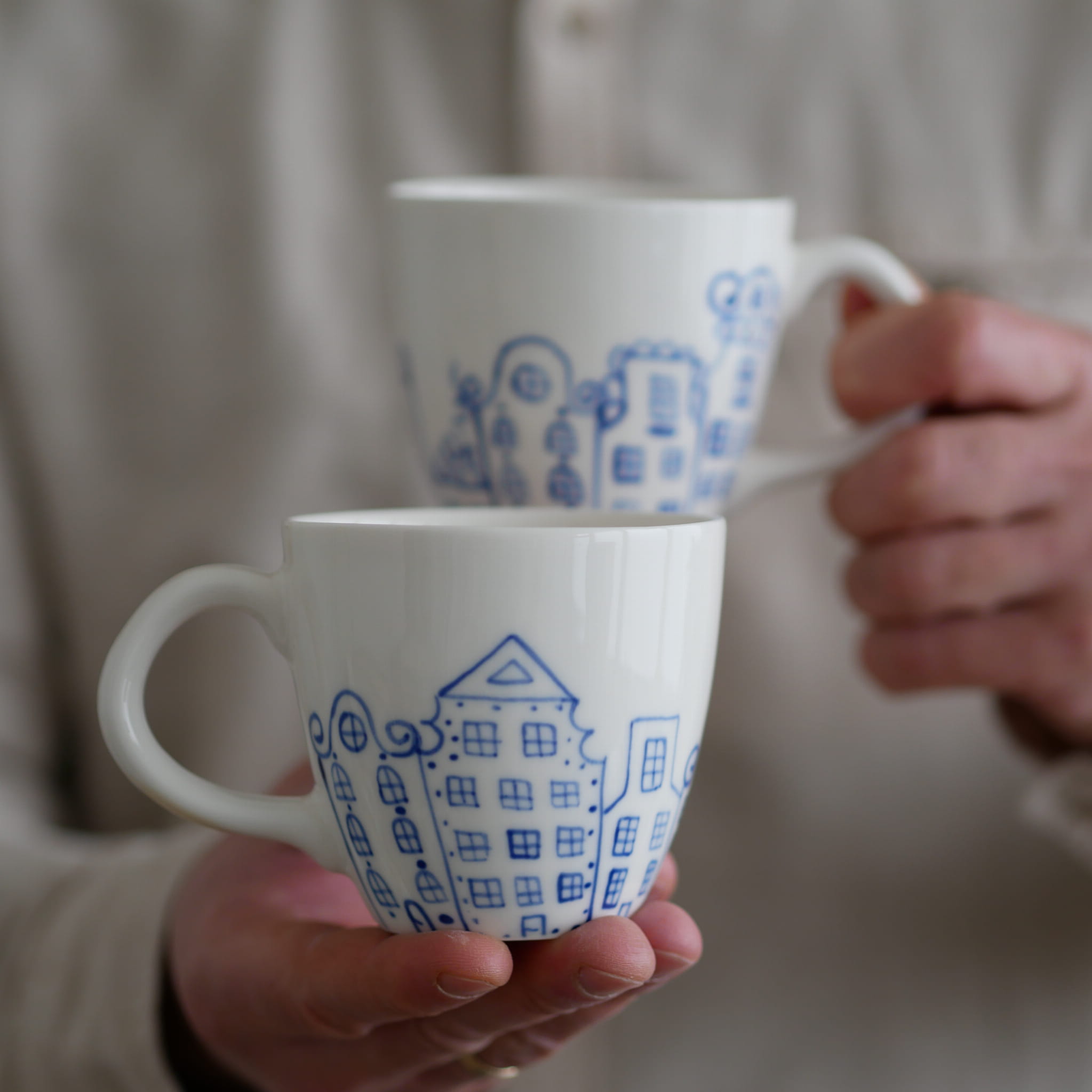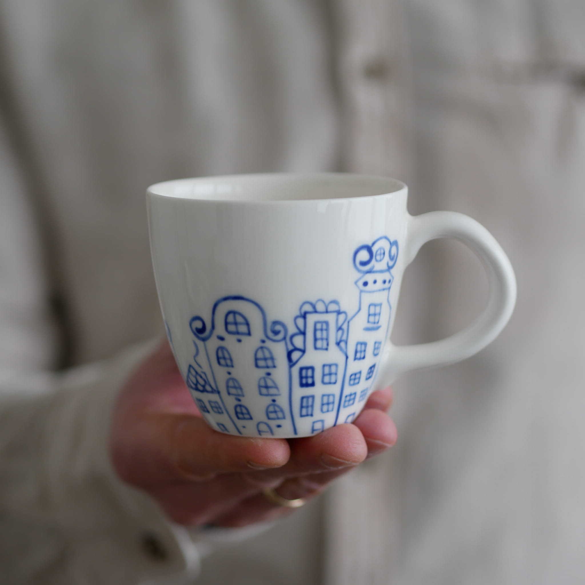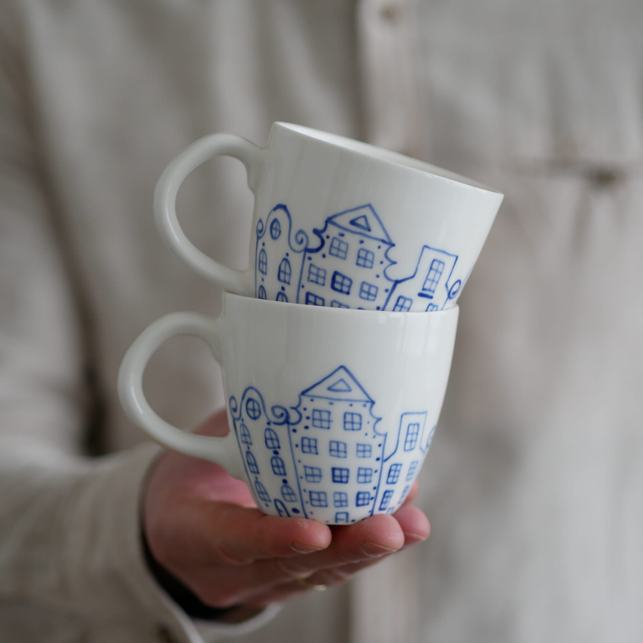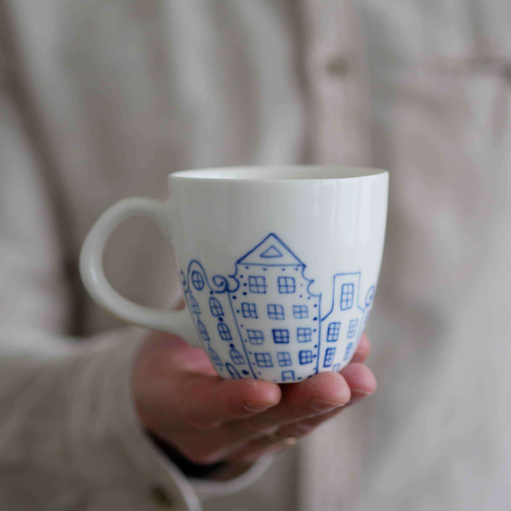 Kubek w kobaltowe kamienice.