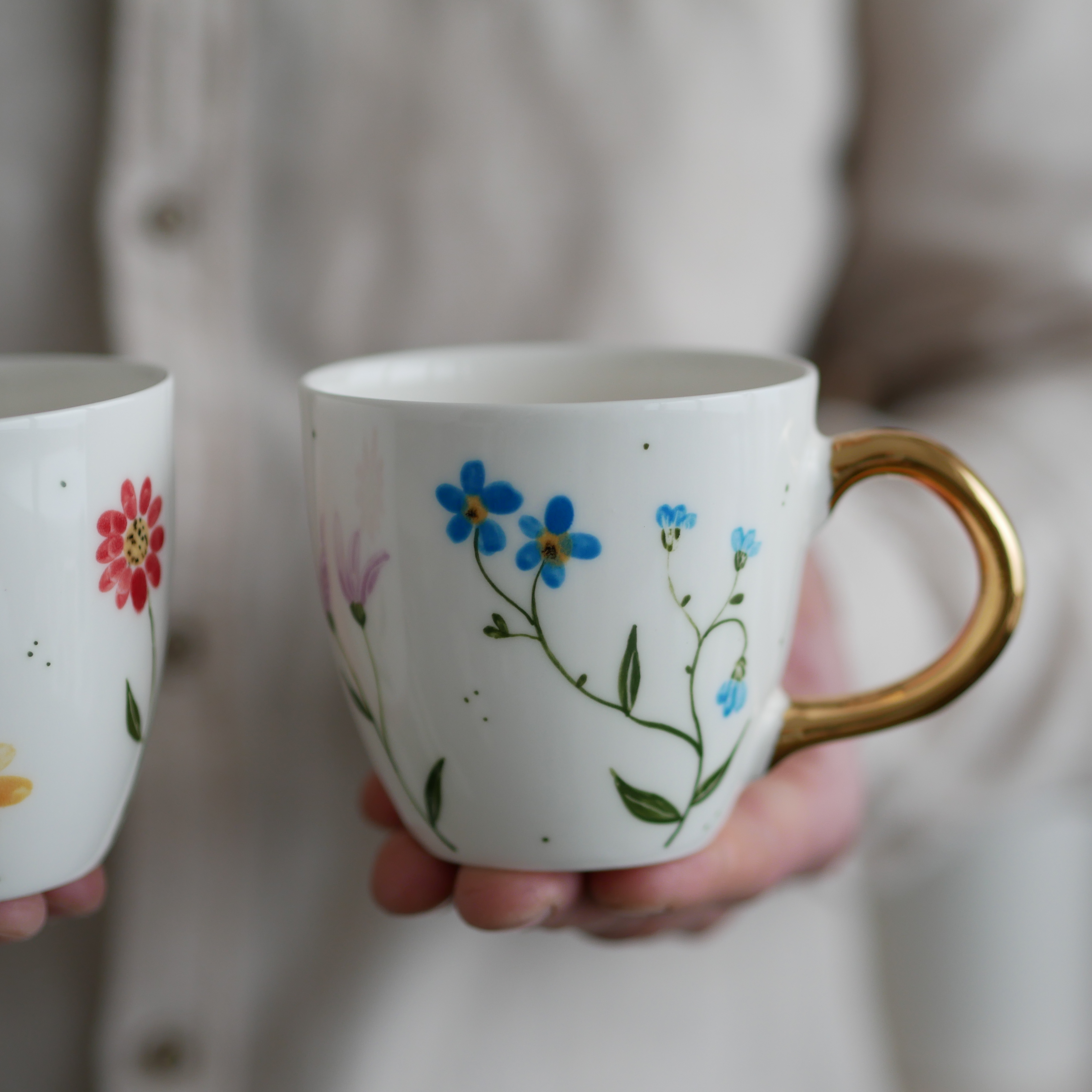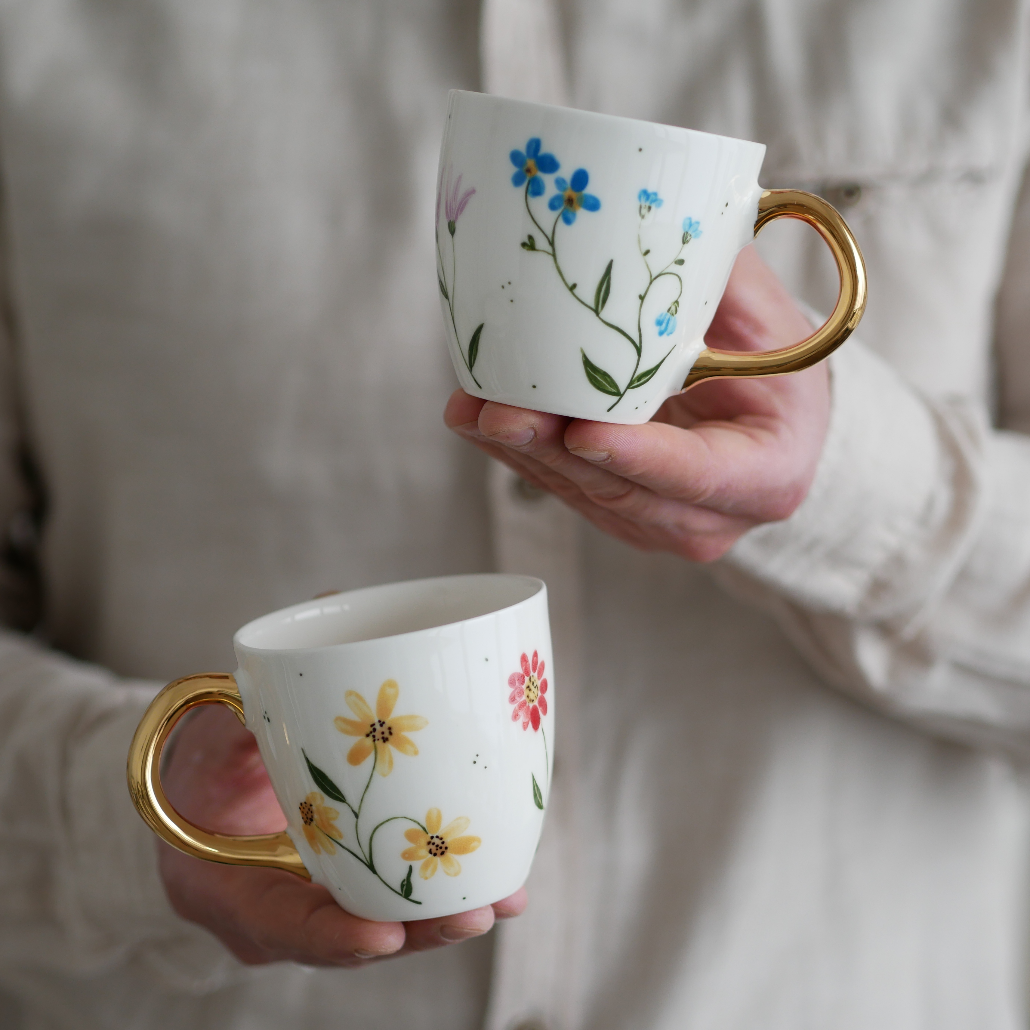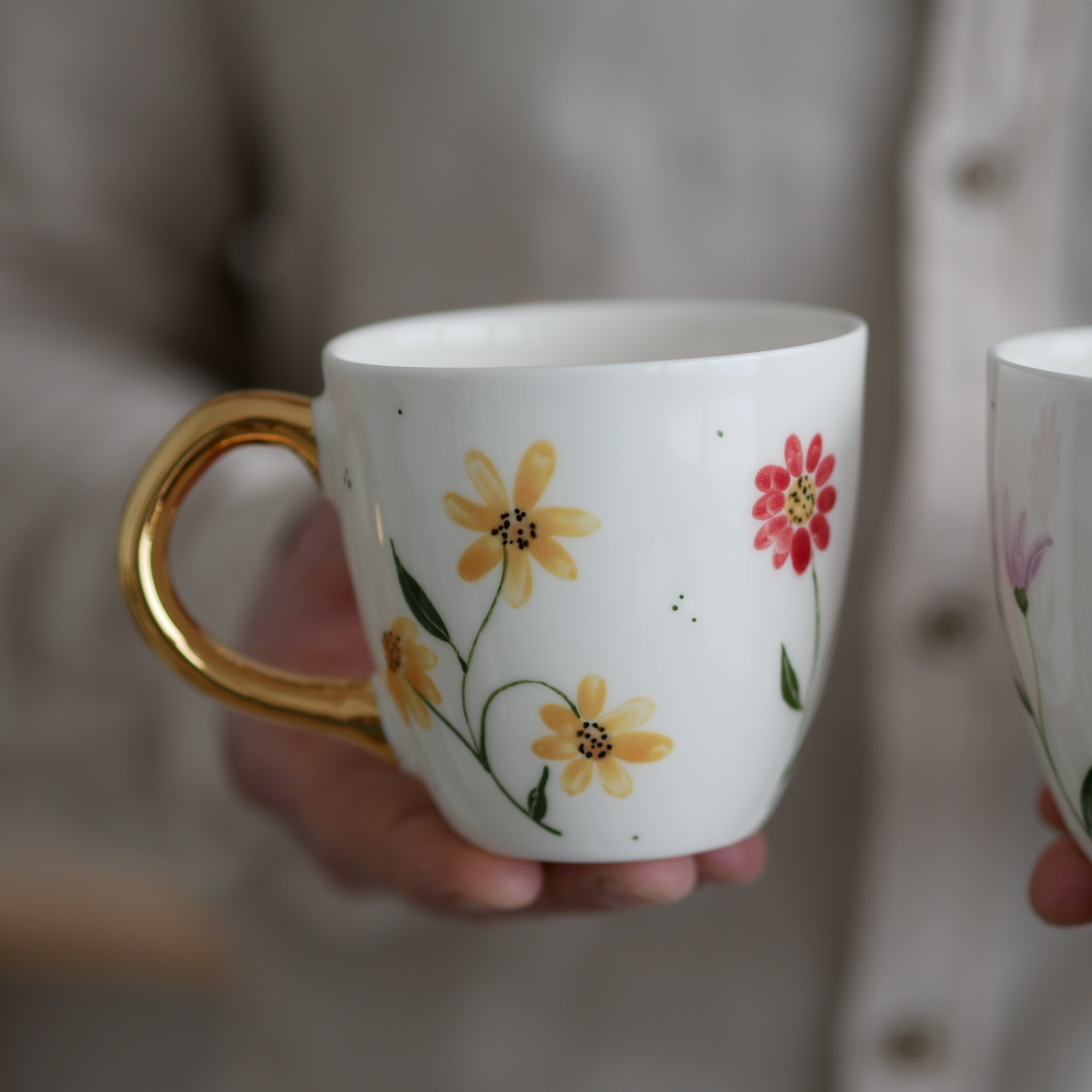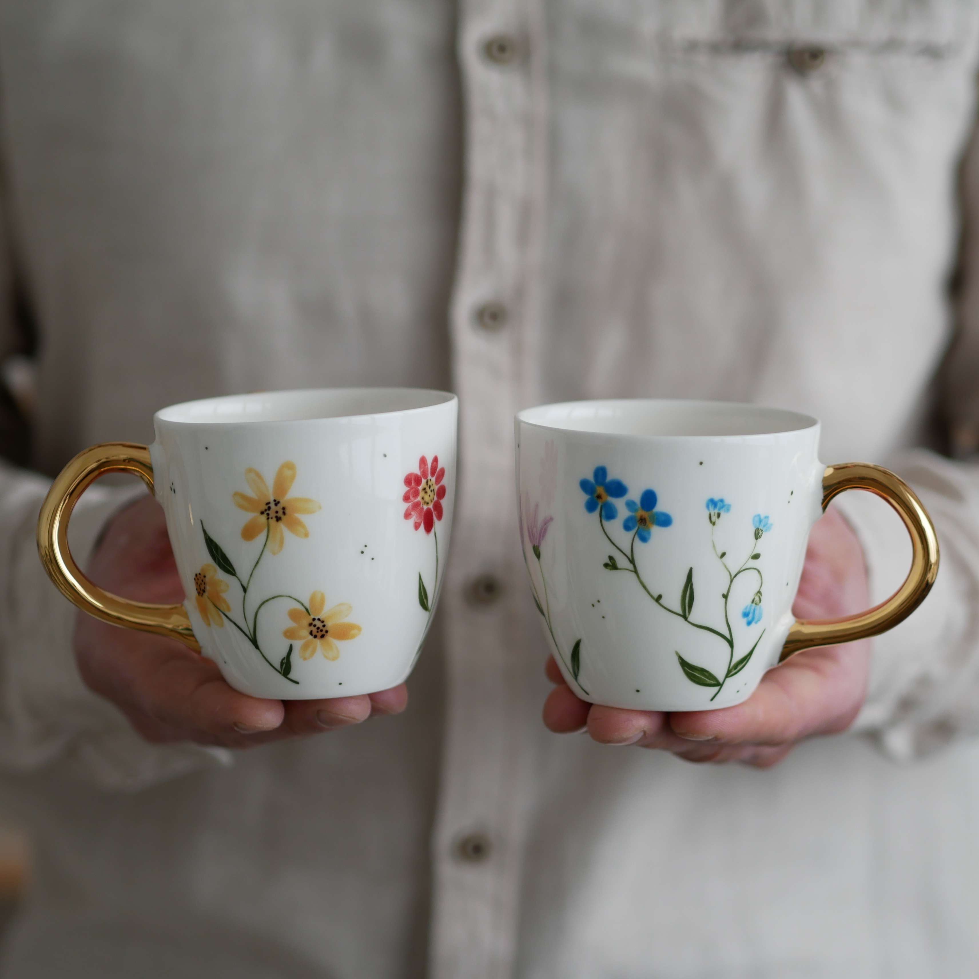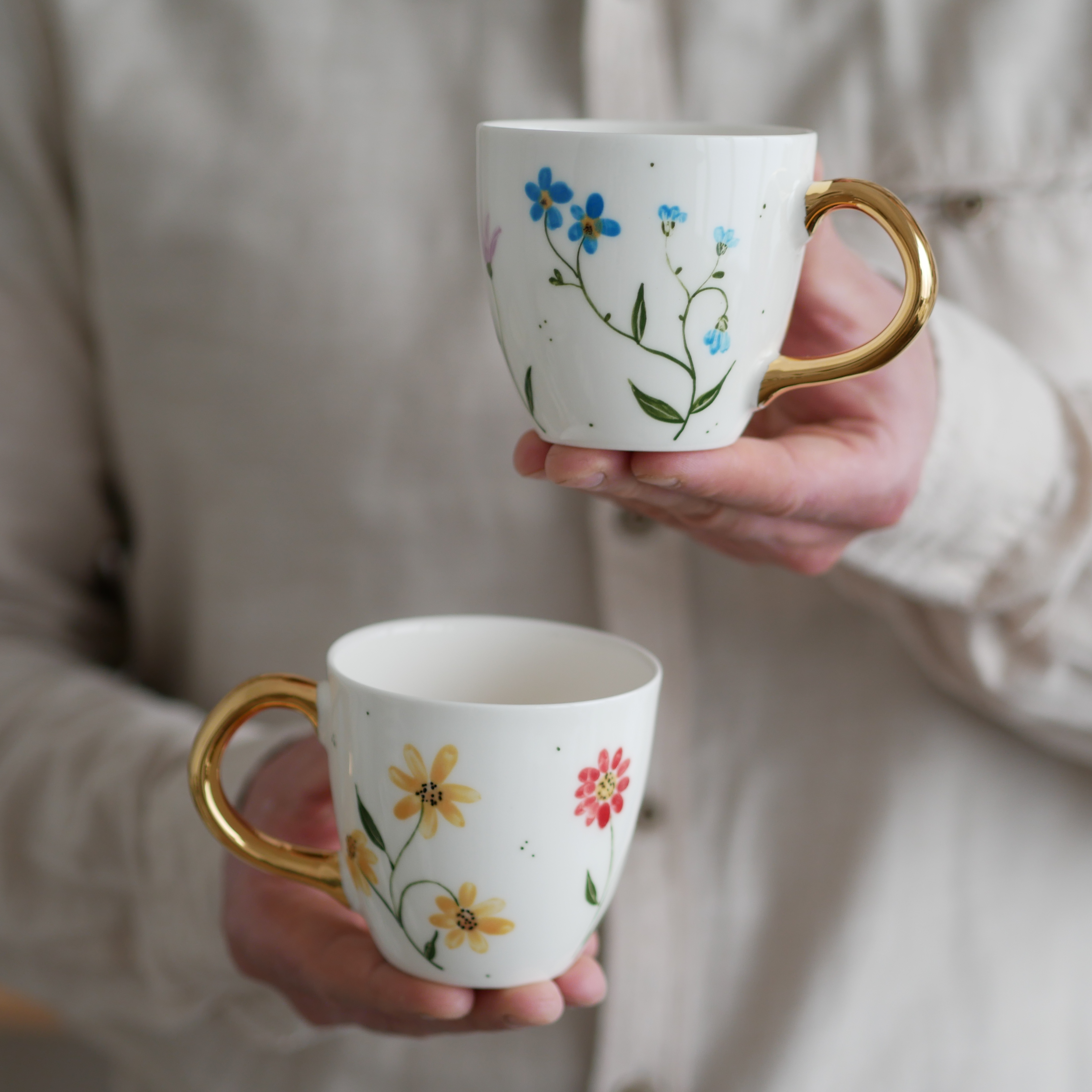 Kwiaty maluję ręcznie, dlatego na każdym kubku wzór będzie wyglądać inaczej - zdjęcie poglądowe.