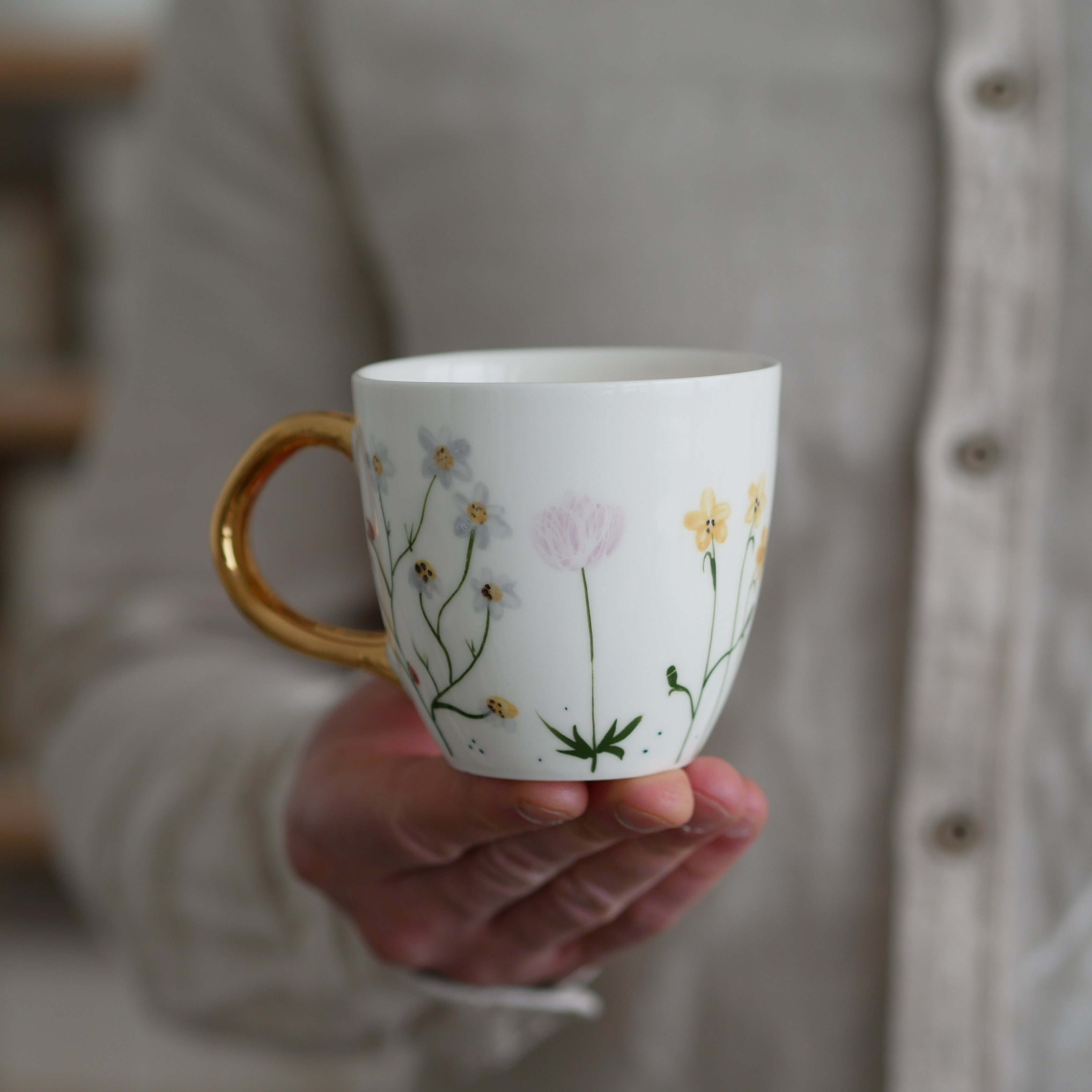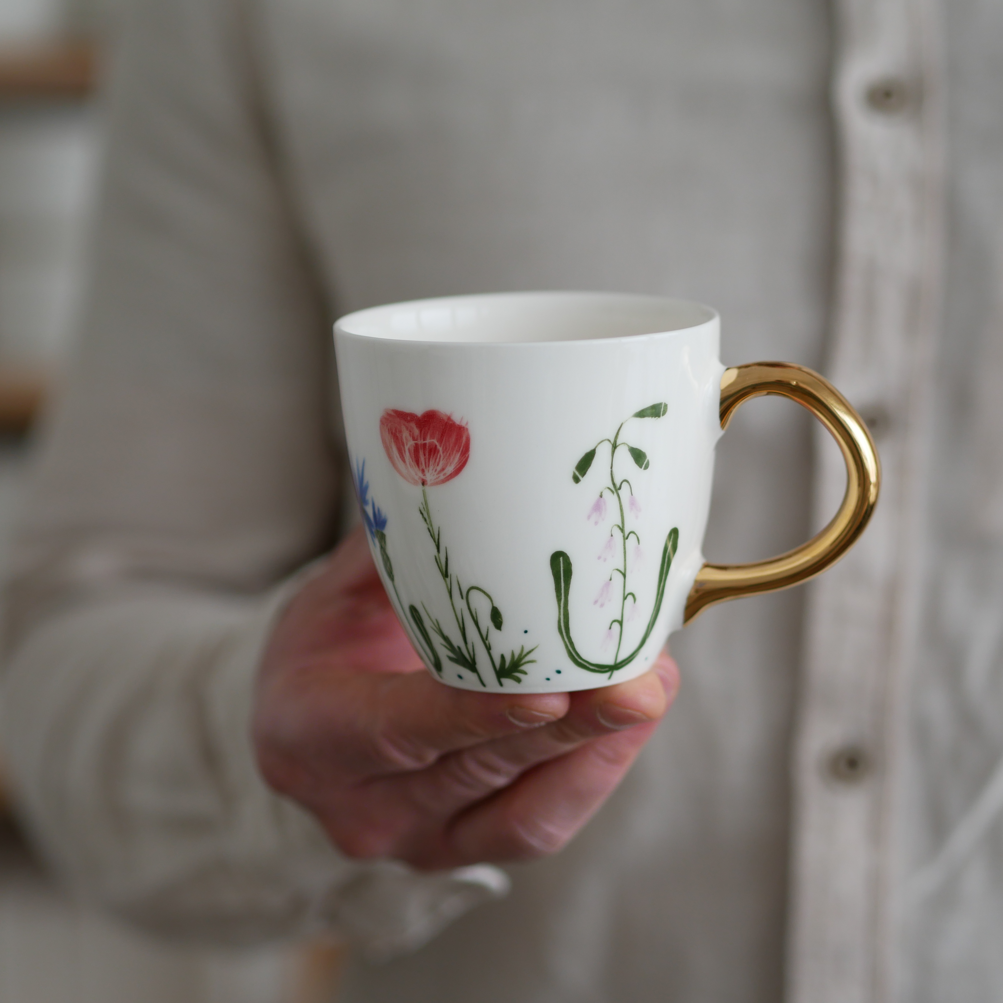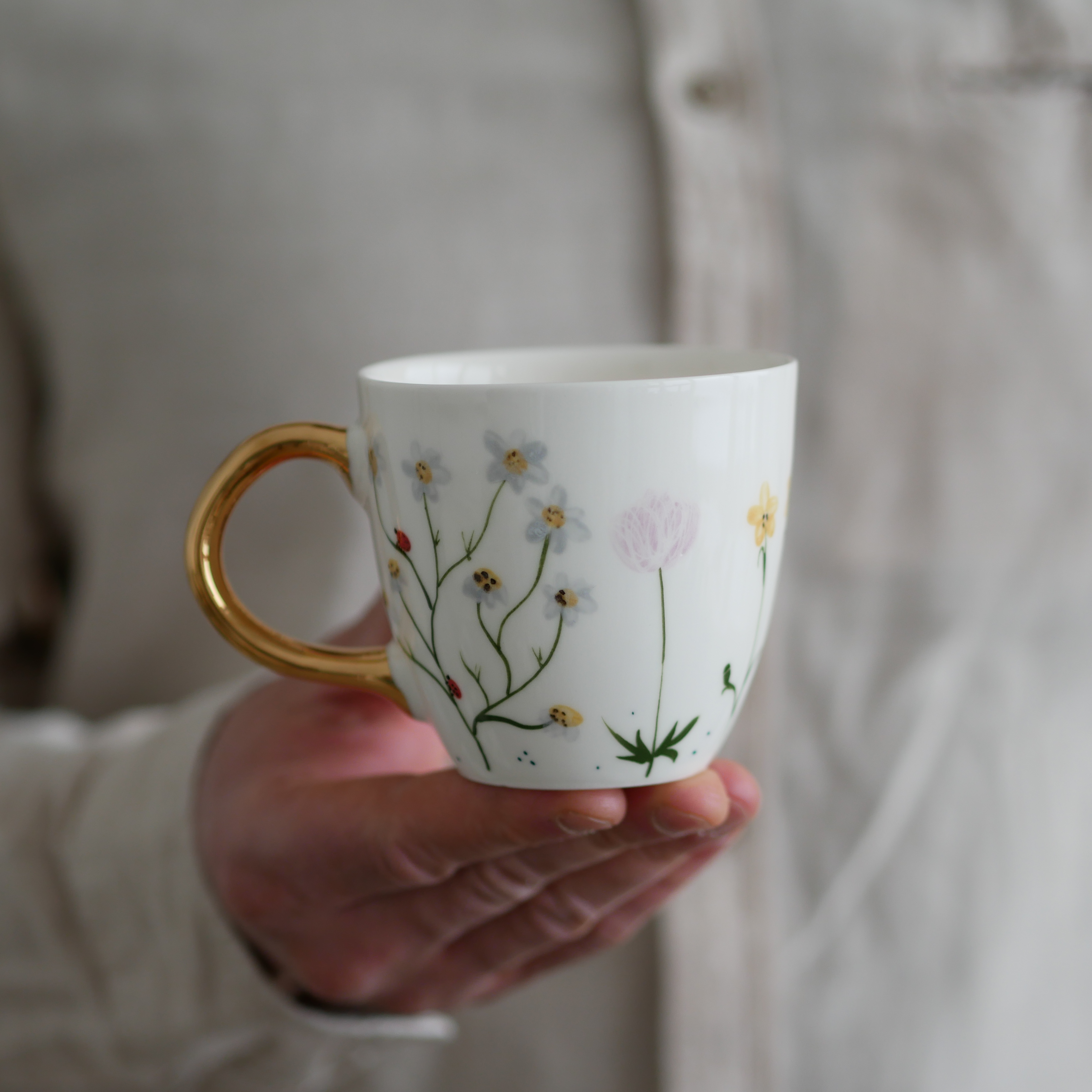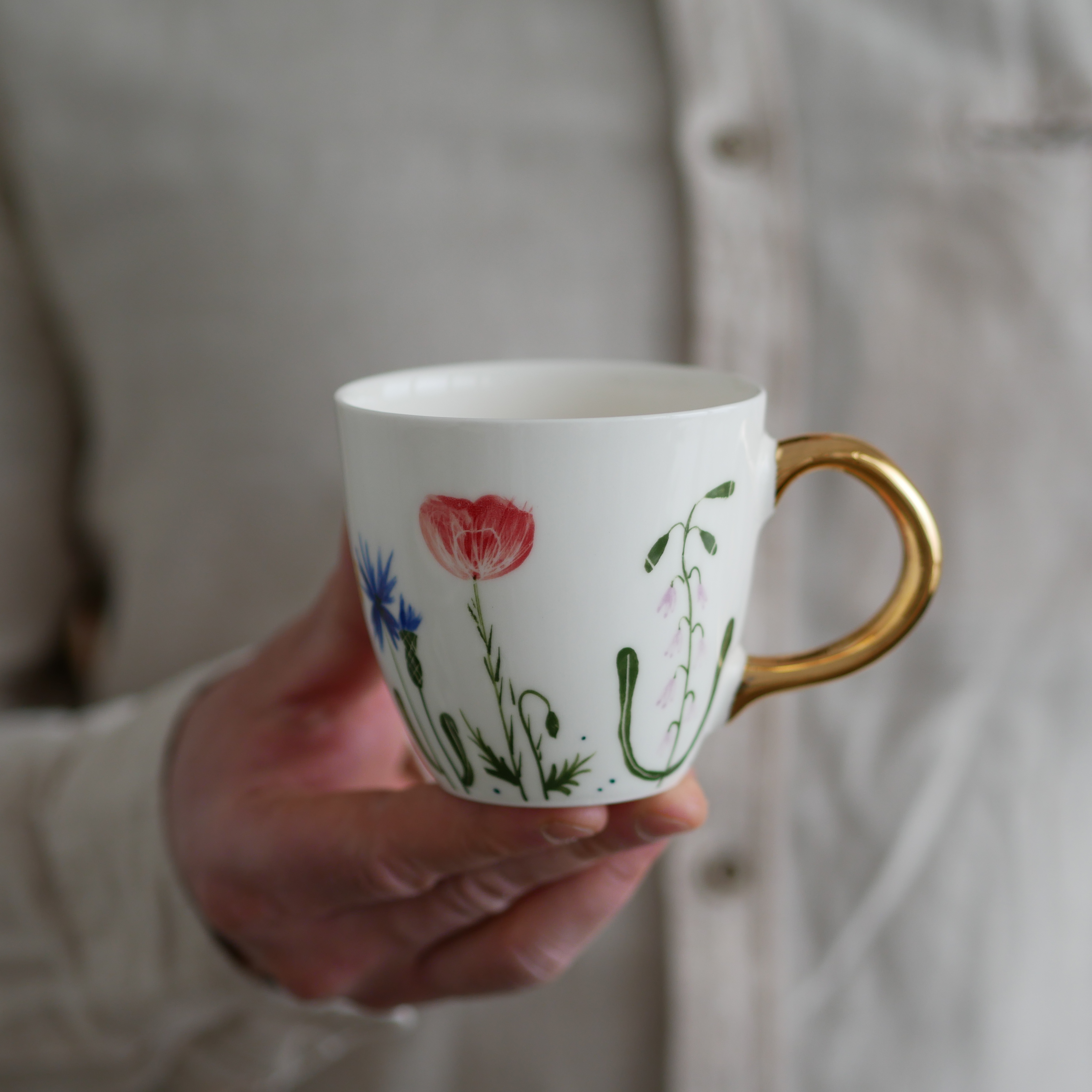 Kubek 220ml polne kwiaty ze złotym uszkiem