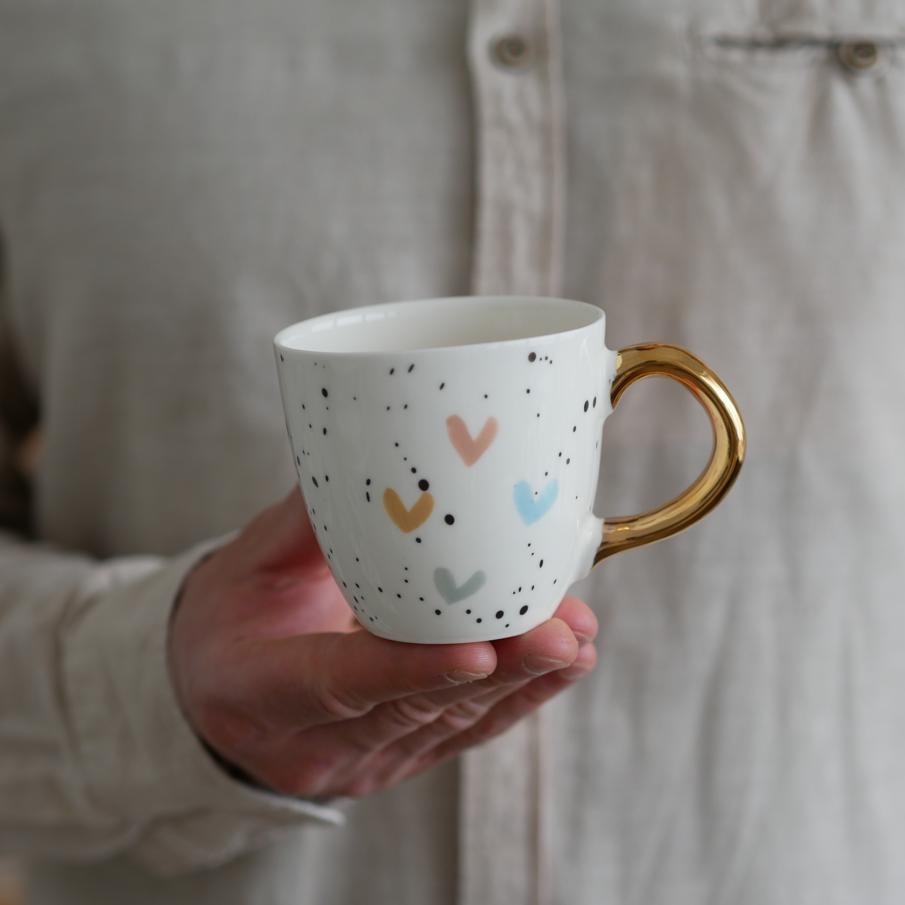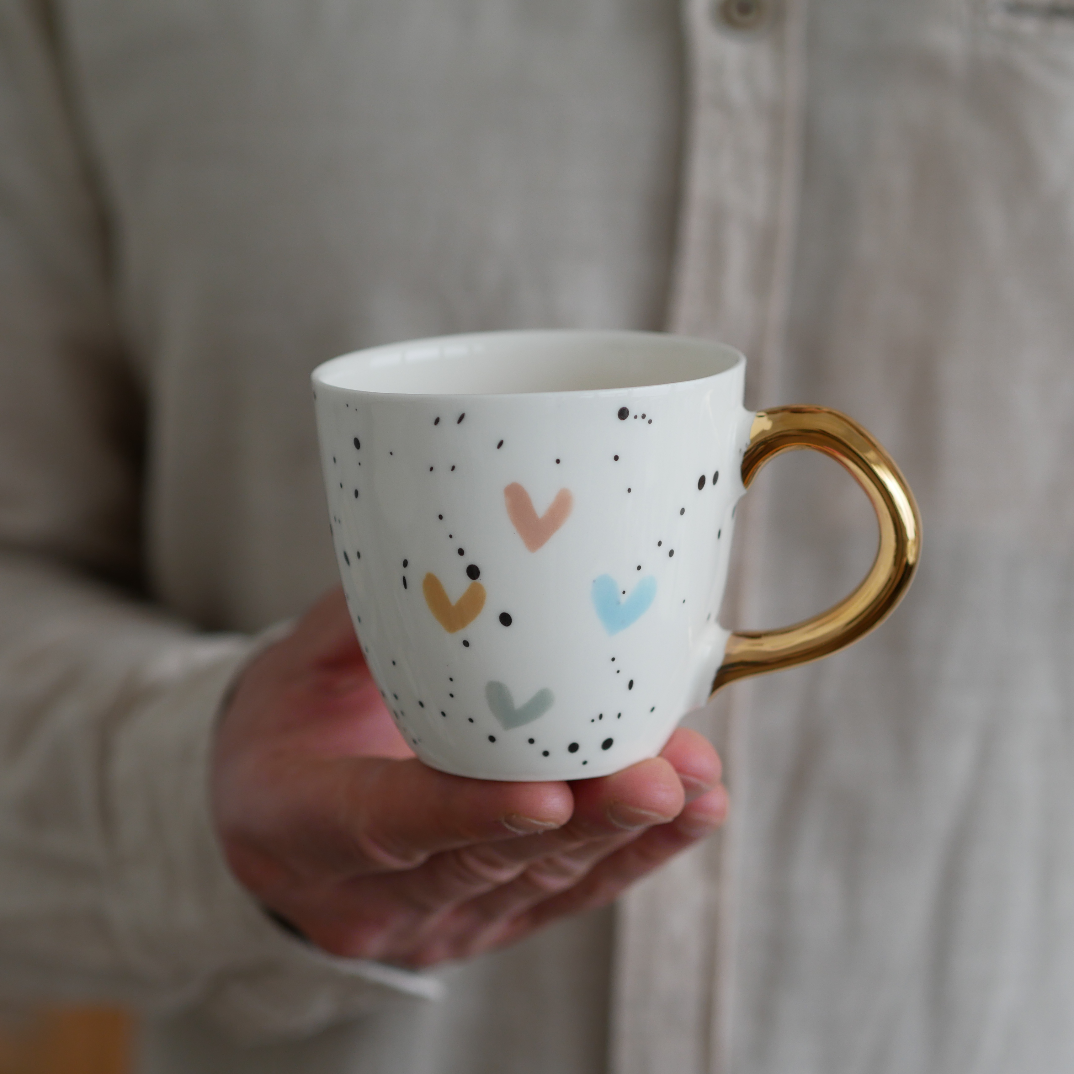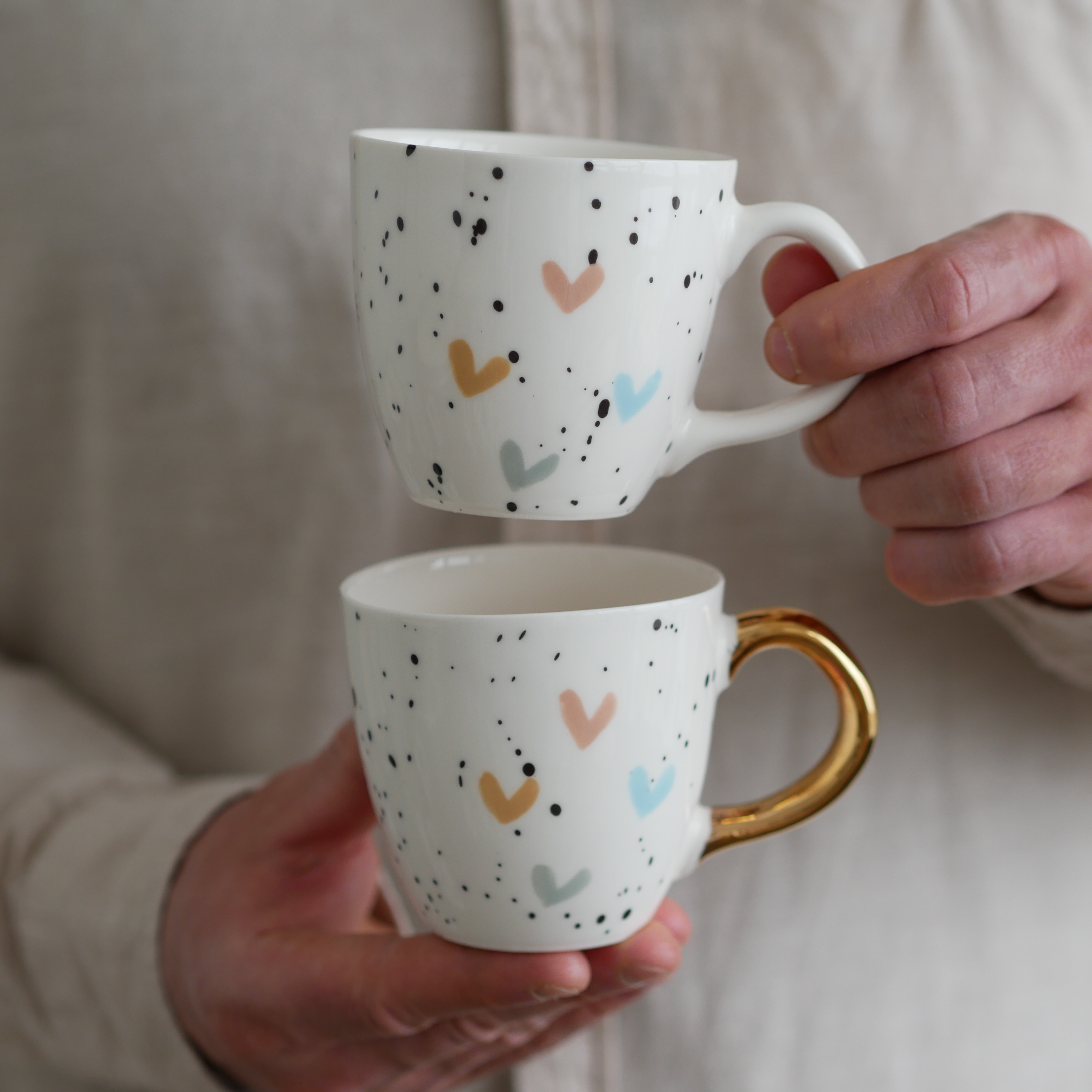 Każdy kubek ma inne ręcznie malowane serduszko.