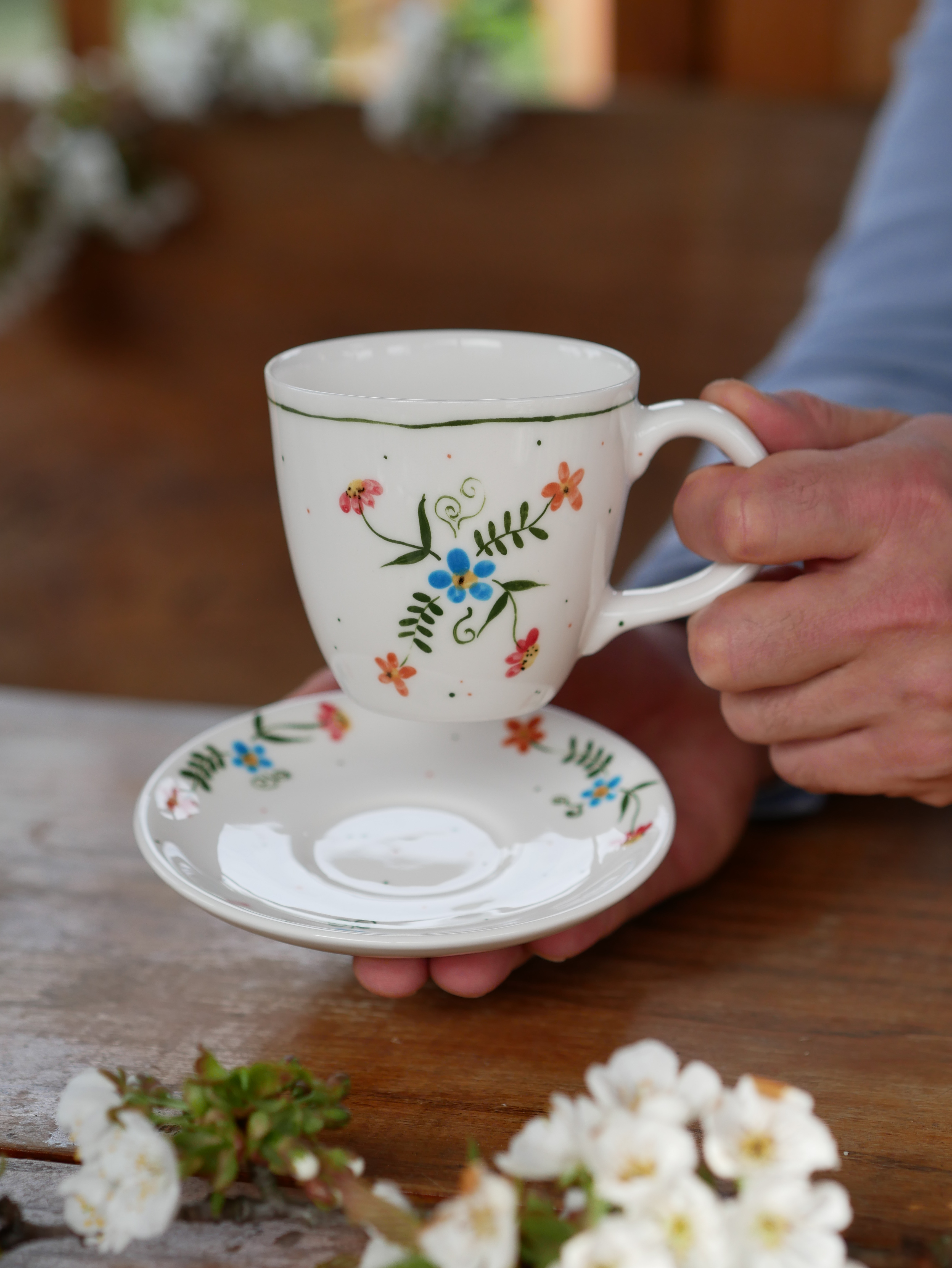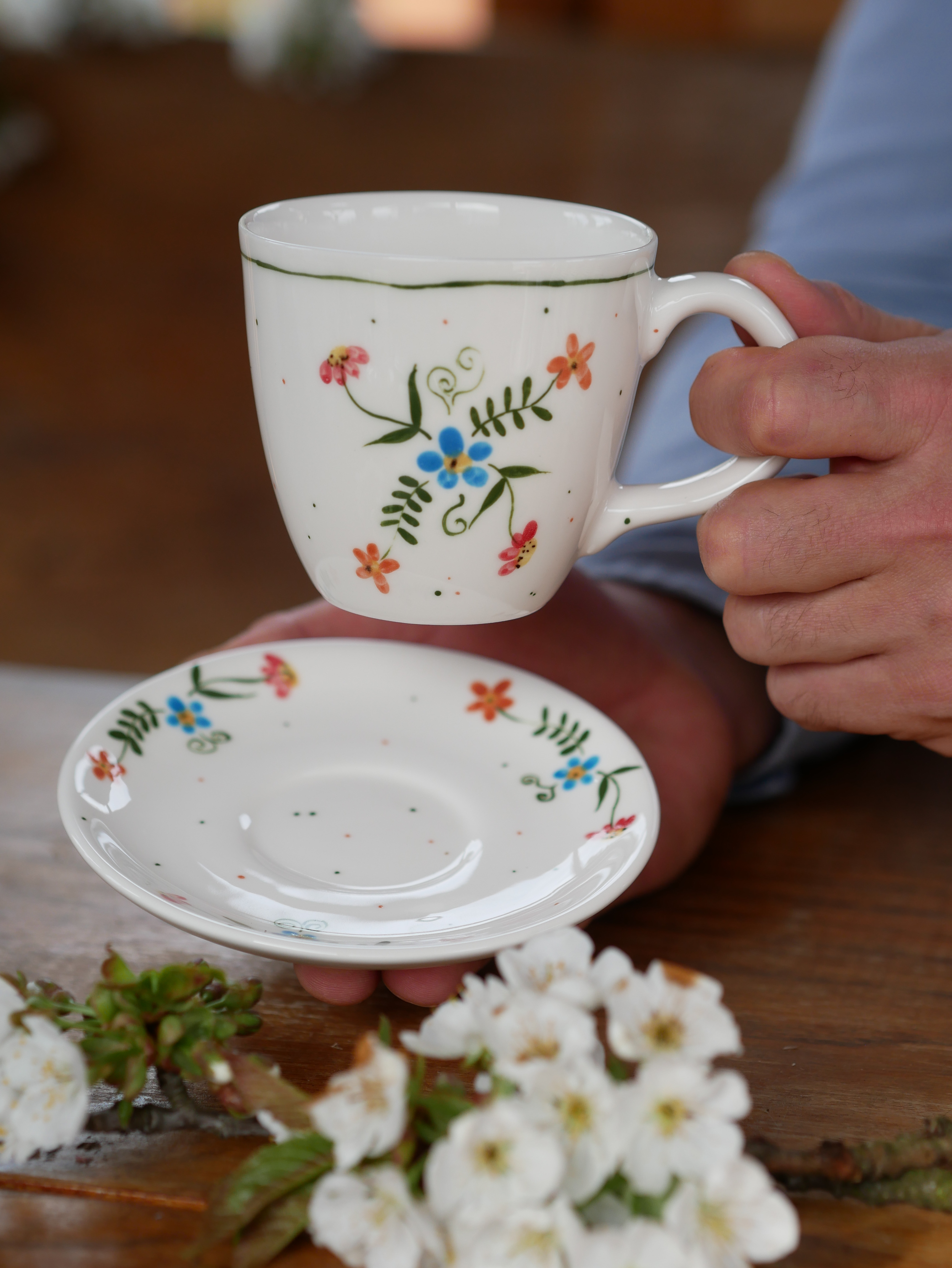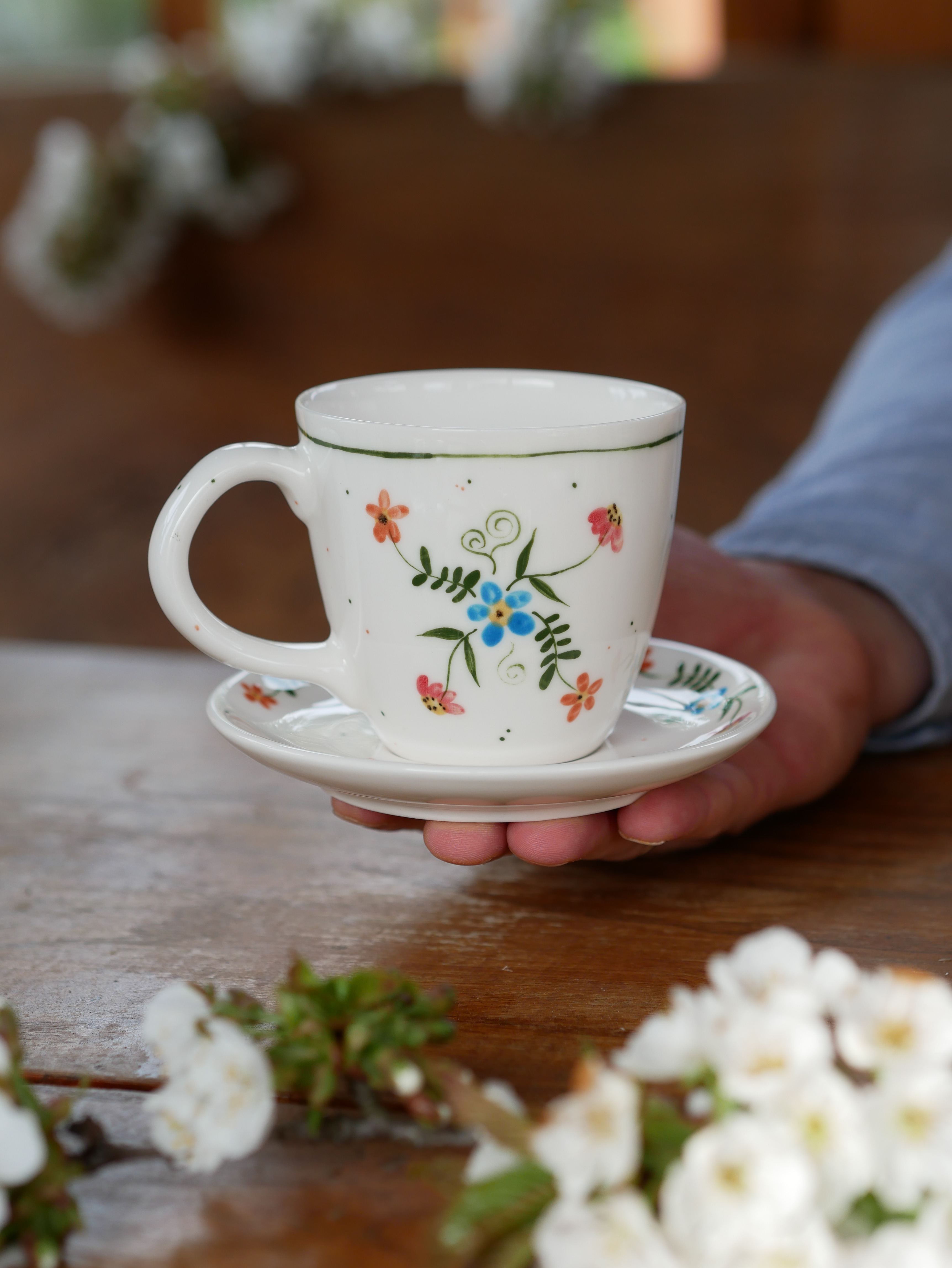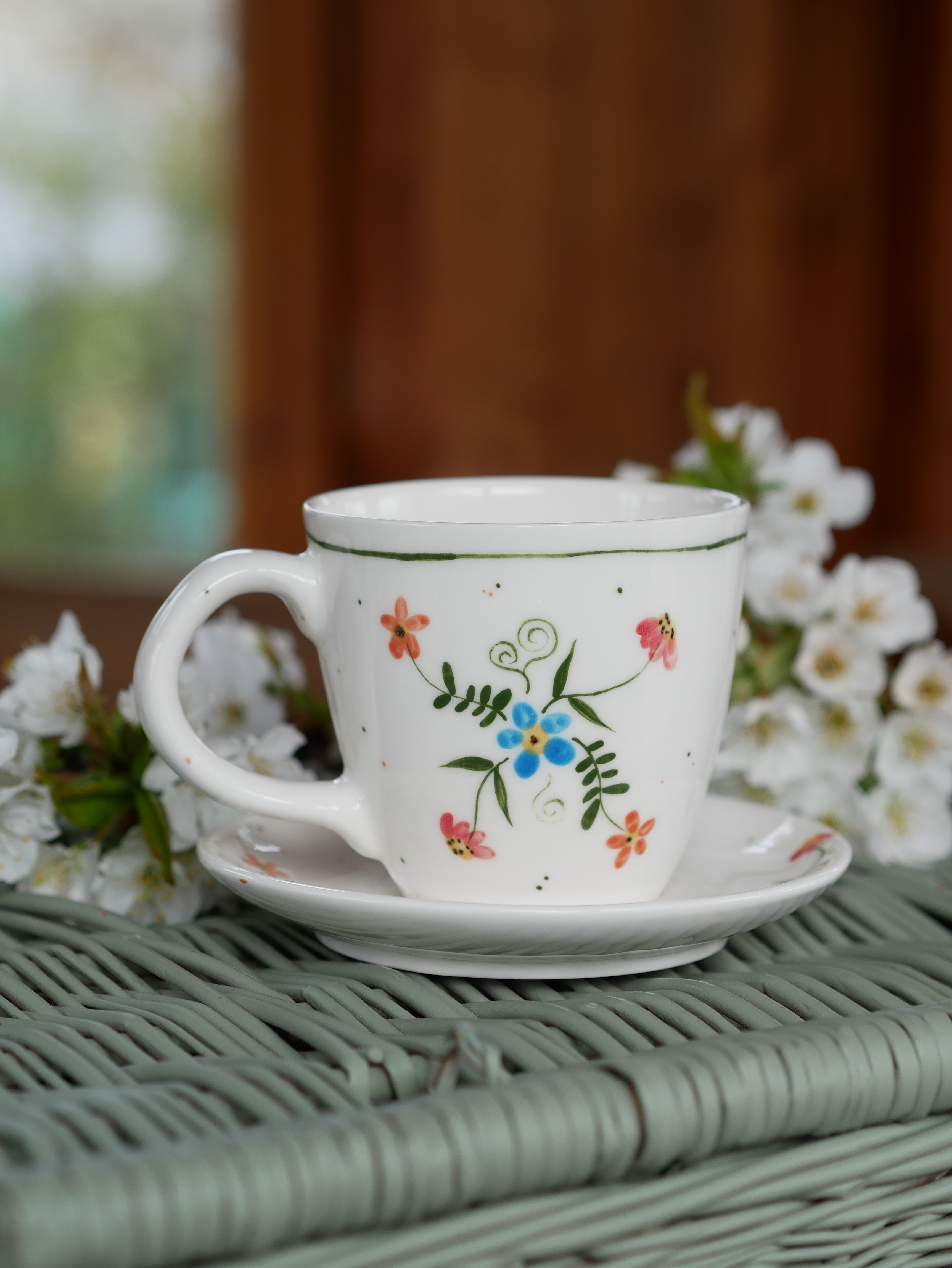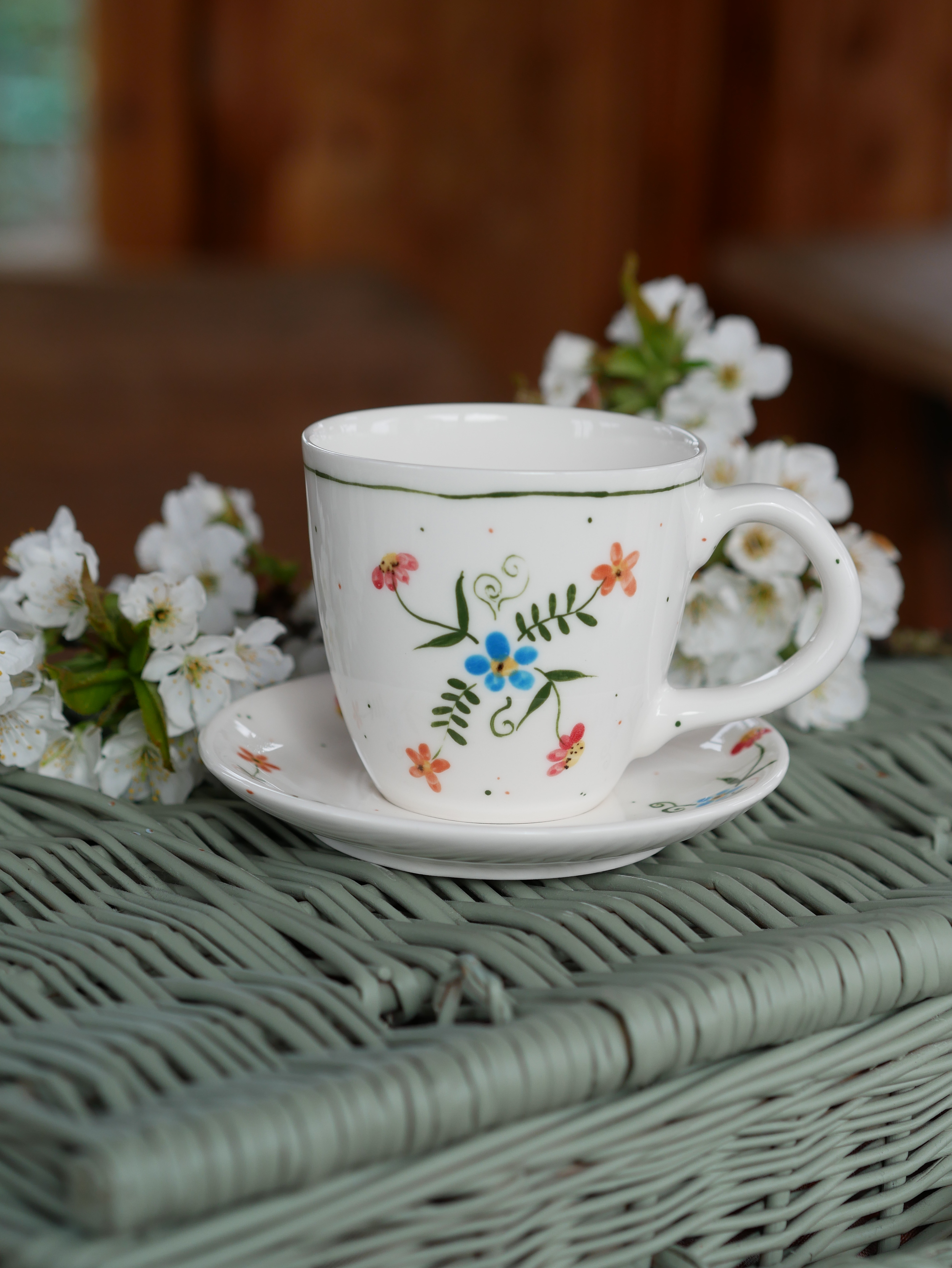 Kubek 220ml wiejska opowieść z białym uszkiem + talerzyk 12,5cm