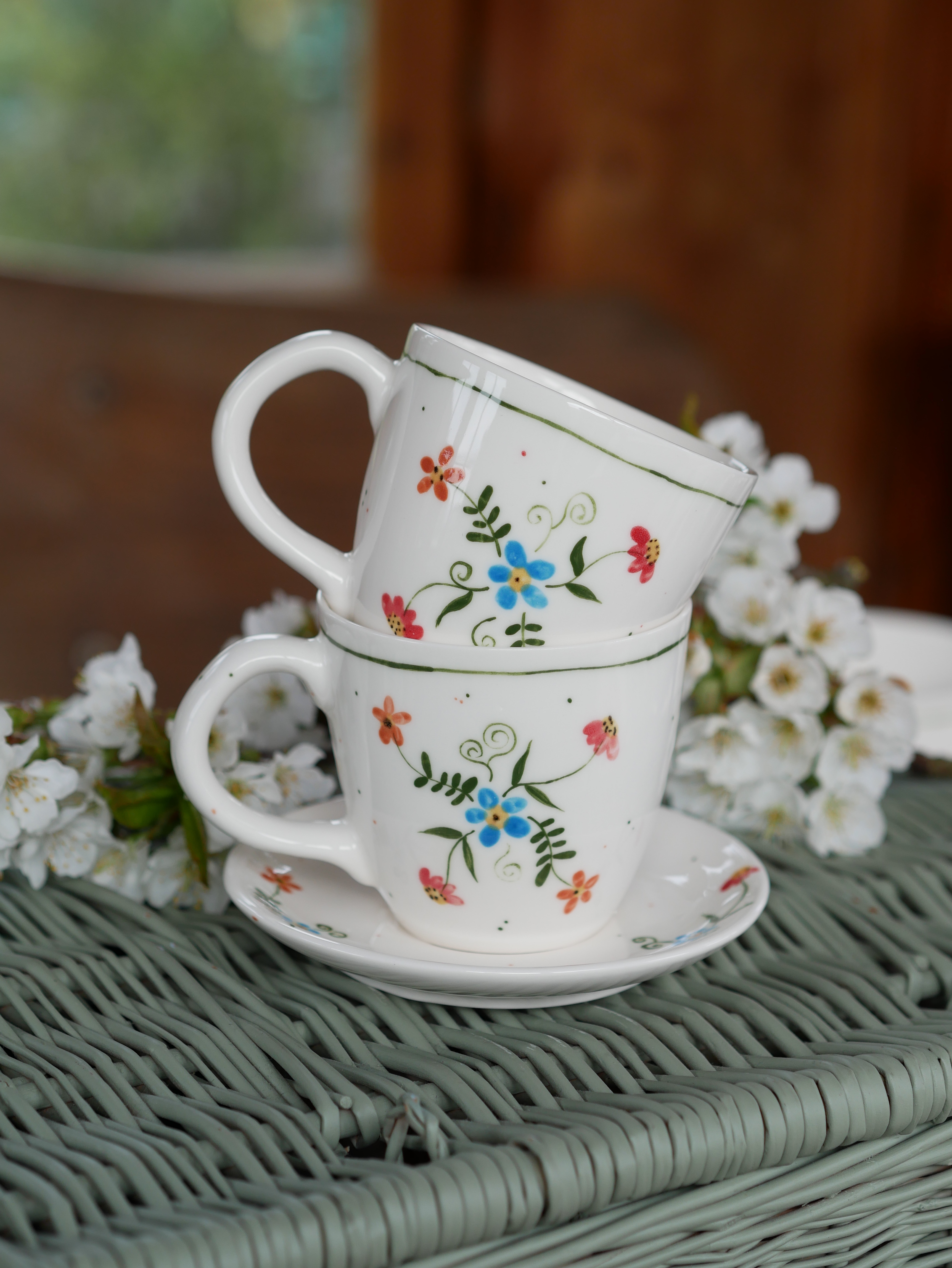 Kwiaty maluję ręcznie, dlatego na każdym kubku wzór będzie wyglądać inaczej - zdjęcie poglądowe.