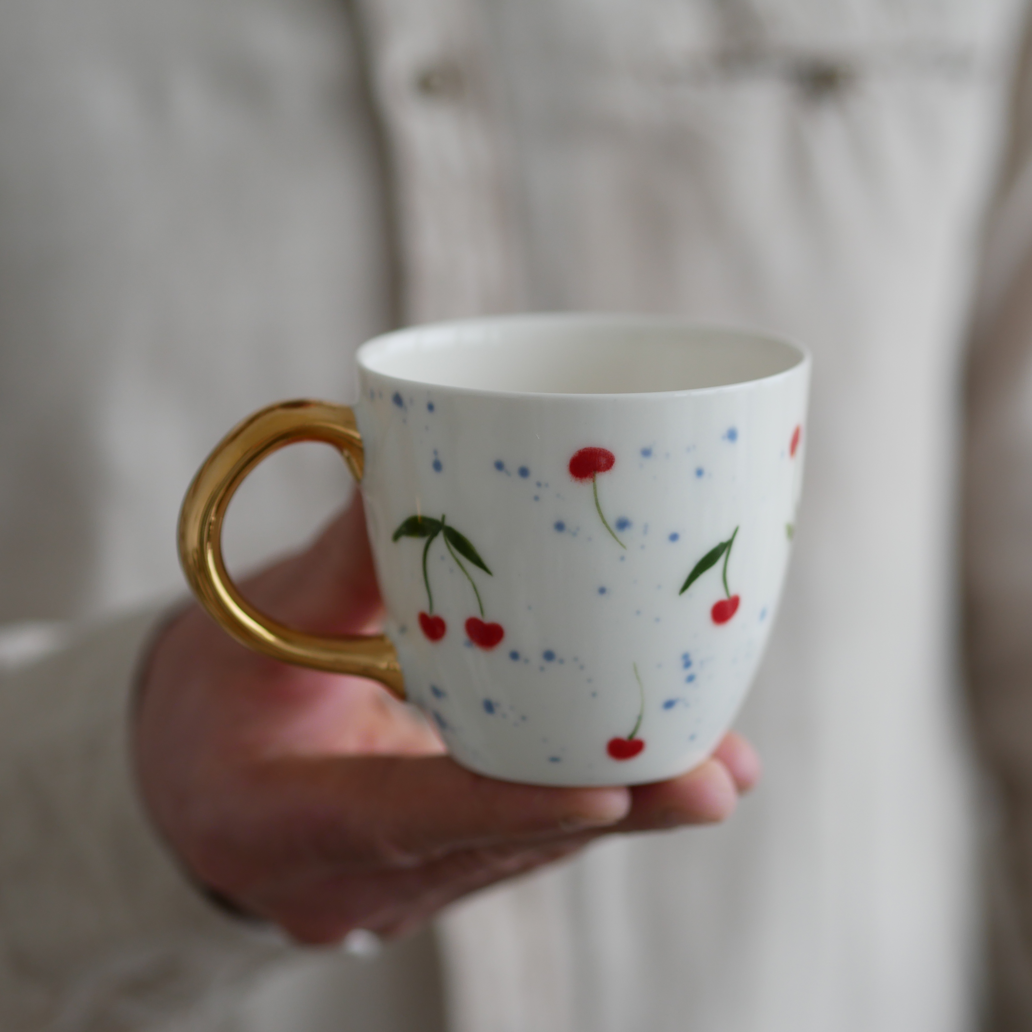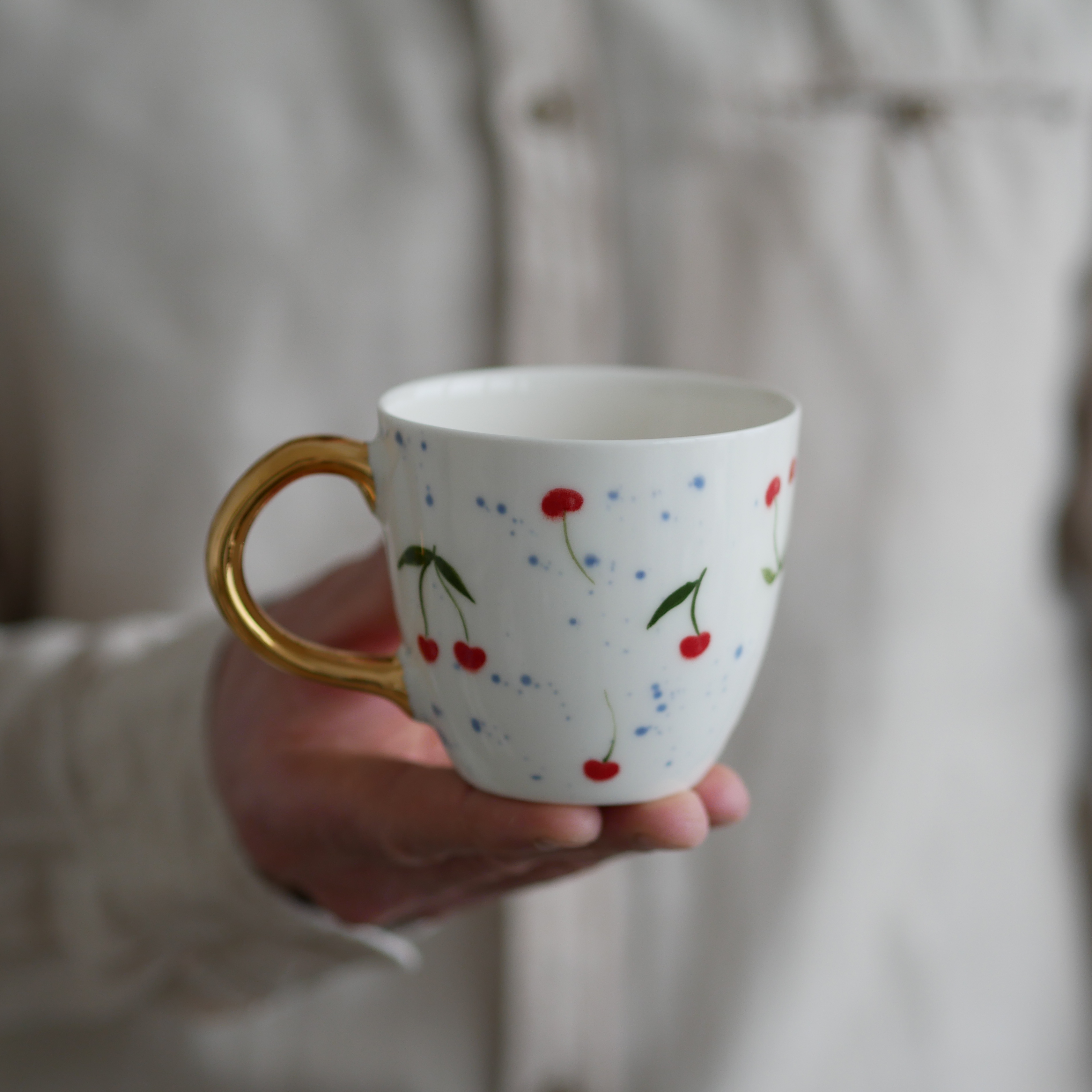 Owoce maluję ręcznie, dlatego na każdym kubku wzór będzie wyglądać inaczej - zdjęcie poglądowe.