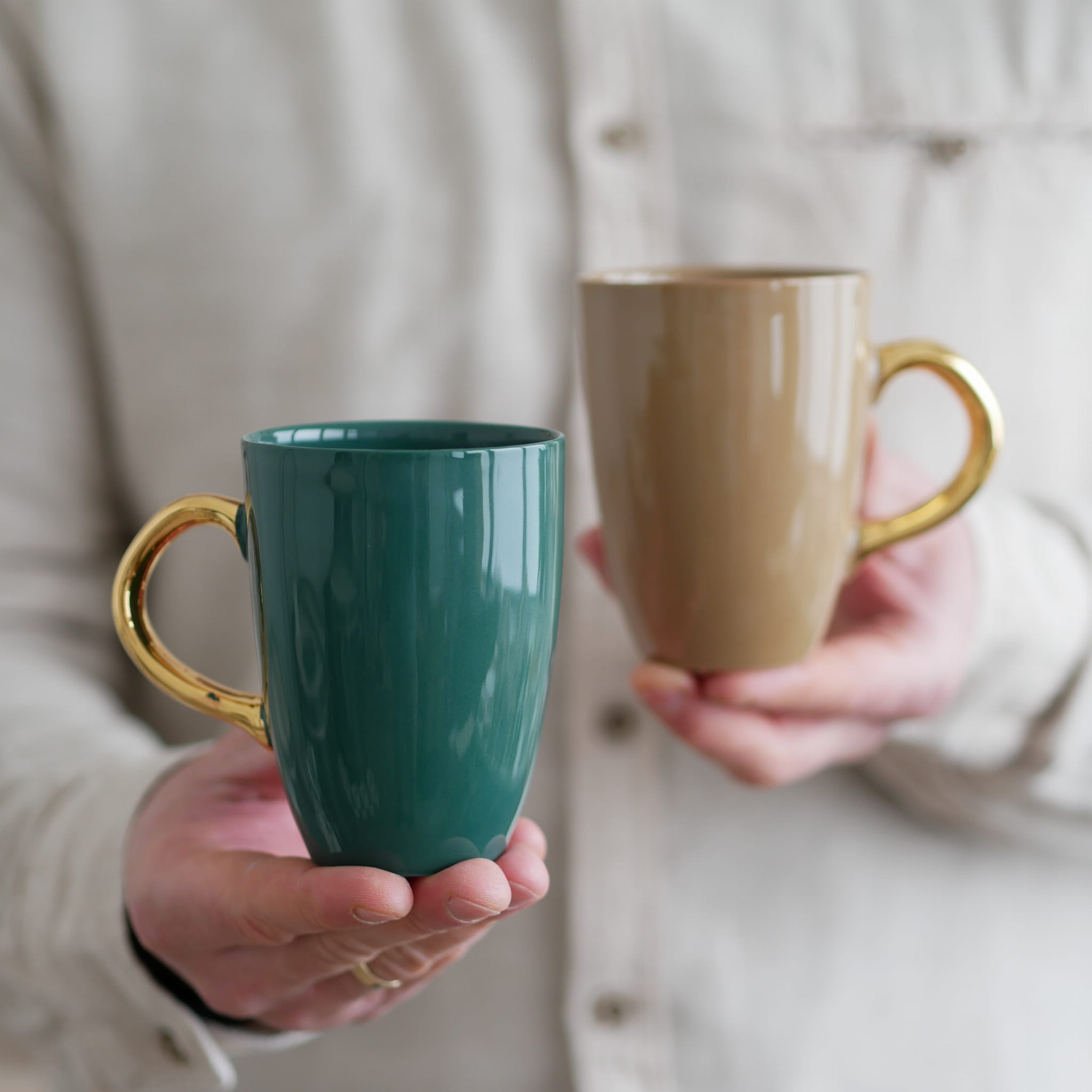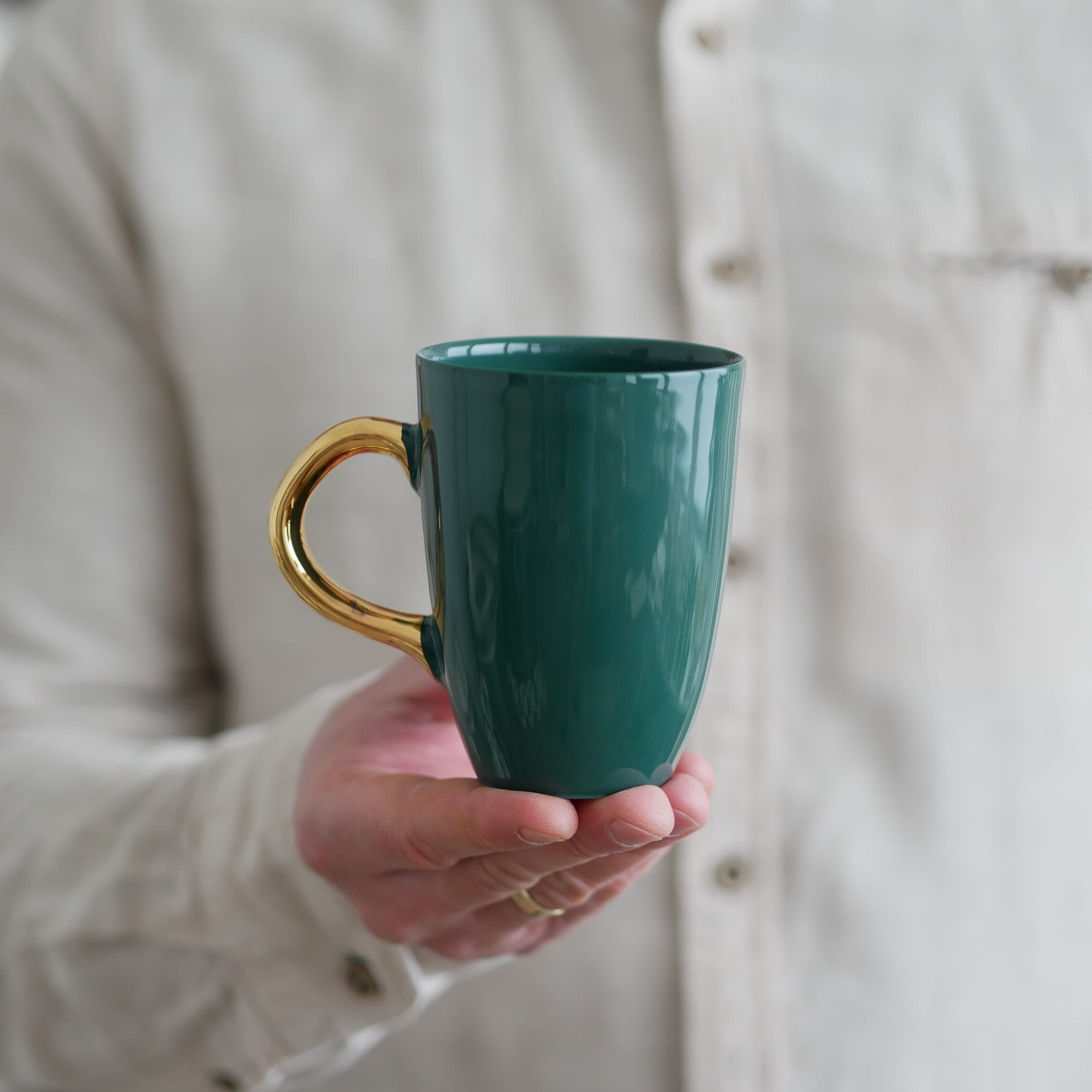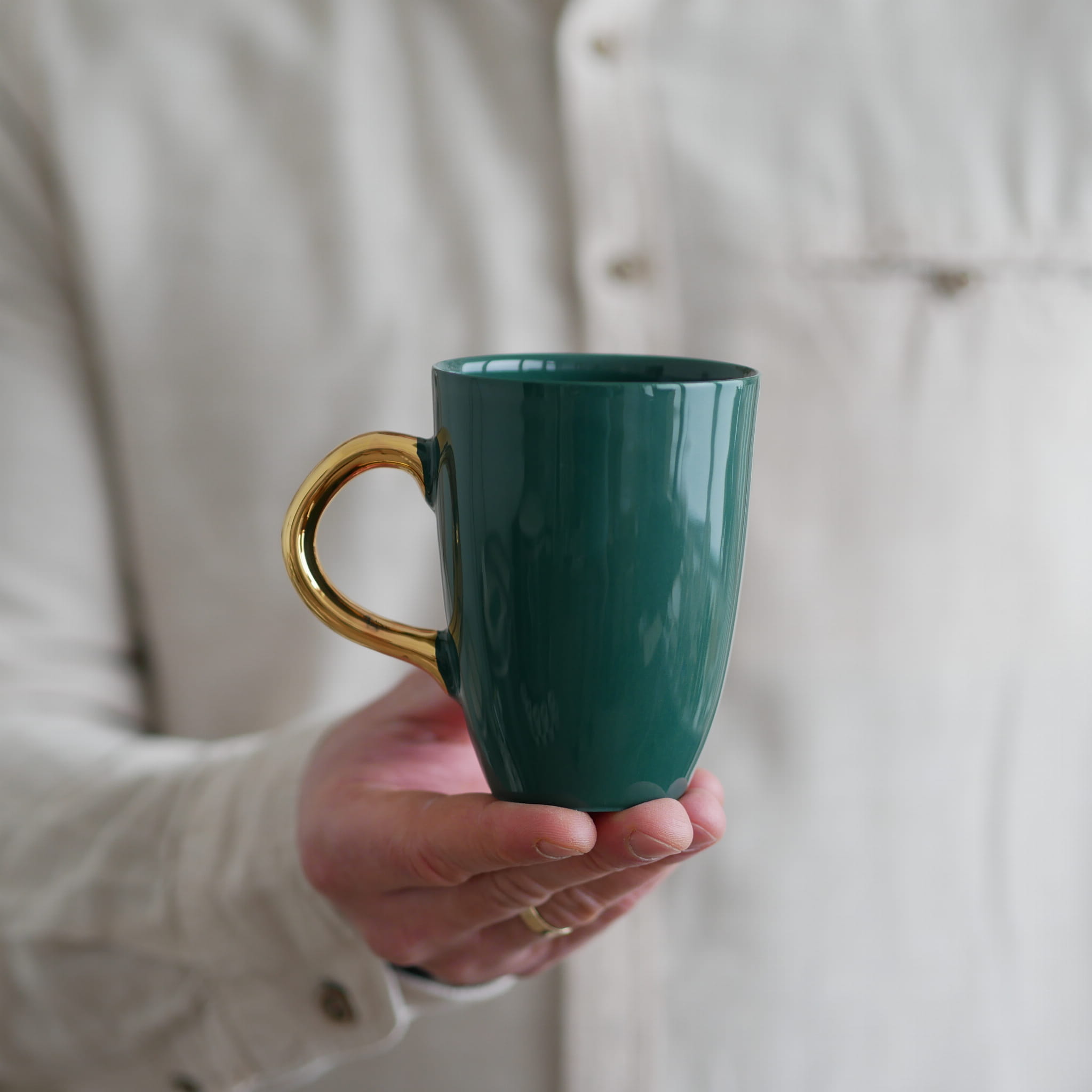 Piękna zieleń butelkowa - kubek ze złotym uszkiem classic.