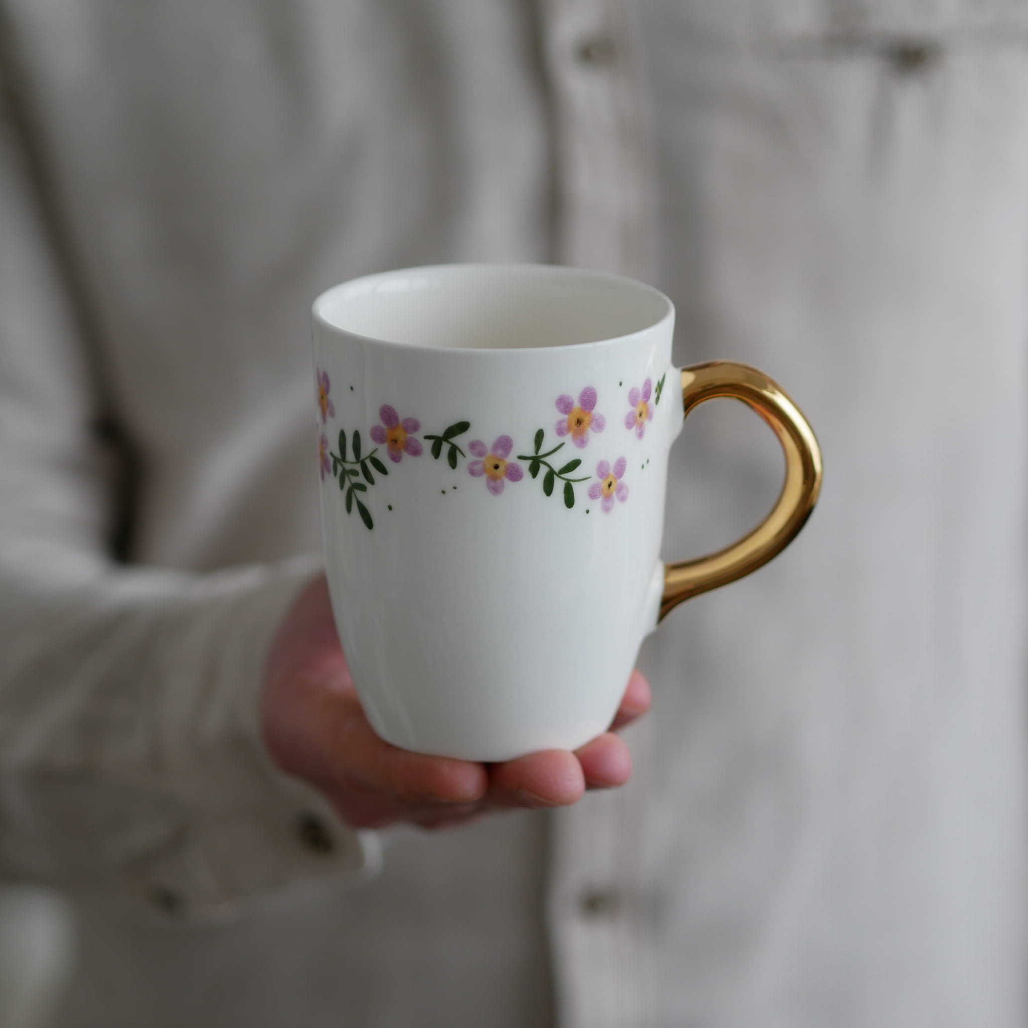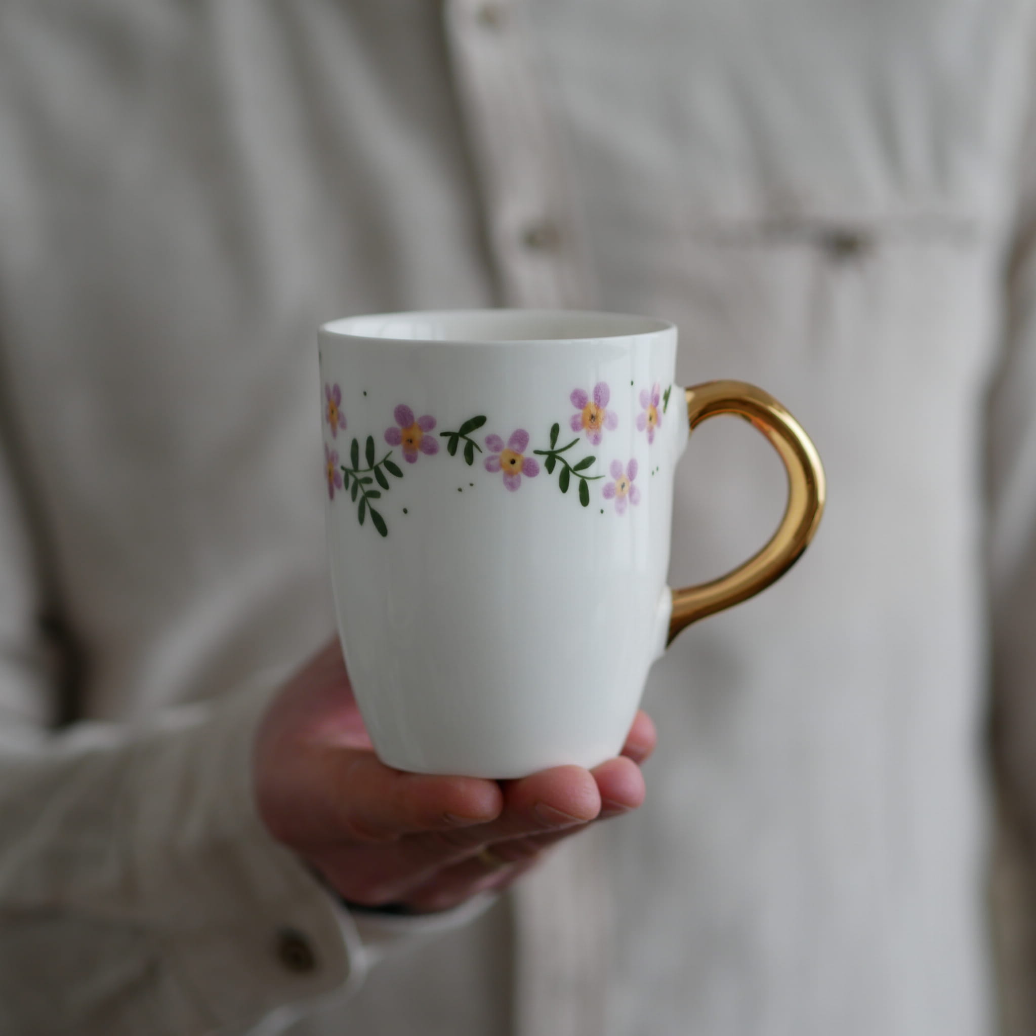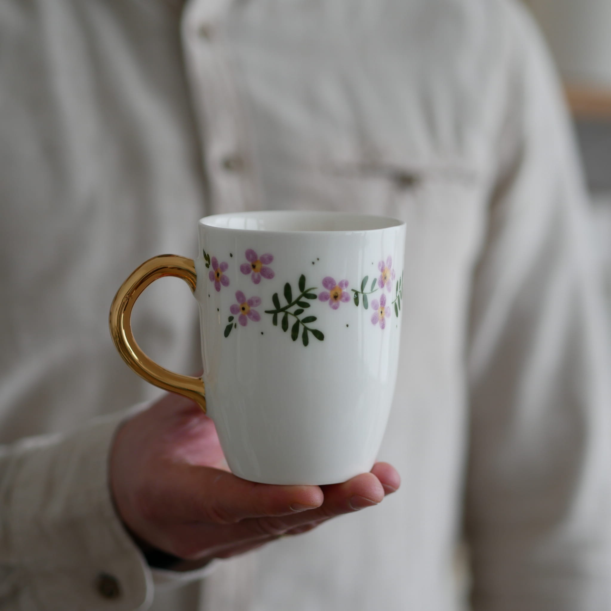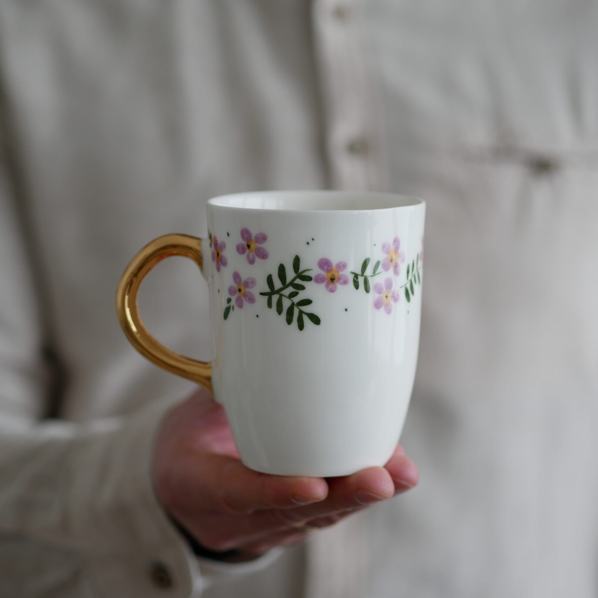 Kubek 300ml kwiaty wiejskie ze złotym uszkiem