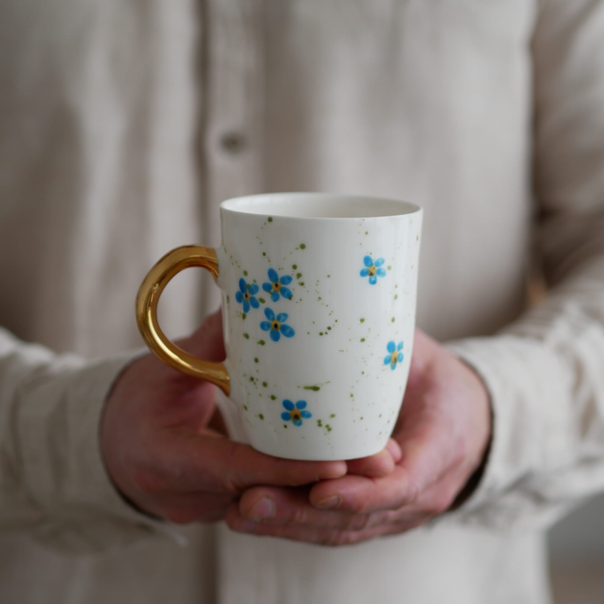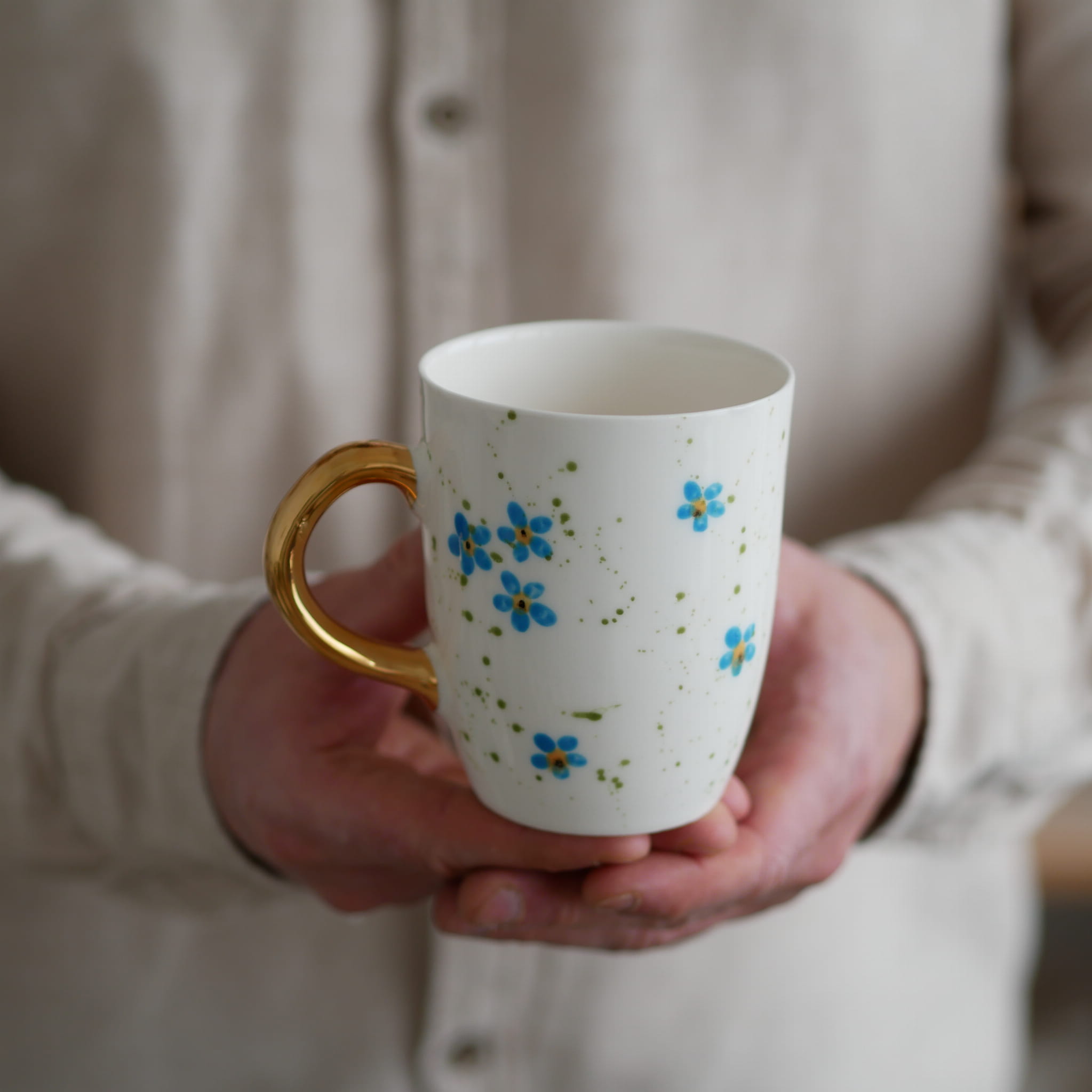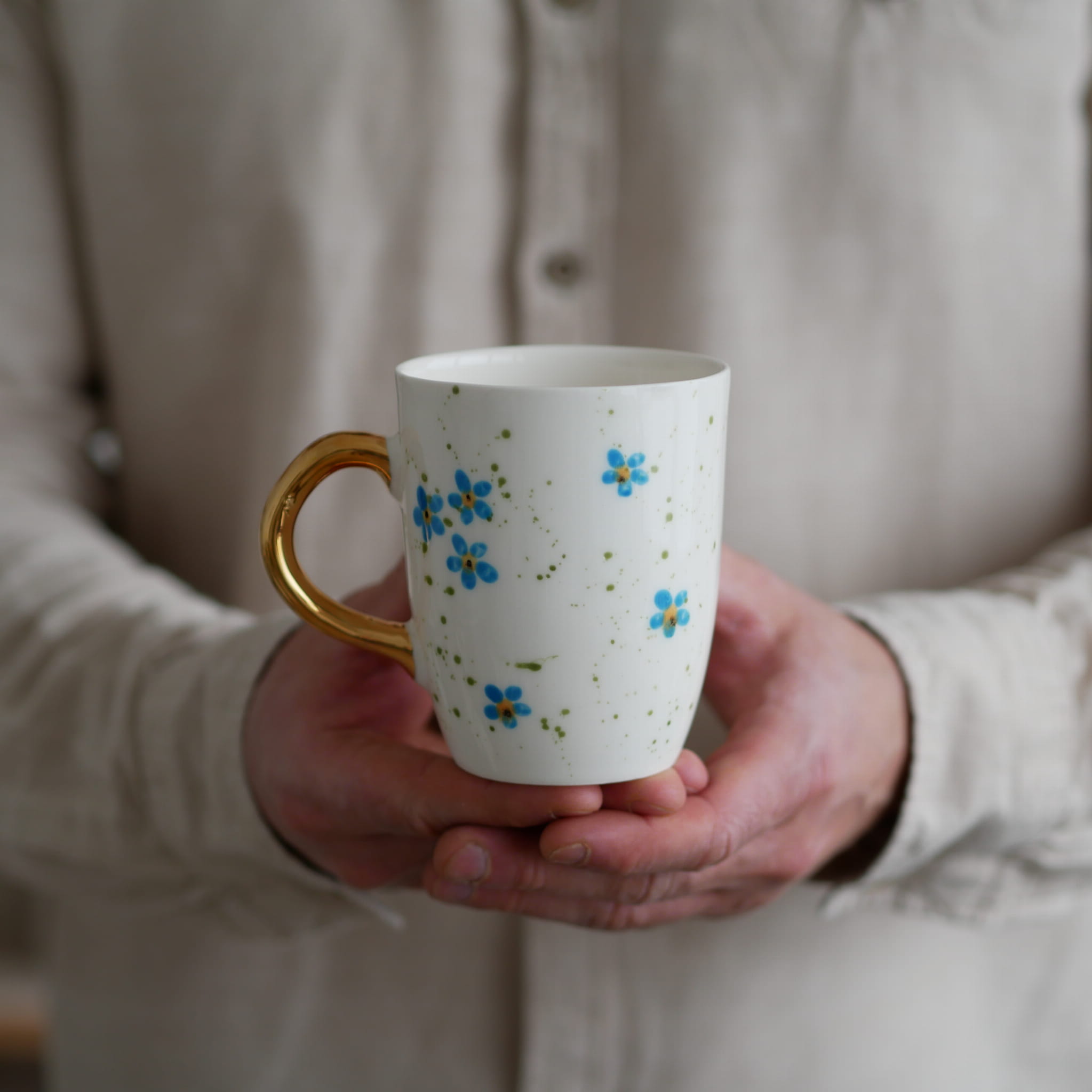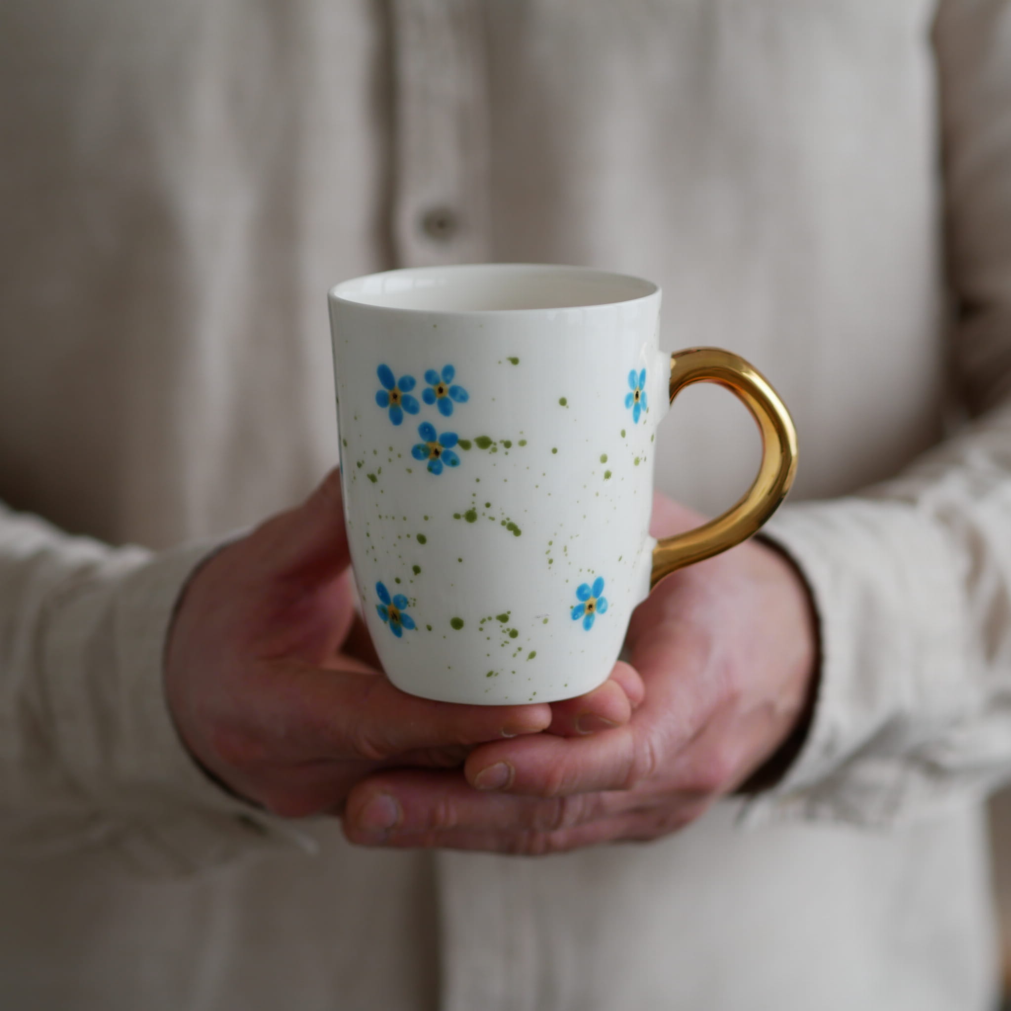 Kubek 300ml niezapominajki ze złotym uszkiem