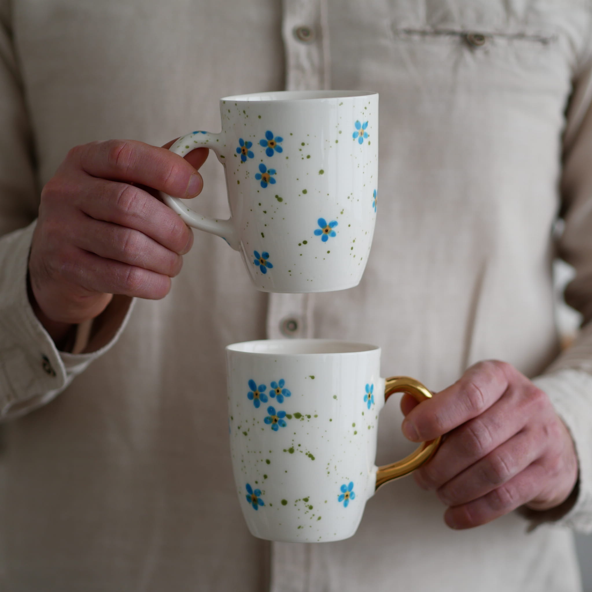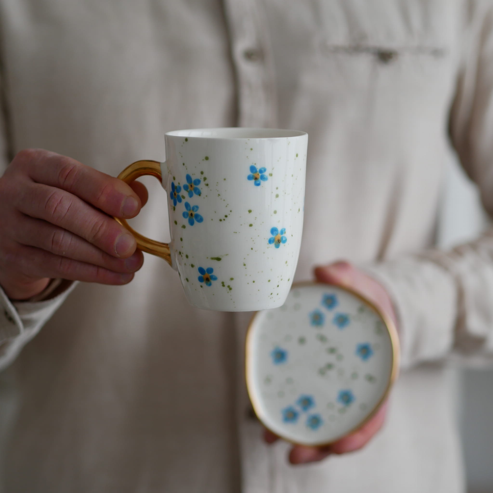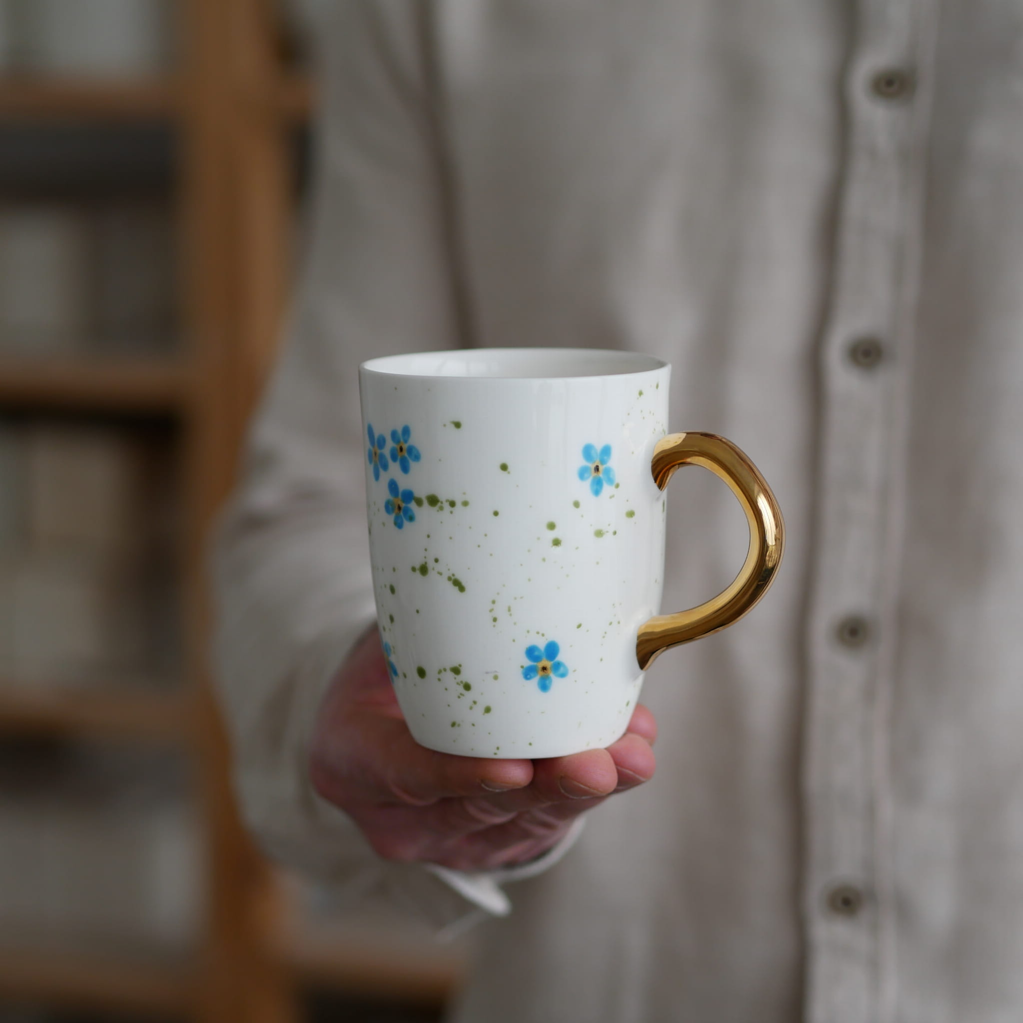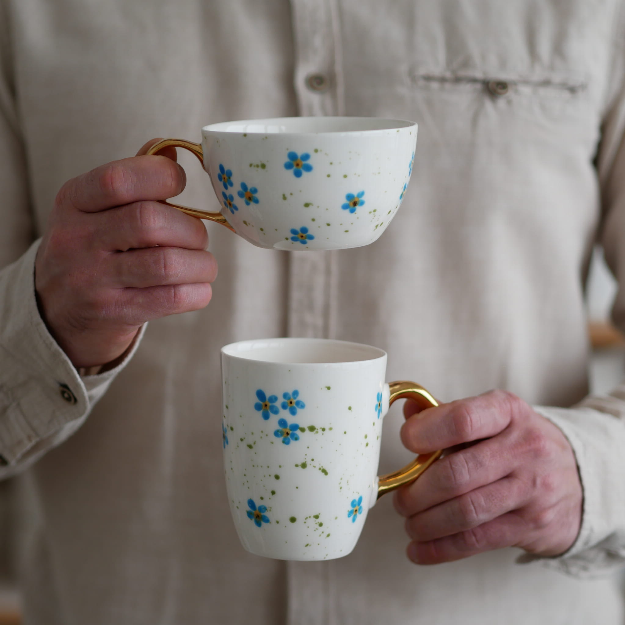 Kubek 300ml niezapominajki ze złotym uszkiem