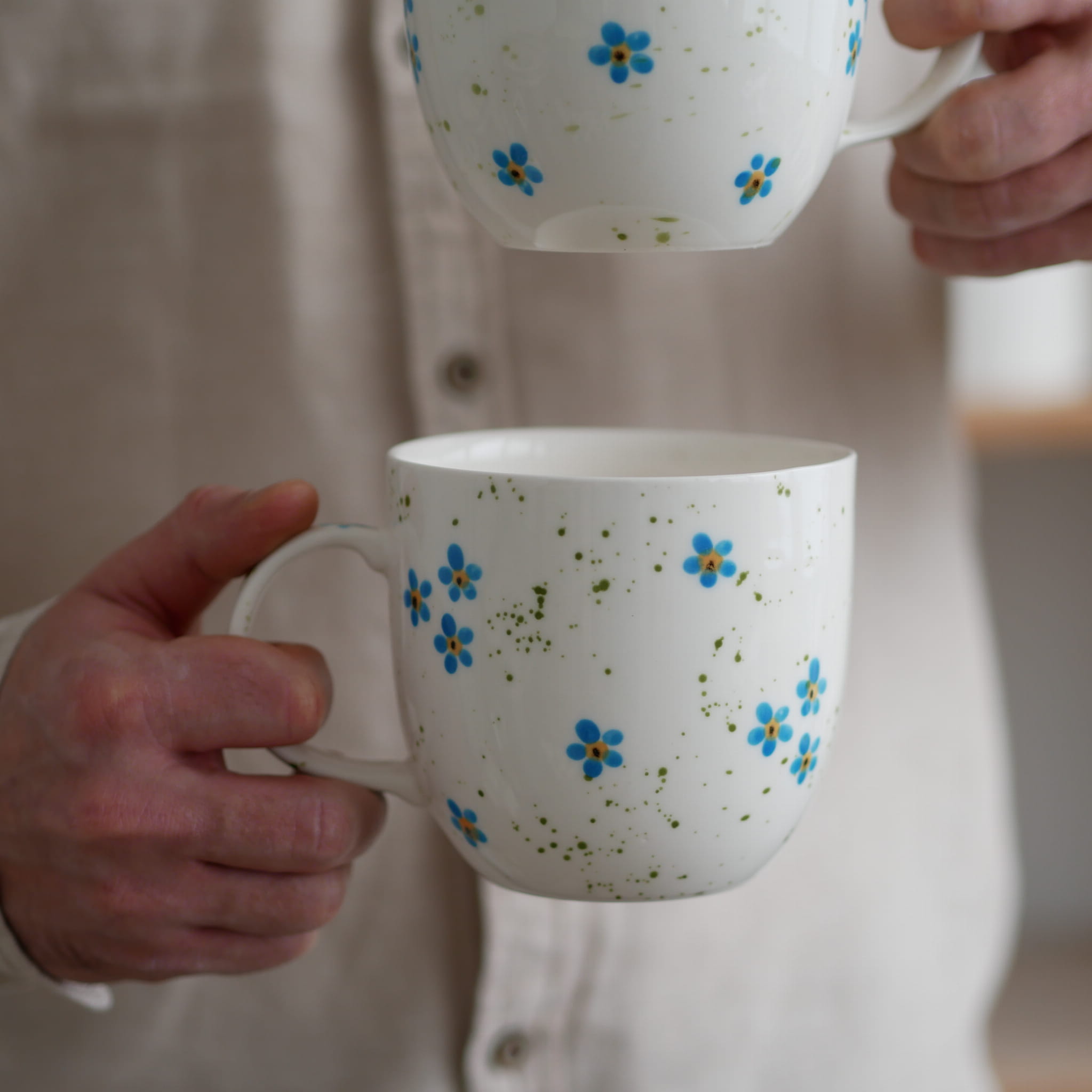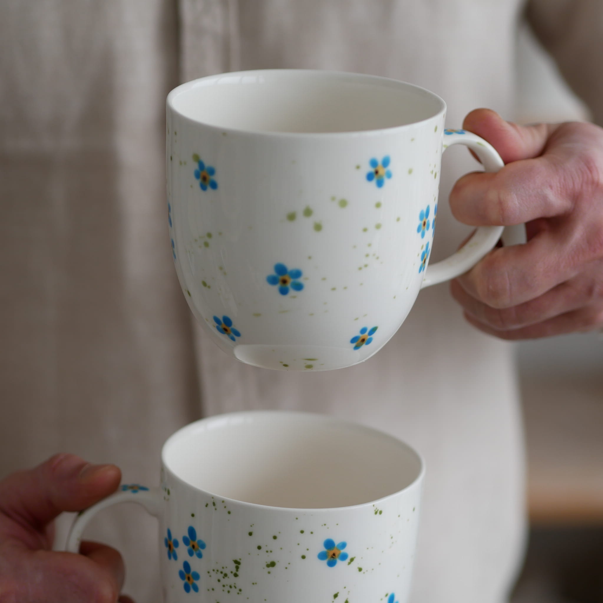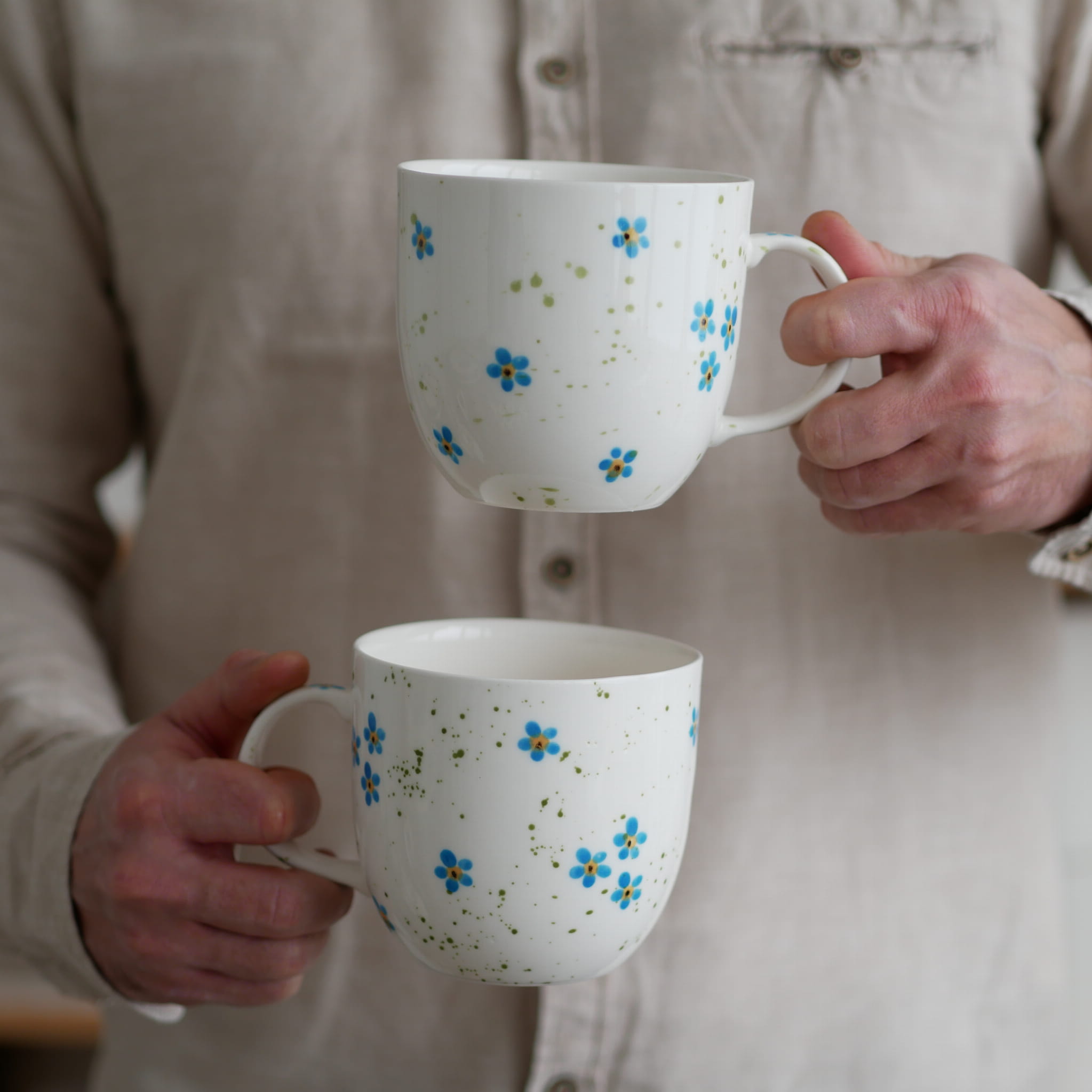 Duży kubek z pięknymi niezapominajkami.