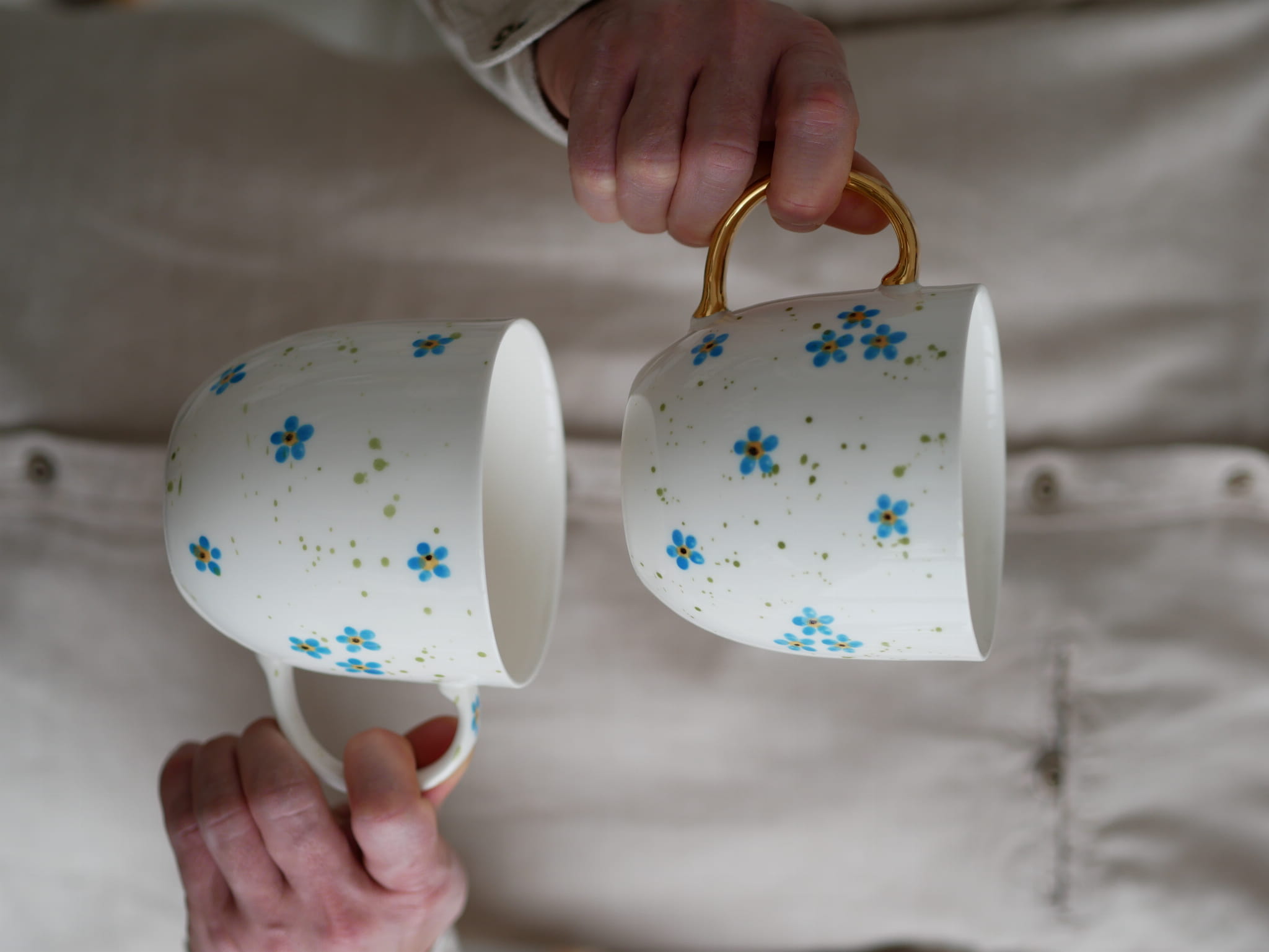 Kwiaty maluję ręcznie, dlatego na każdym kubku wzór będzie wyglądać inaczej - zdjęcie poglądowe.