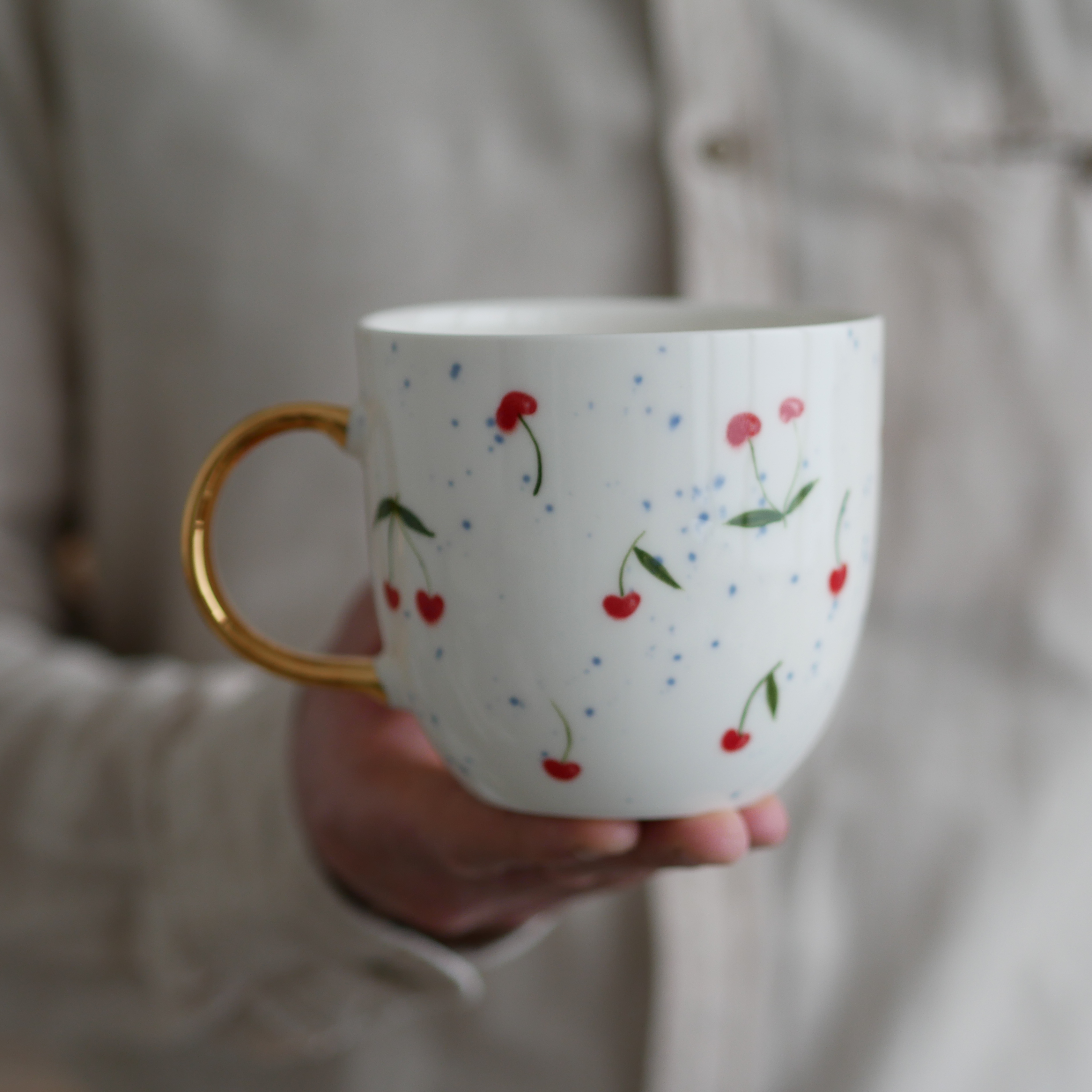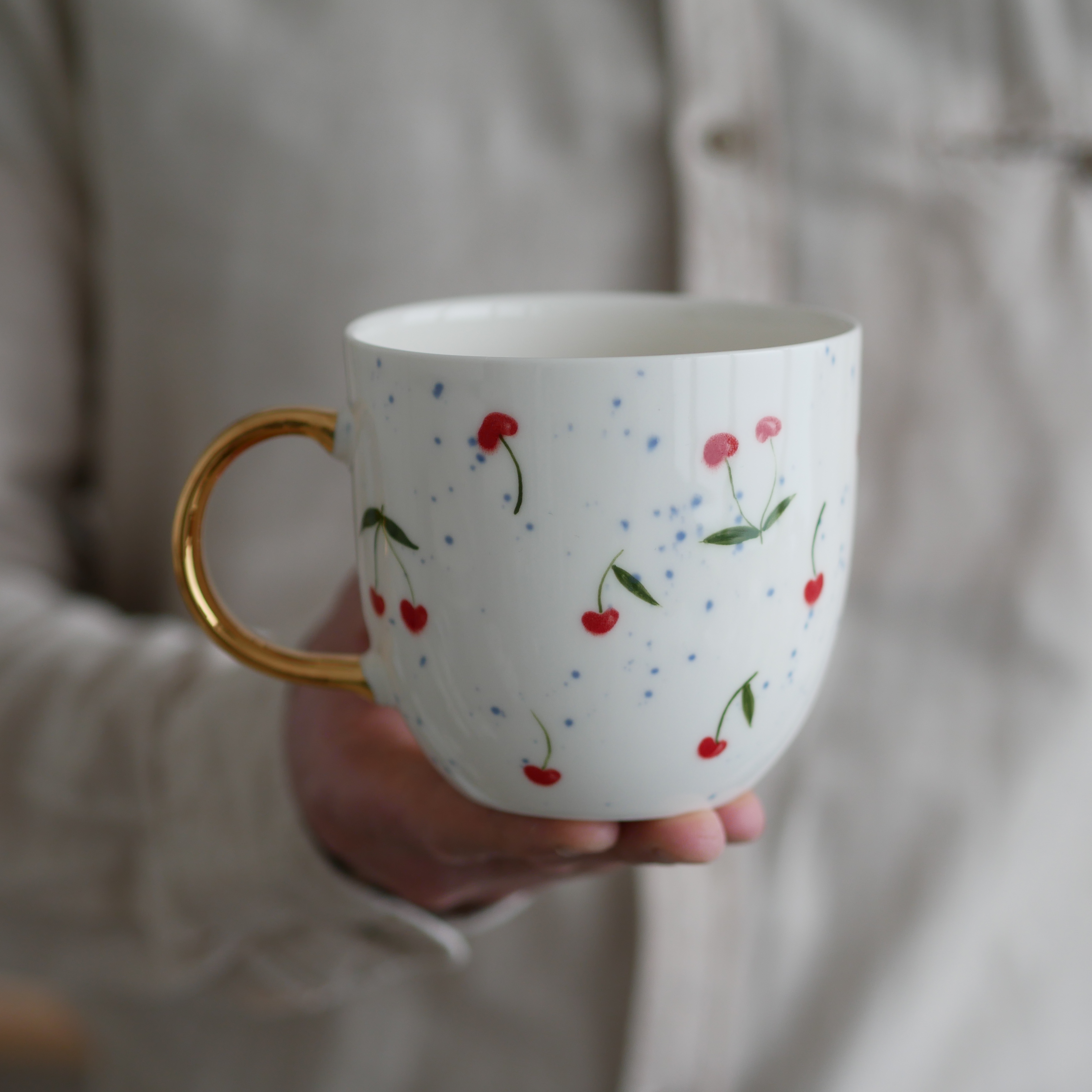 Owoce maluję ręcznie, dlatego na każdym kubku wzór będzie wyglądać inaczej - zdjęcie poglądowe.