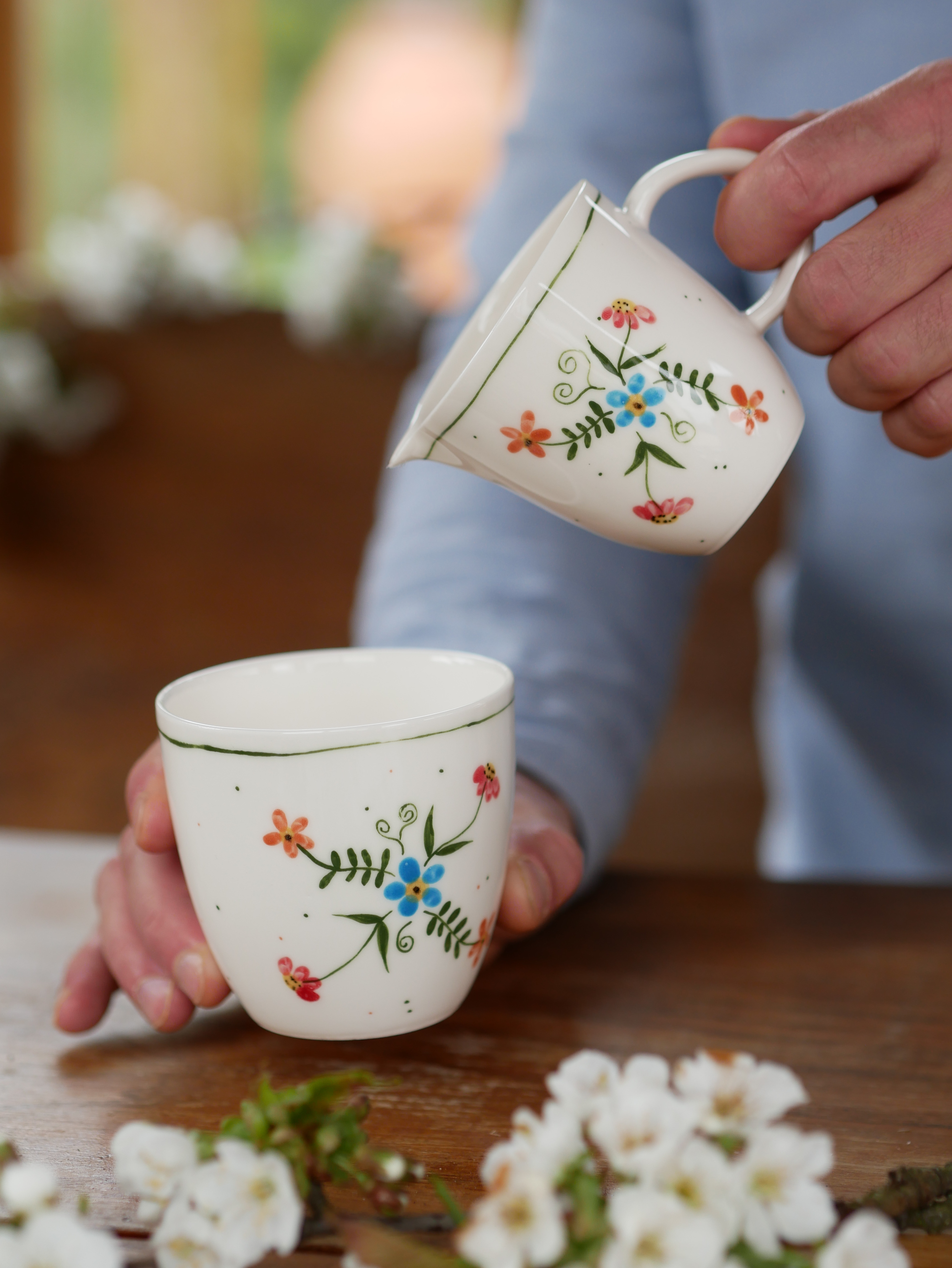 Kwiaty maluję ręcznie, dlatego na każdym kubku wzór będzie wyglądać inaczej - zdjęcie poglądowe.