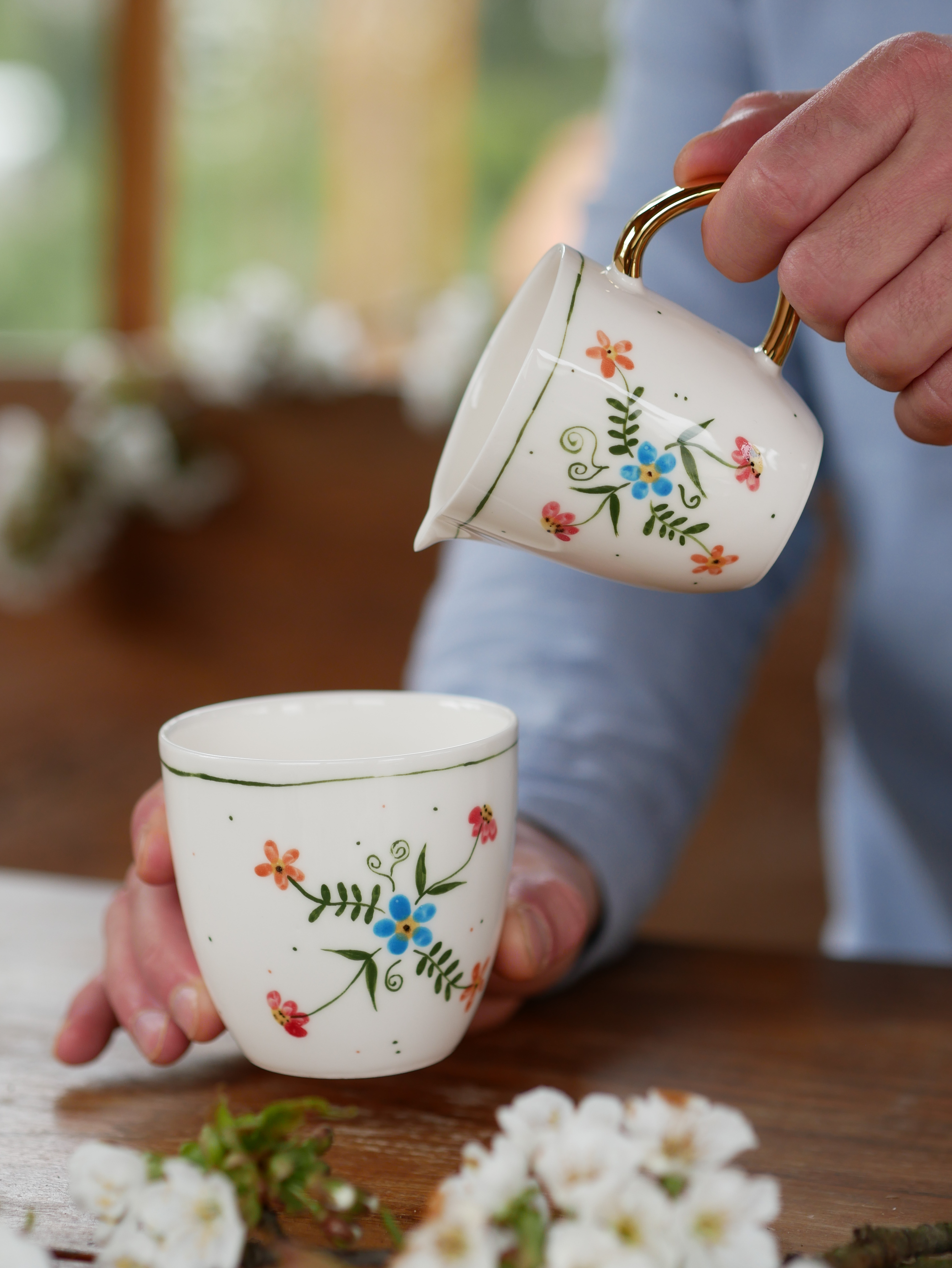 Kwiaty maluję ręcznie, dlatego na każdym kubku wzór będzie wyglądać inaczej - zdjęcie poglądowe.