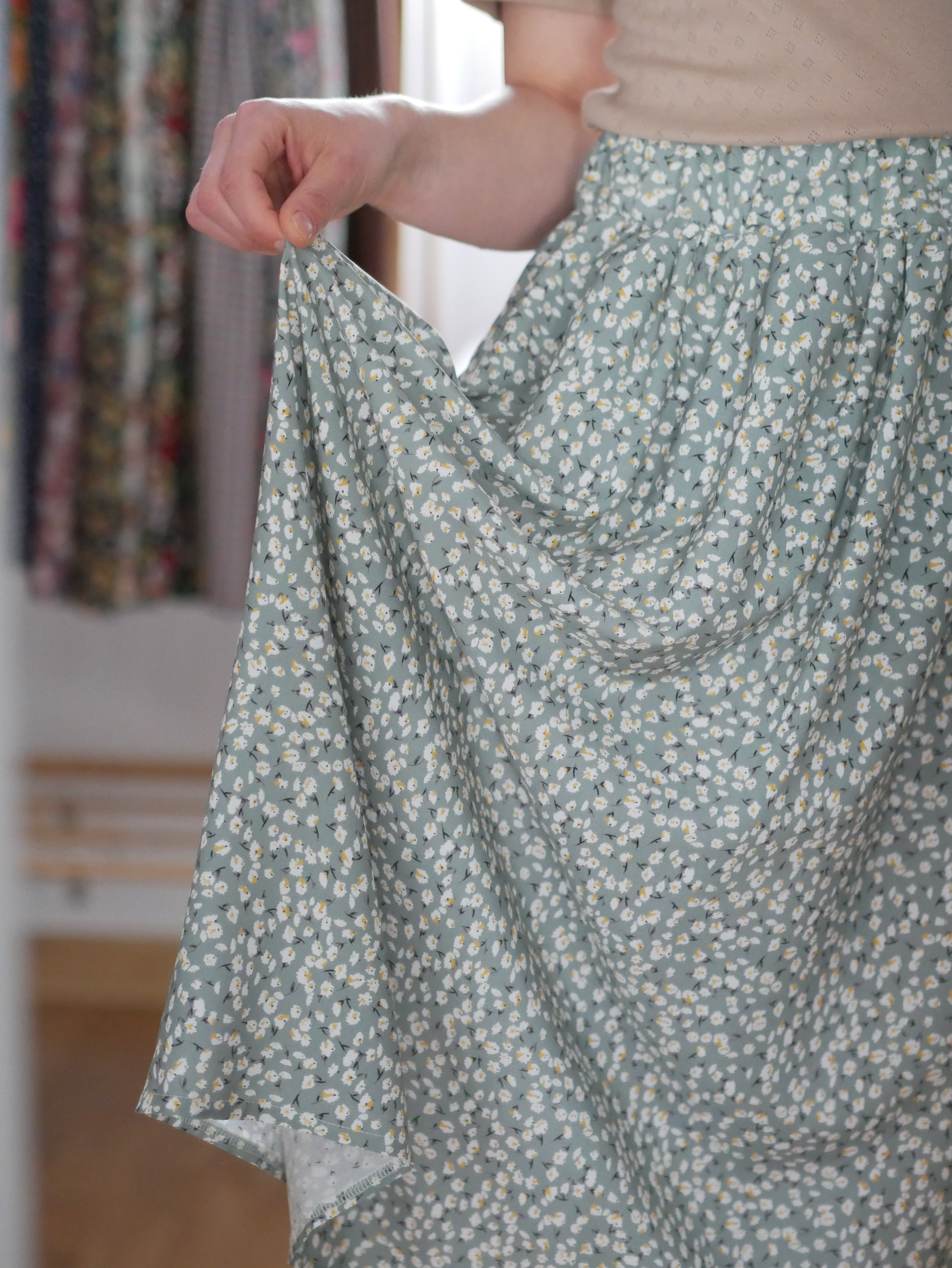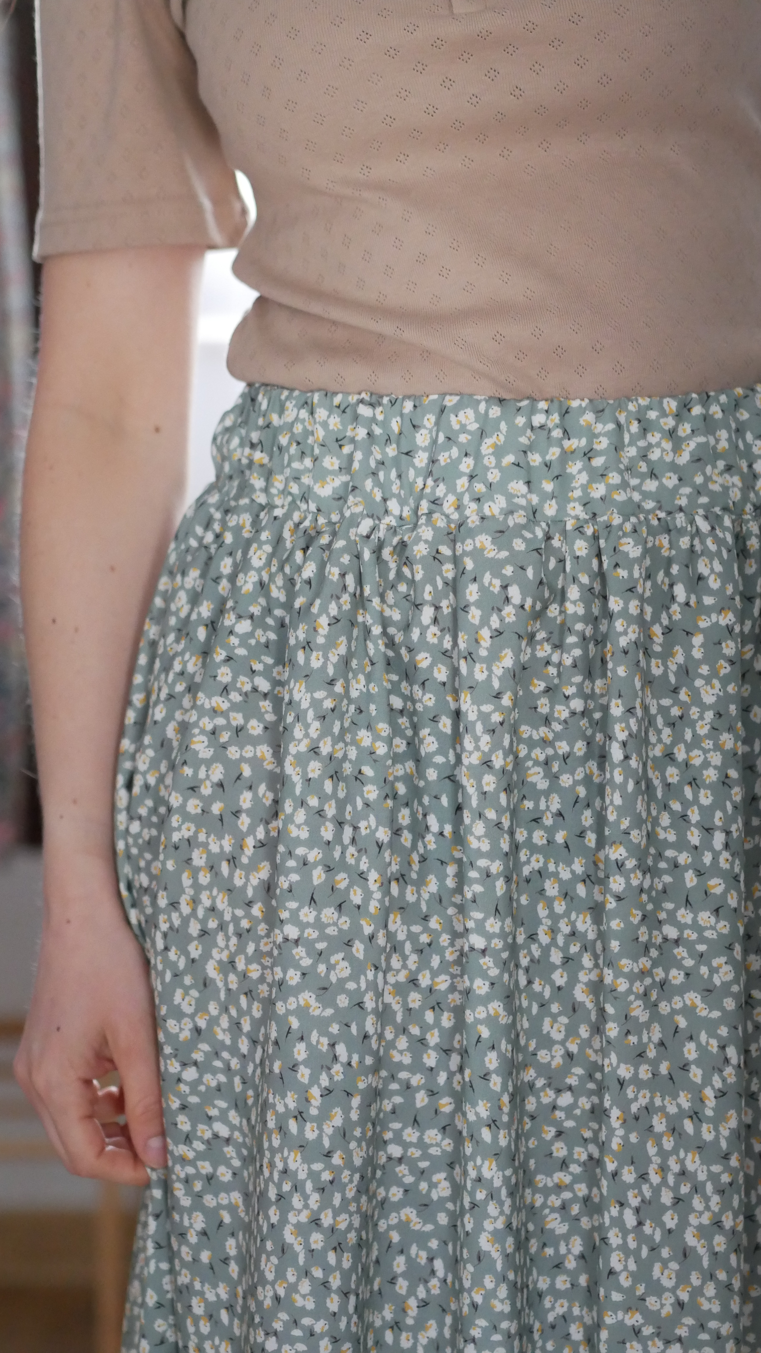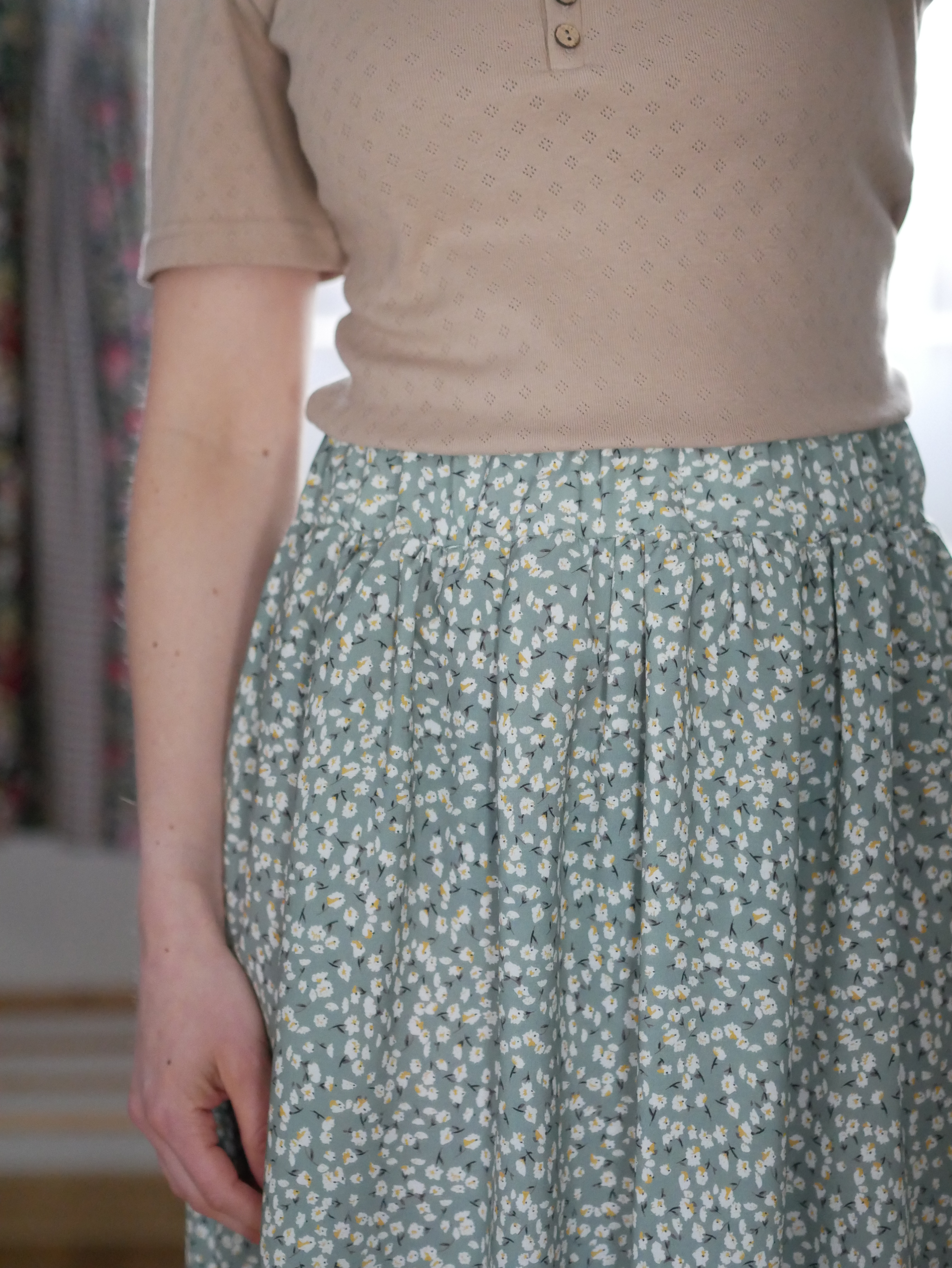 Spódnica Mechtylda wiskoza miętowa w drobne kwiatuszki