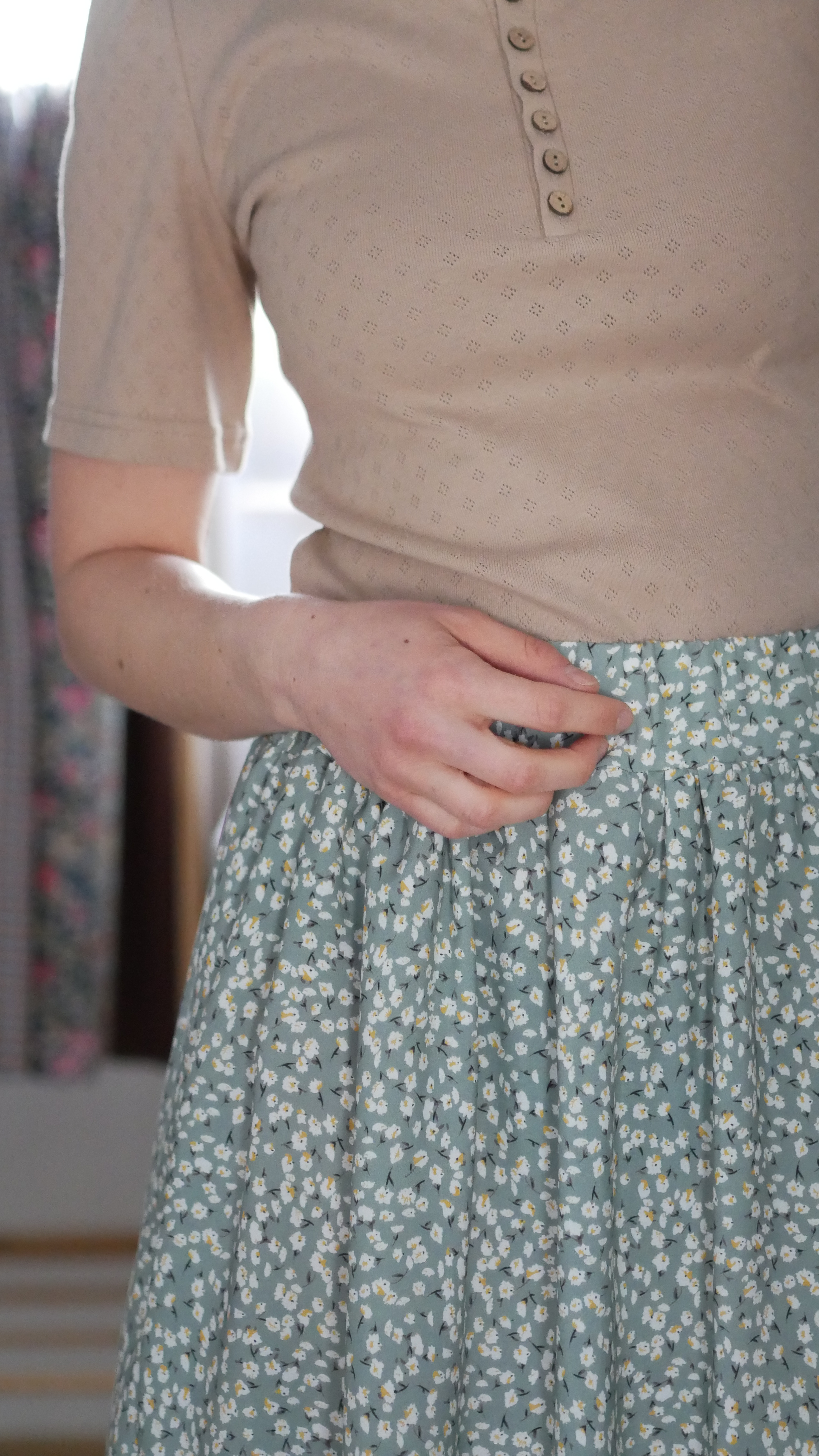 Spódnica Mechtylda miętowa w drobne kwiatuszki.